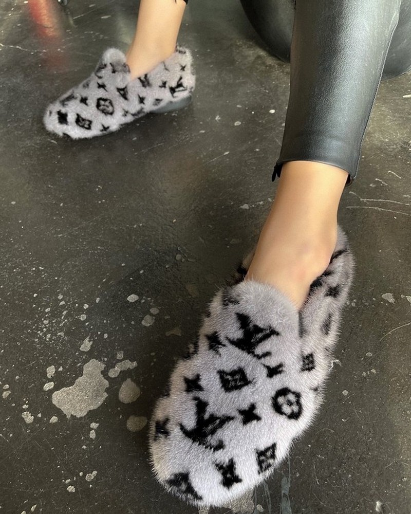 Ballerinas in plush mink fur LV GRAY