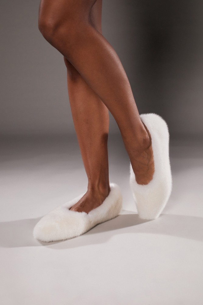 White mink fur ballet shoes