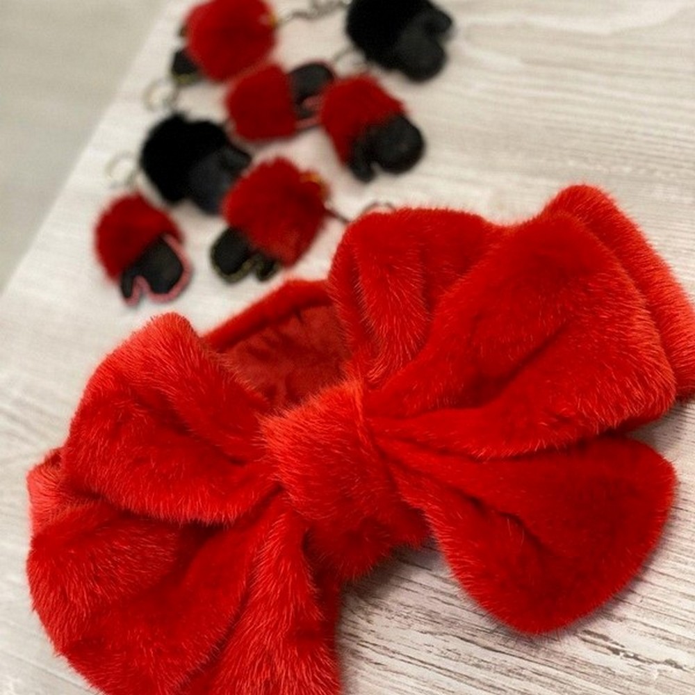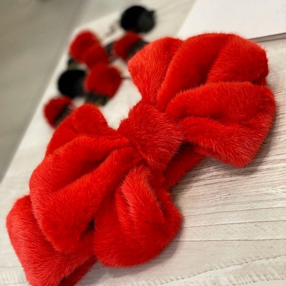 Bow headband made of mink fur.