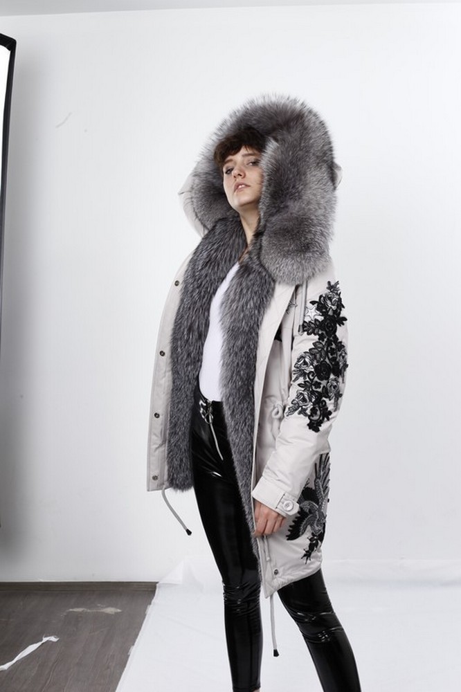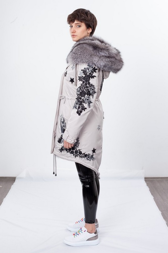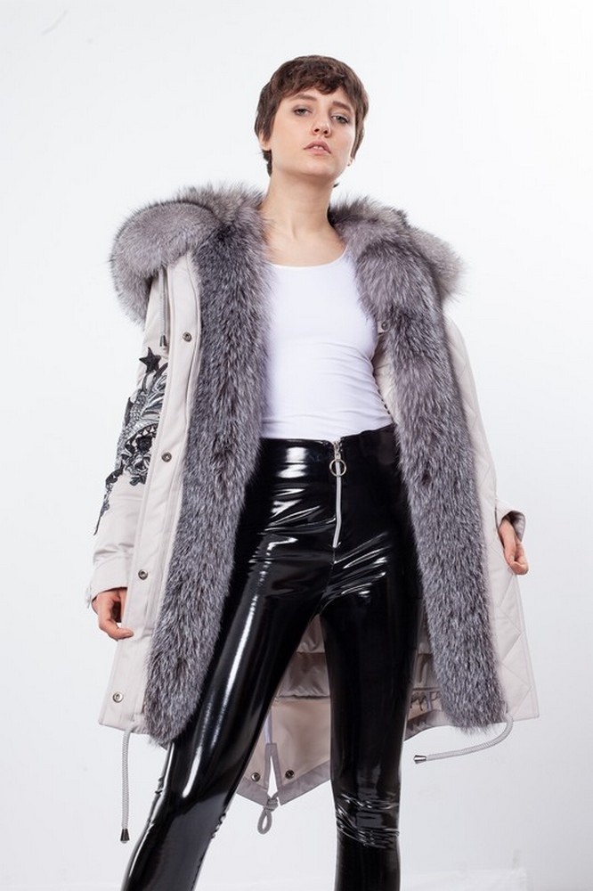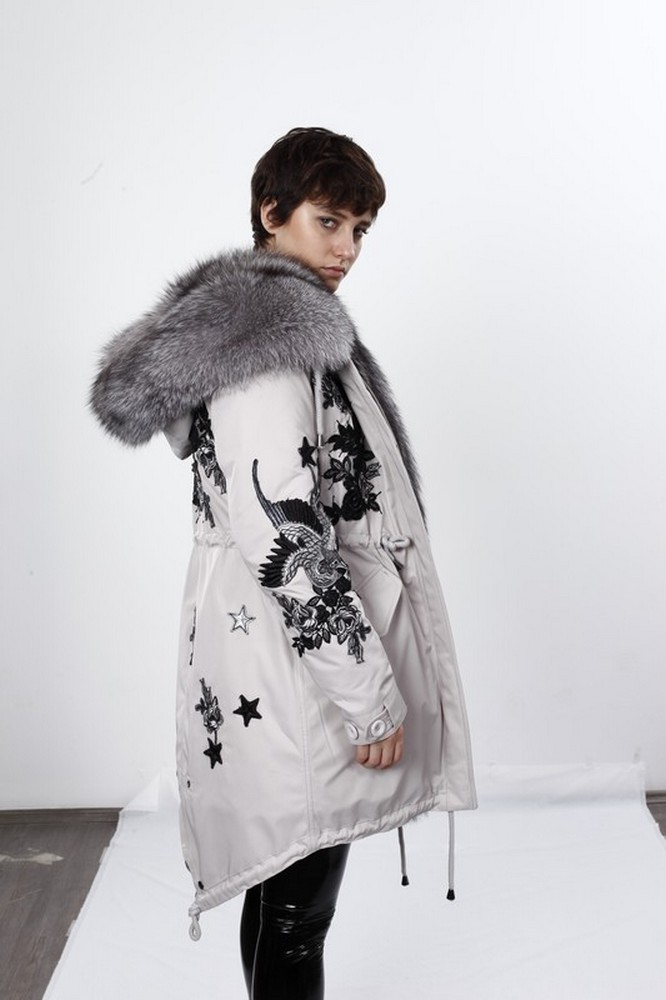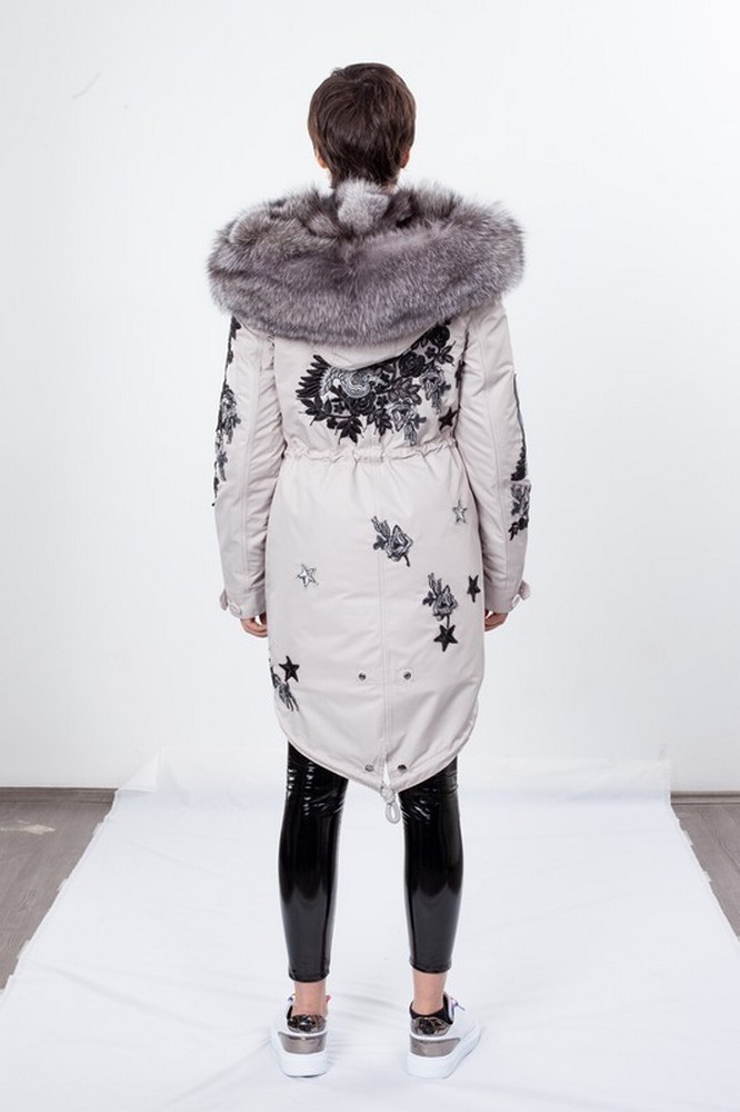 The fur hood and insulation are detachable on a secret lightning.