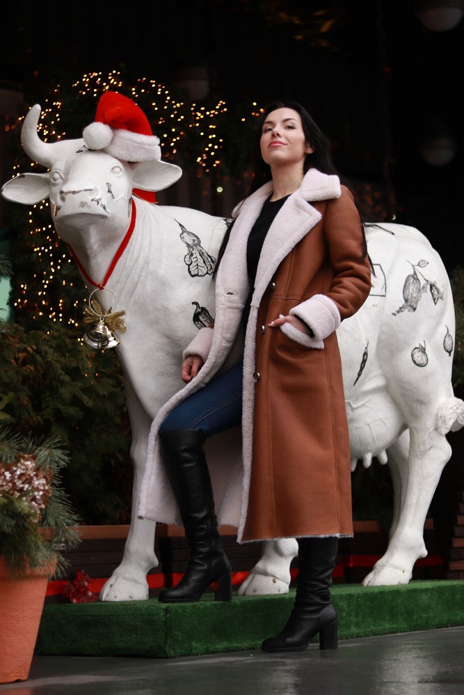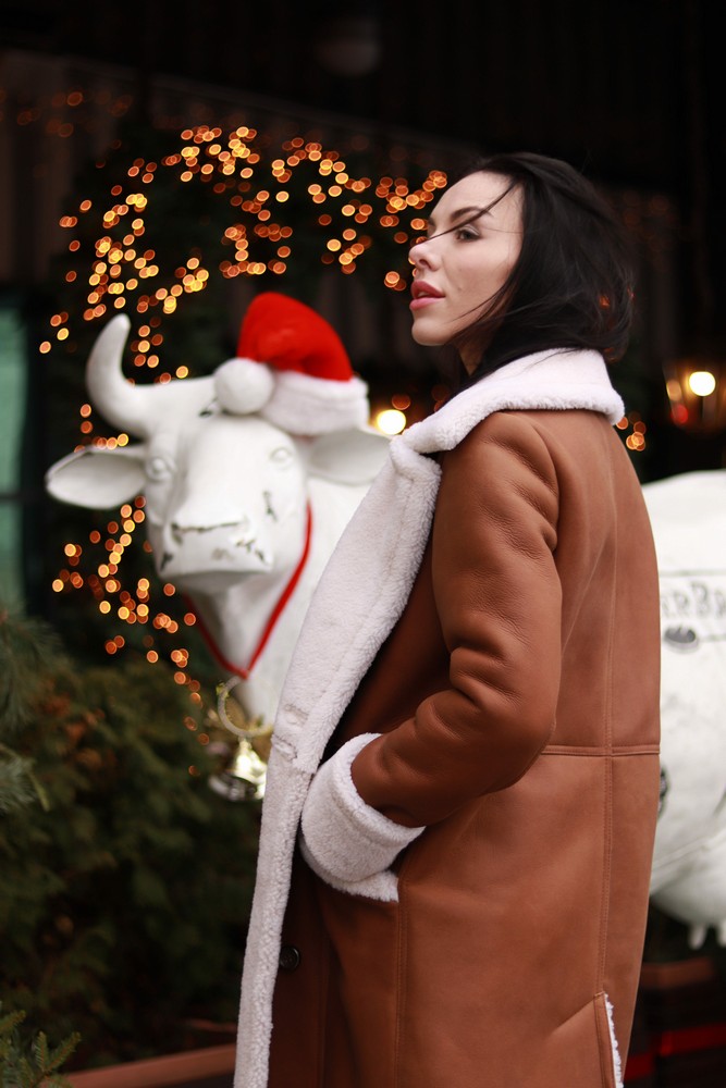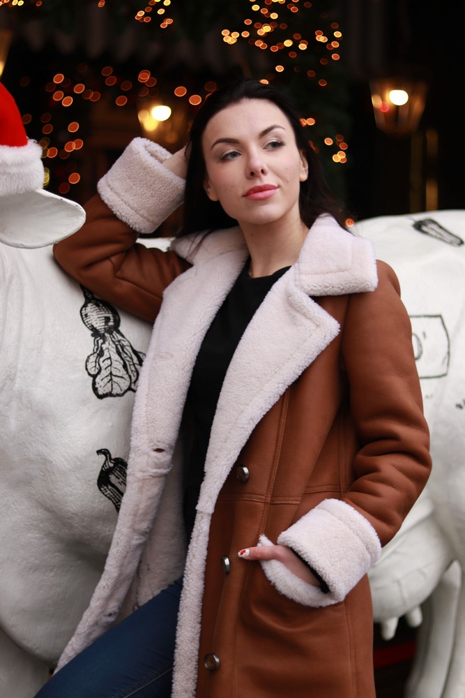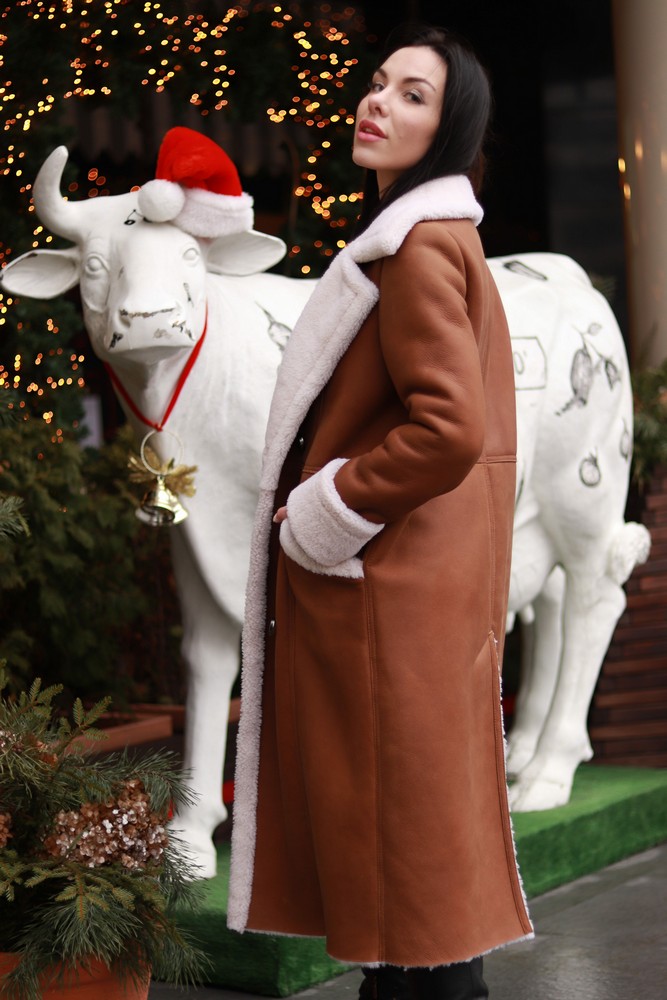 Shearling coat made of natural sheepskin