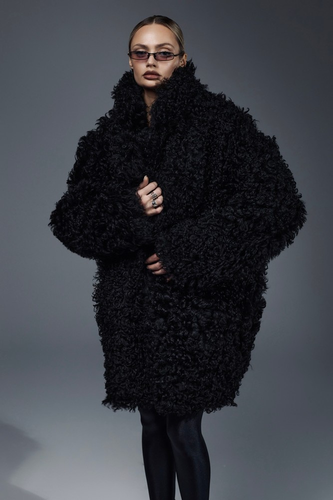 Sheepskin coat length 85 cm