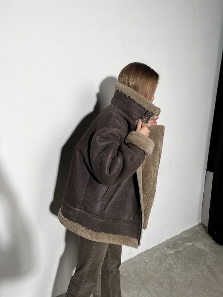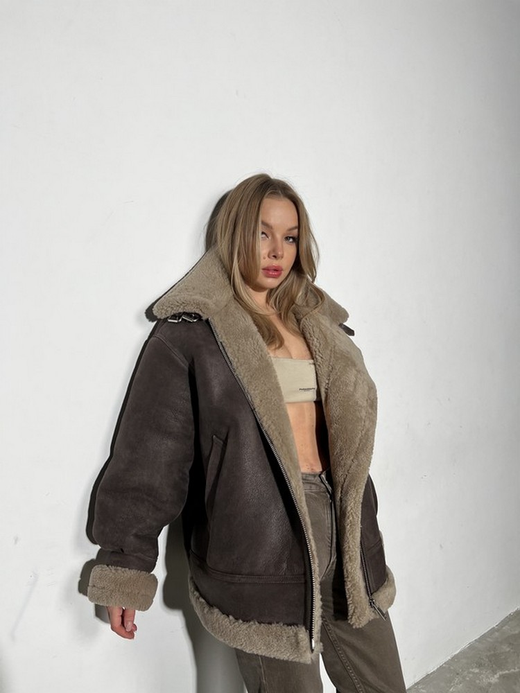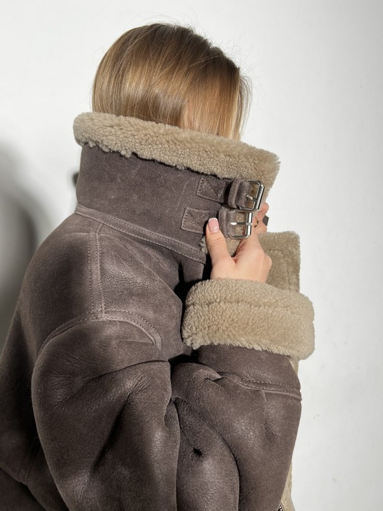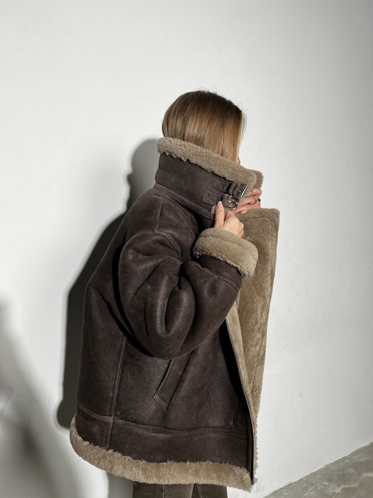 Double-sided sheepskin coat made of natural Curley sheepskin