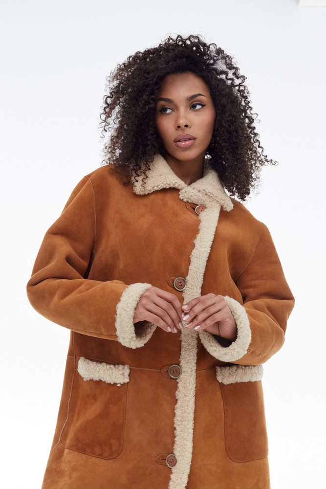Double-sided sheepskin coat made of natural Curley sheepskin