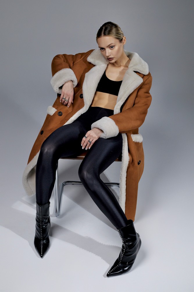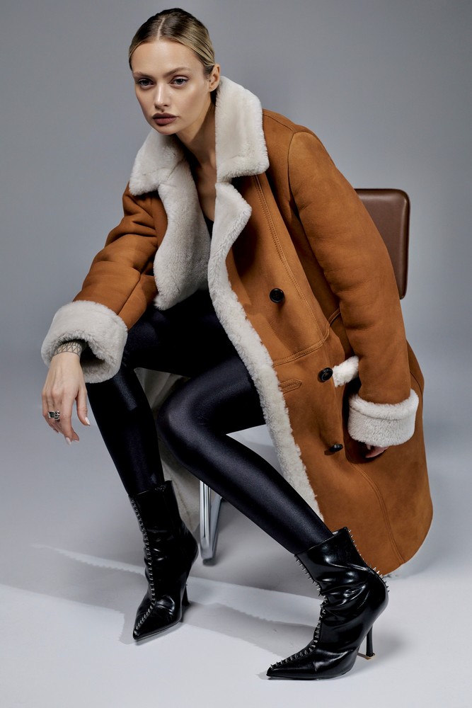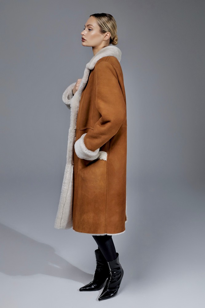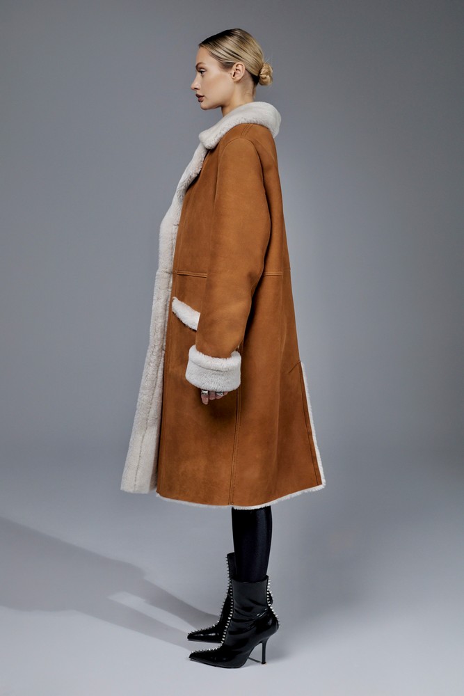Sheepskin coat length 88 cm