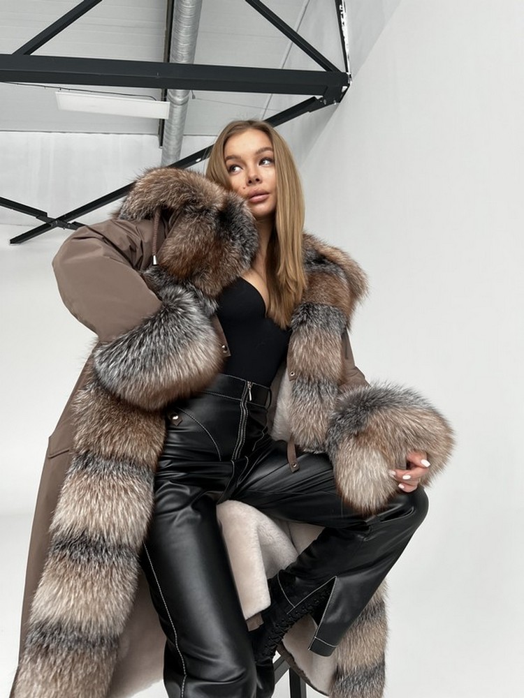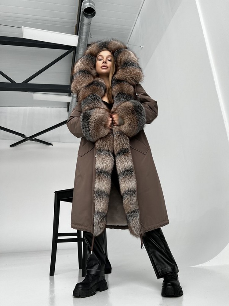 Inside there are hidden fasteners (ribbon with buttons) so that the parka can be worn with the fur facing out