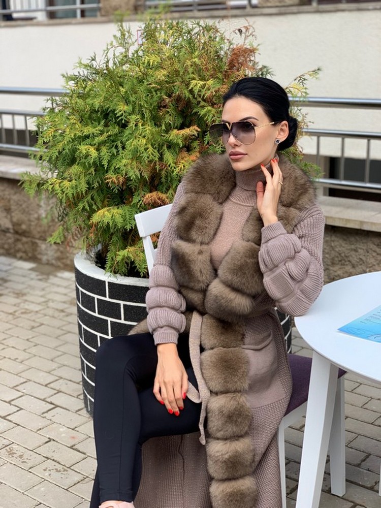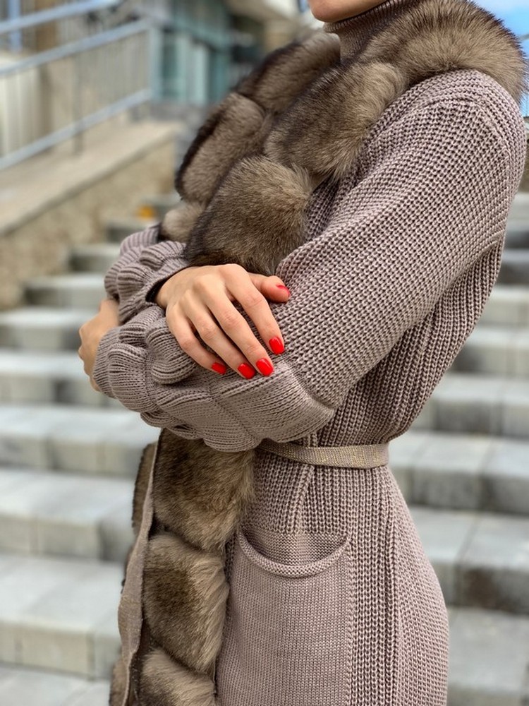 Cardigan trimmed with auction Finnish Arctic fox fur