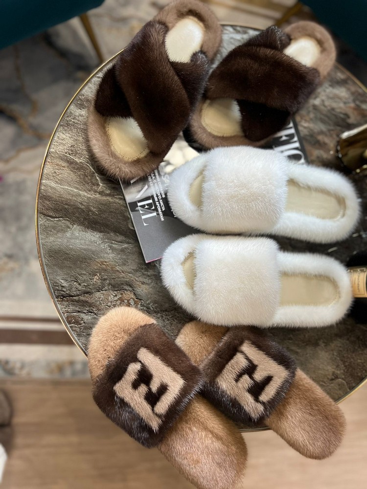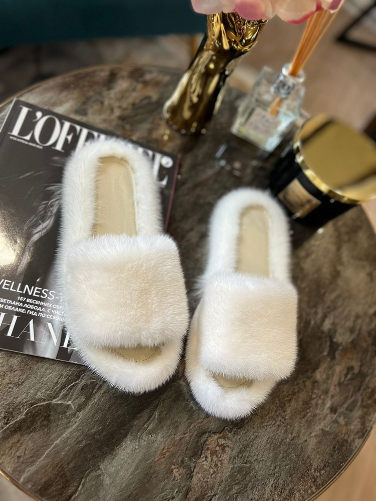 Mink fur slippers