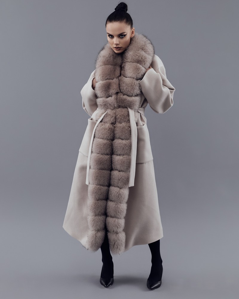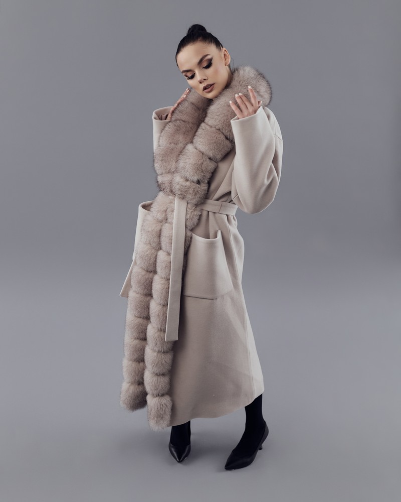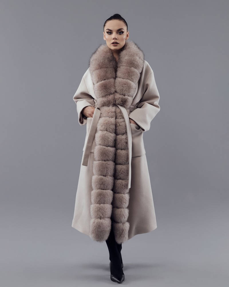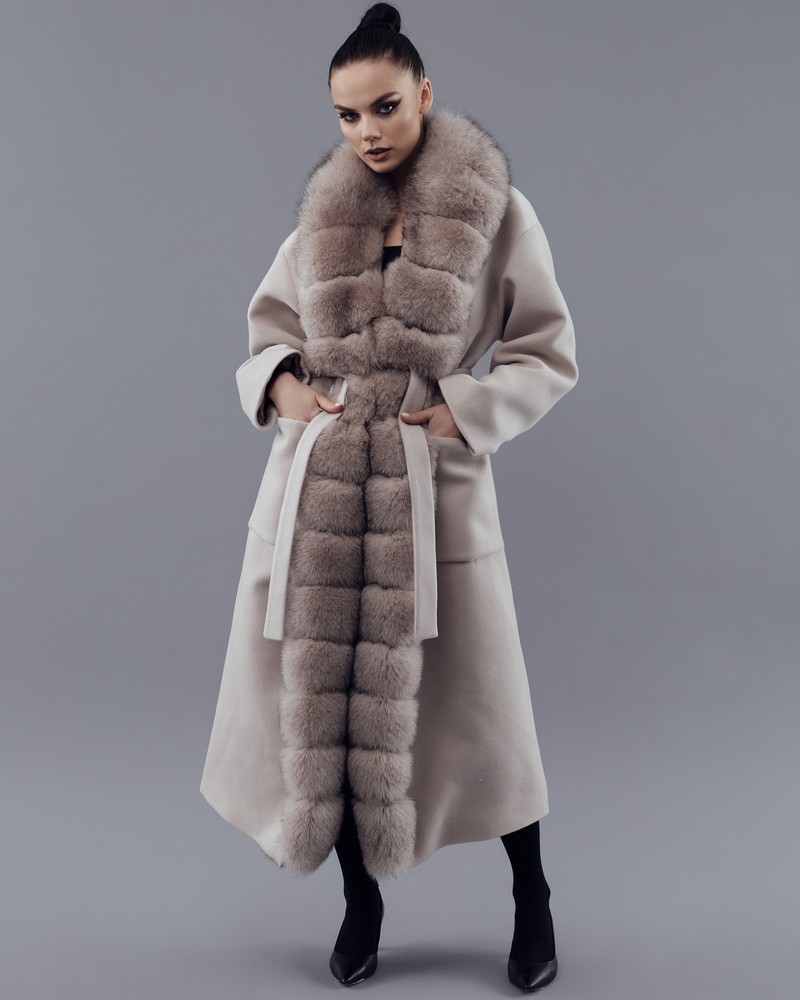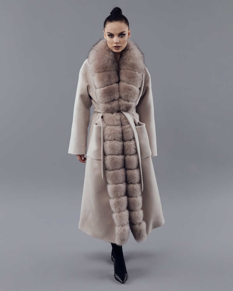 Coat with Finnish Arctic fox fur powder thick fur
