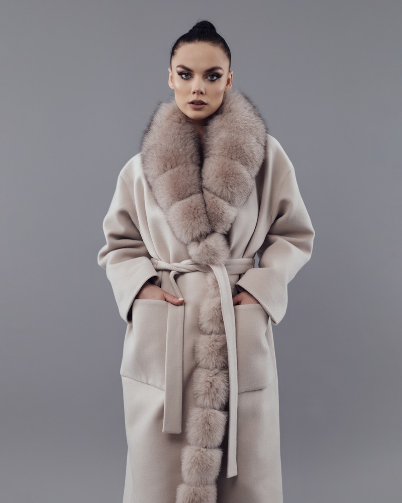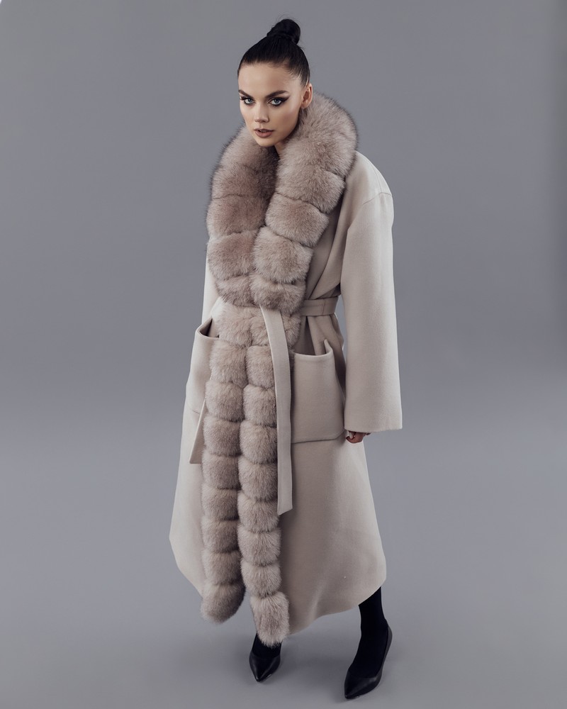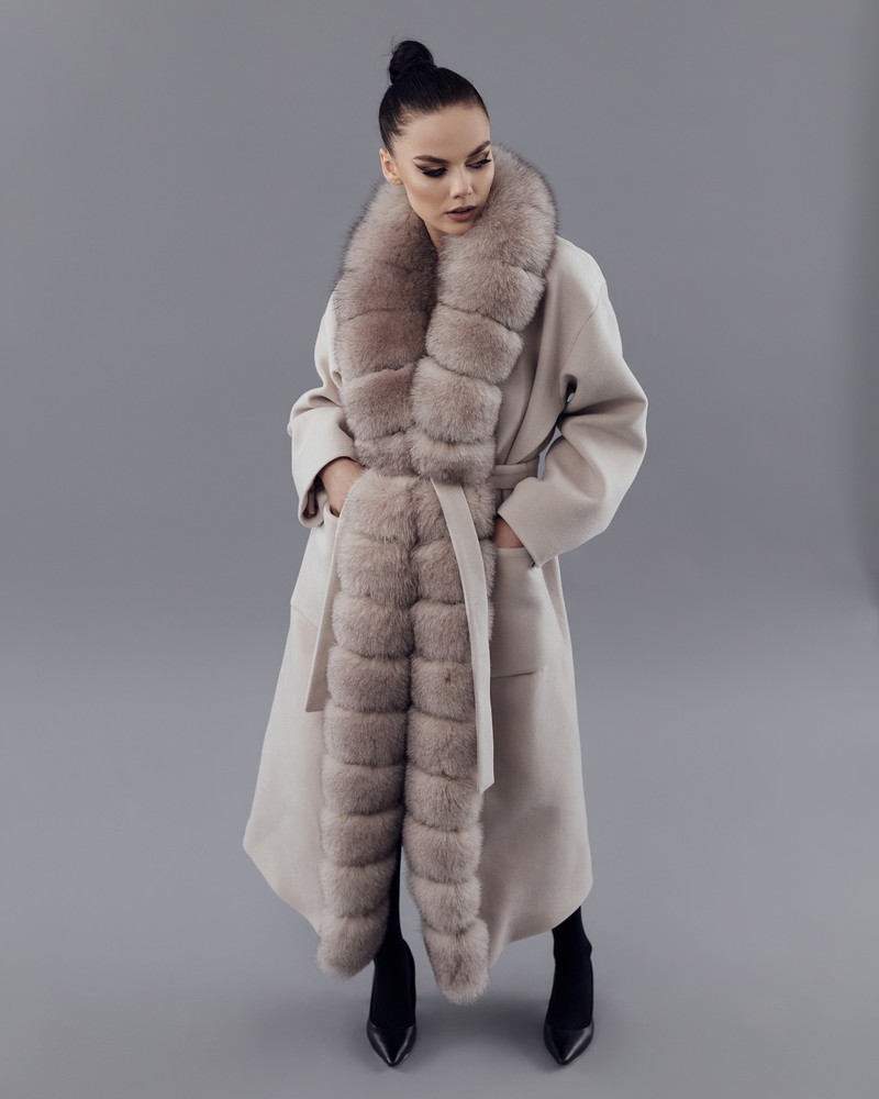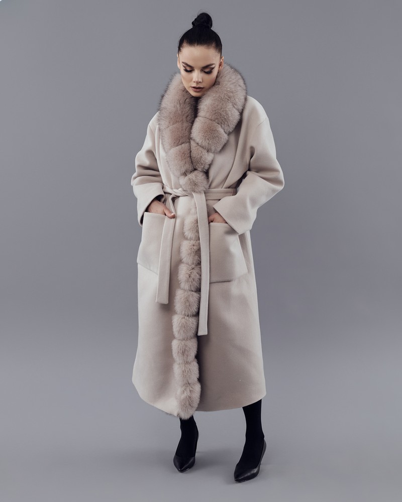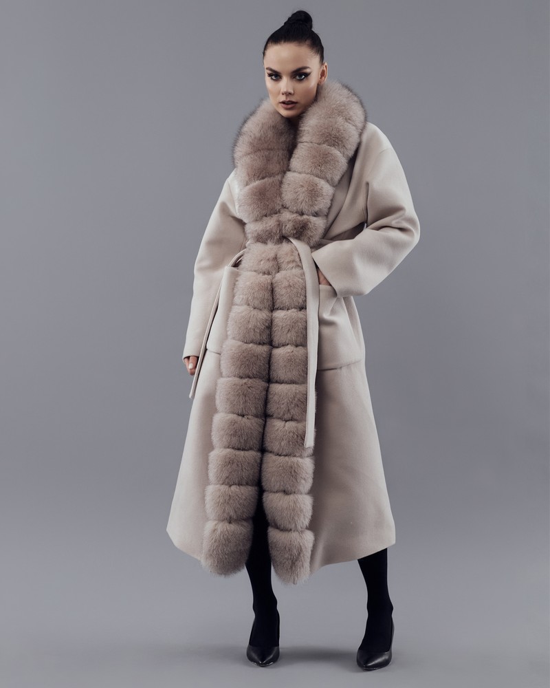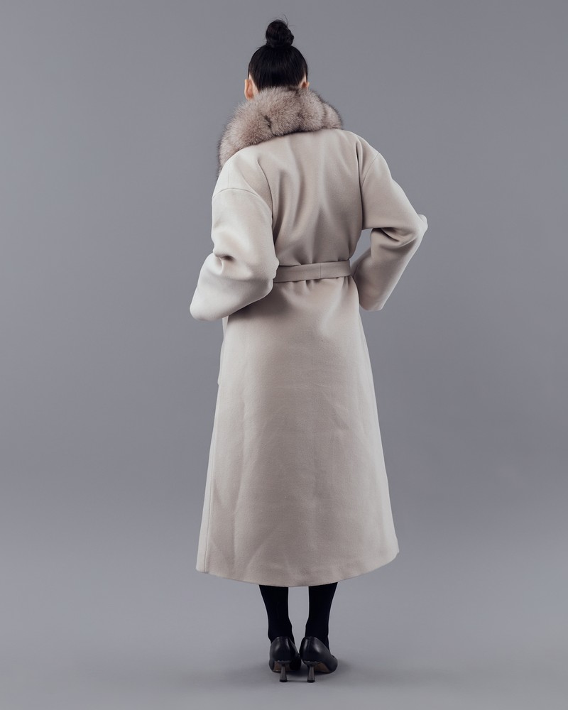 Coat with Finnish Arctic fox fur powder thick fur
