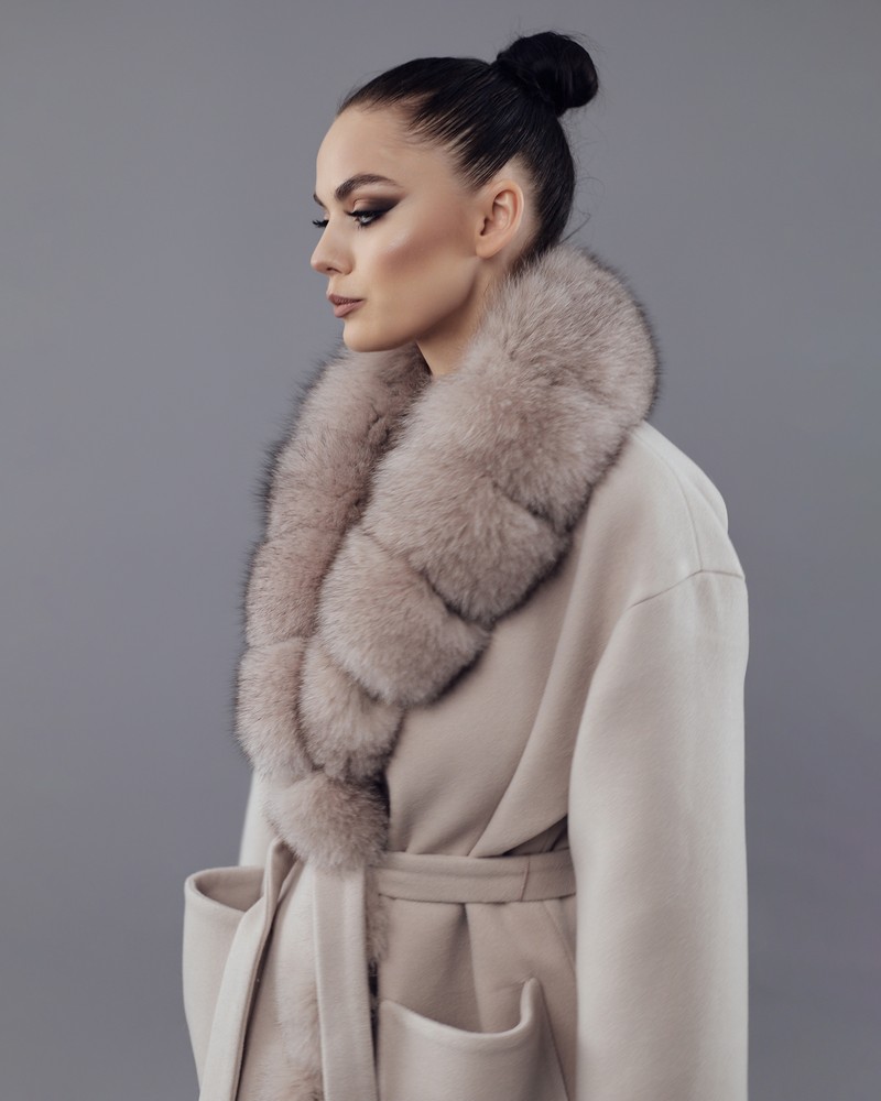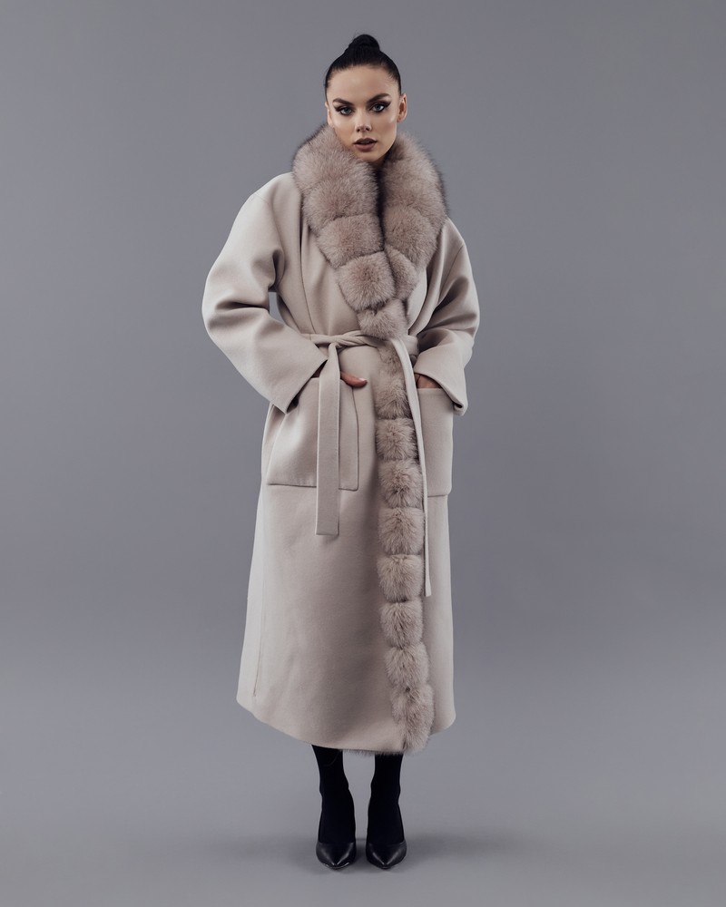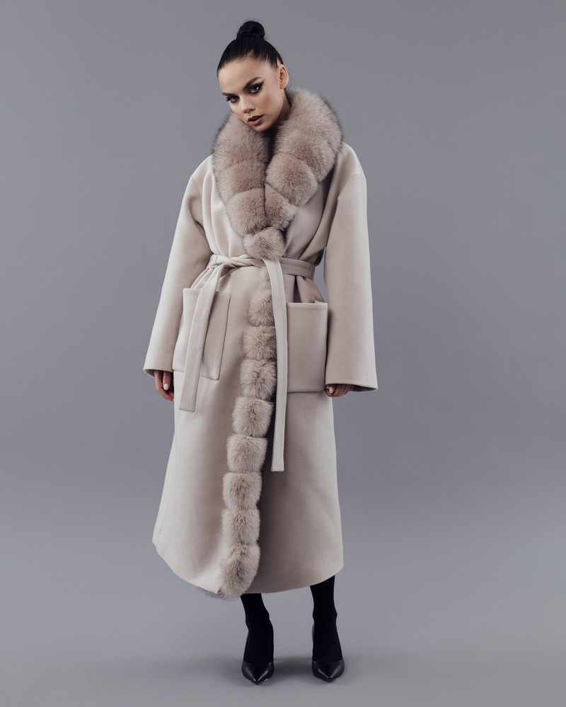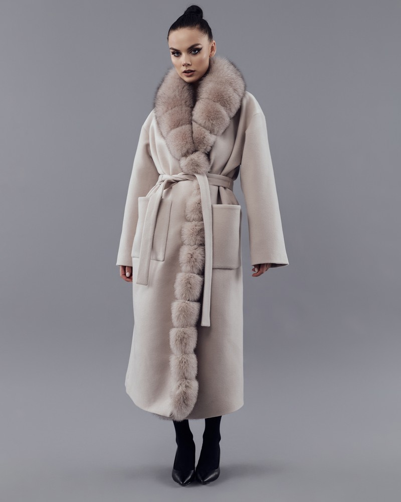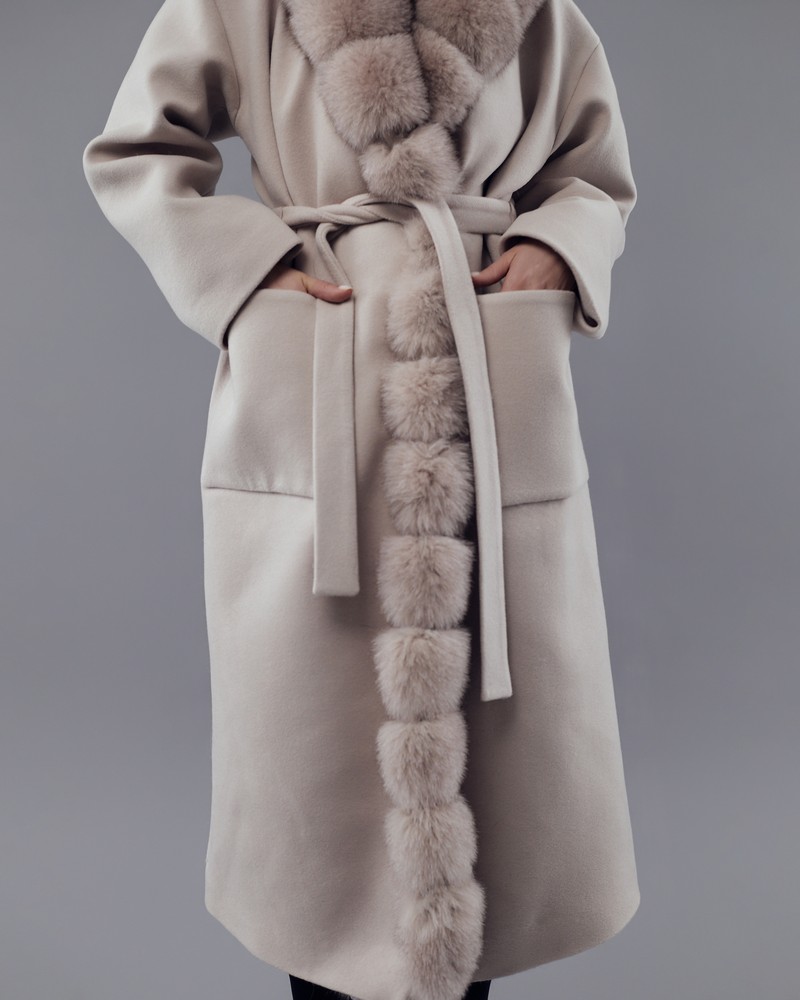 Coat with Finnish Arctic fox fur powder thick fur