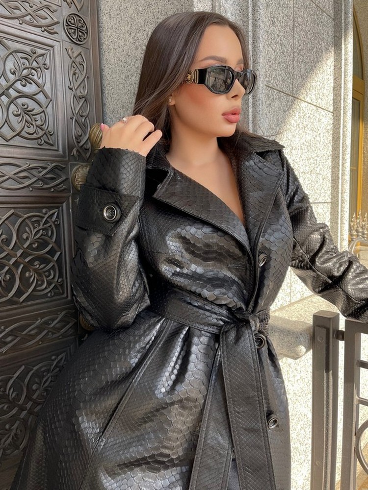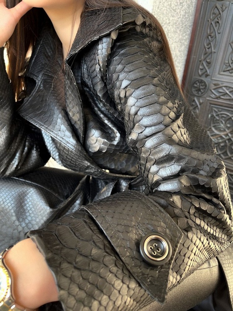 A fashionable raincoat made of genuine python skin, very impressive, which will ideally create a stylish look.