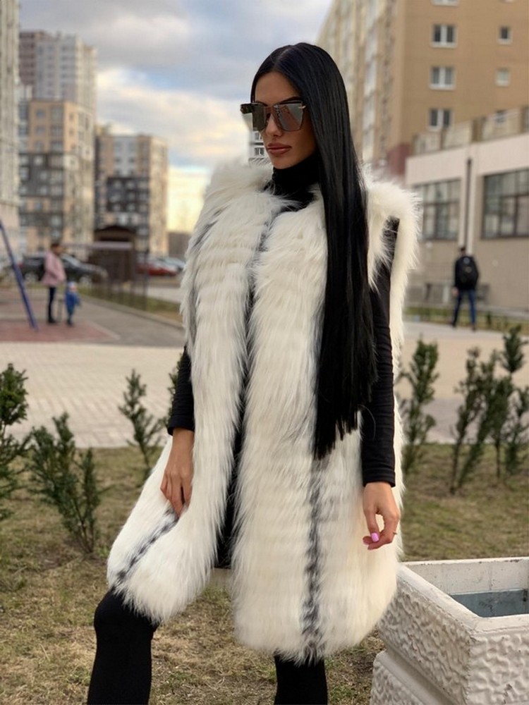 The fur vest can be worn separately, the inside is lined with black.