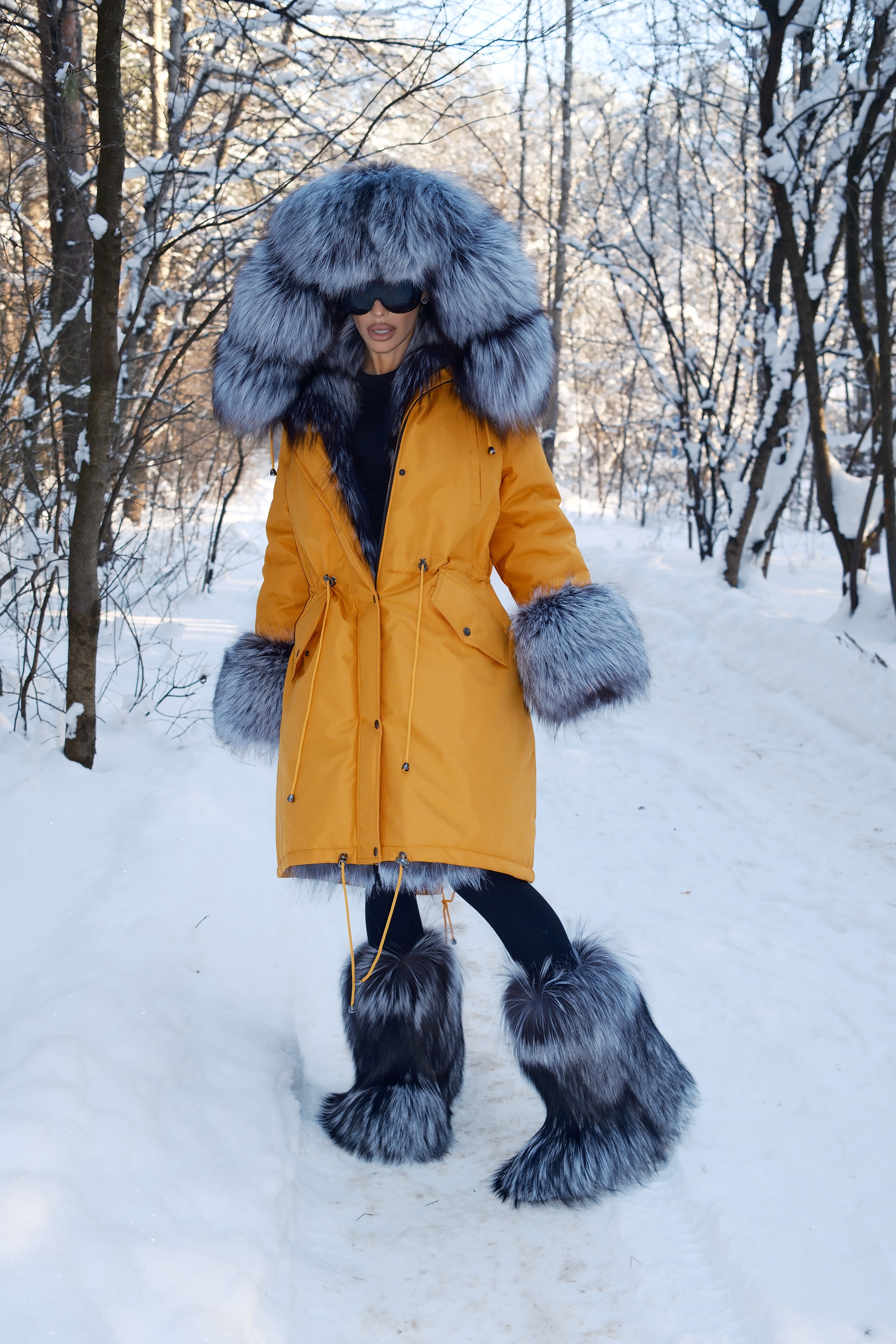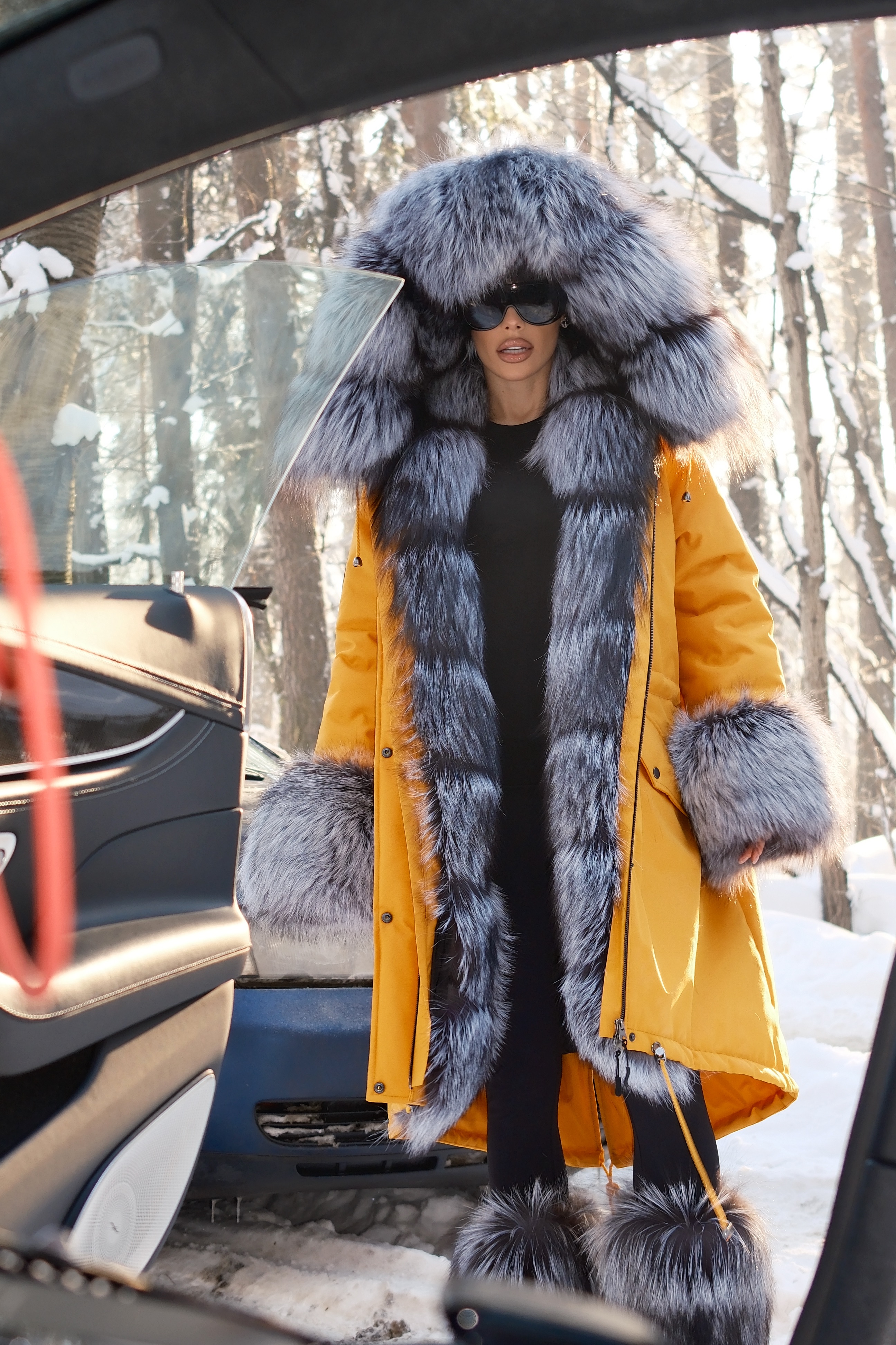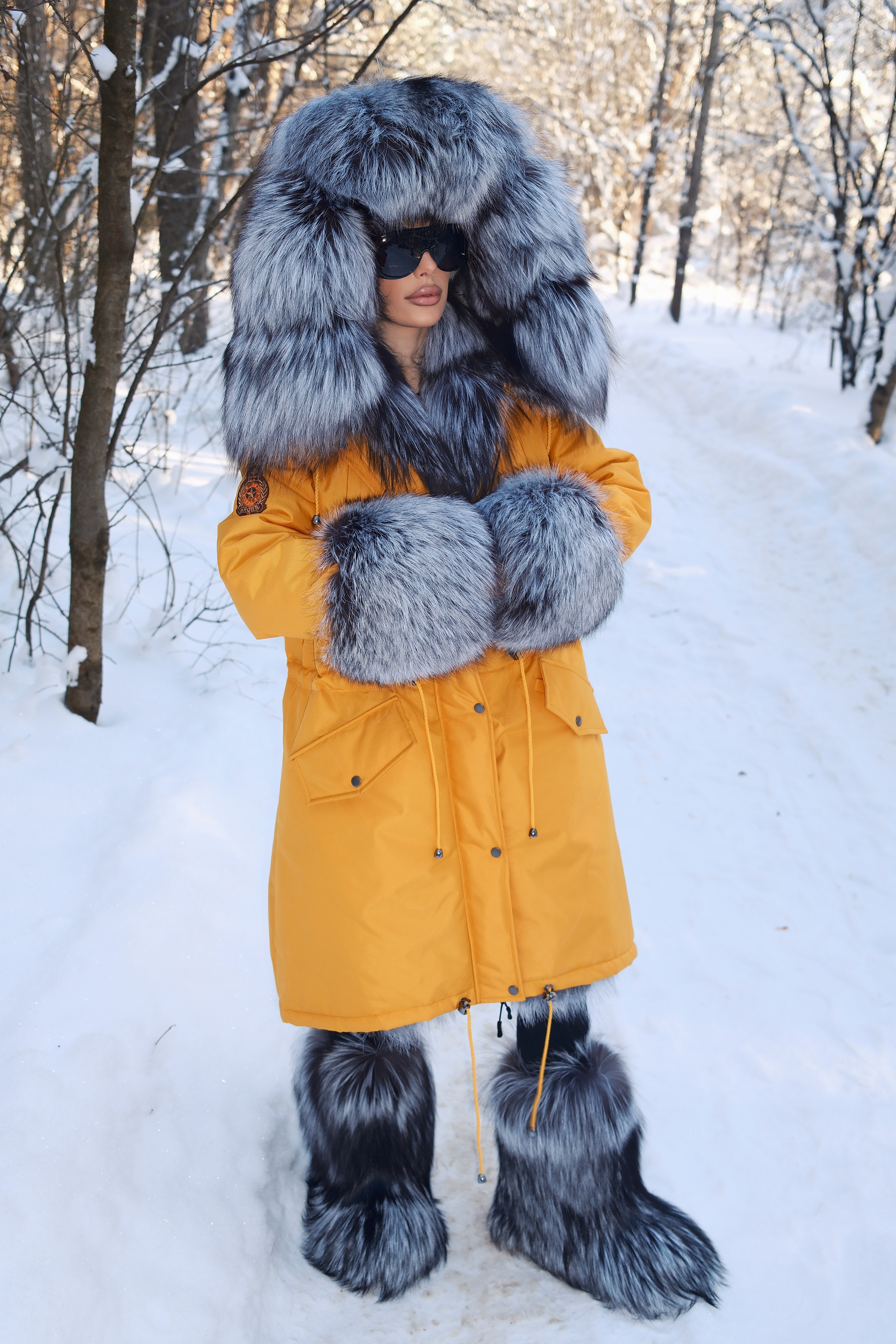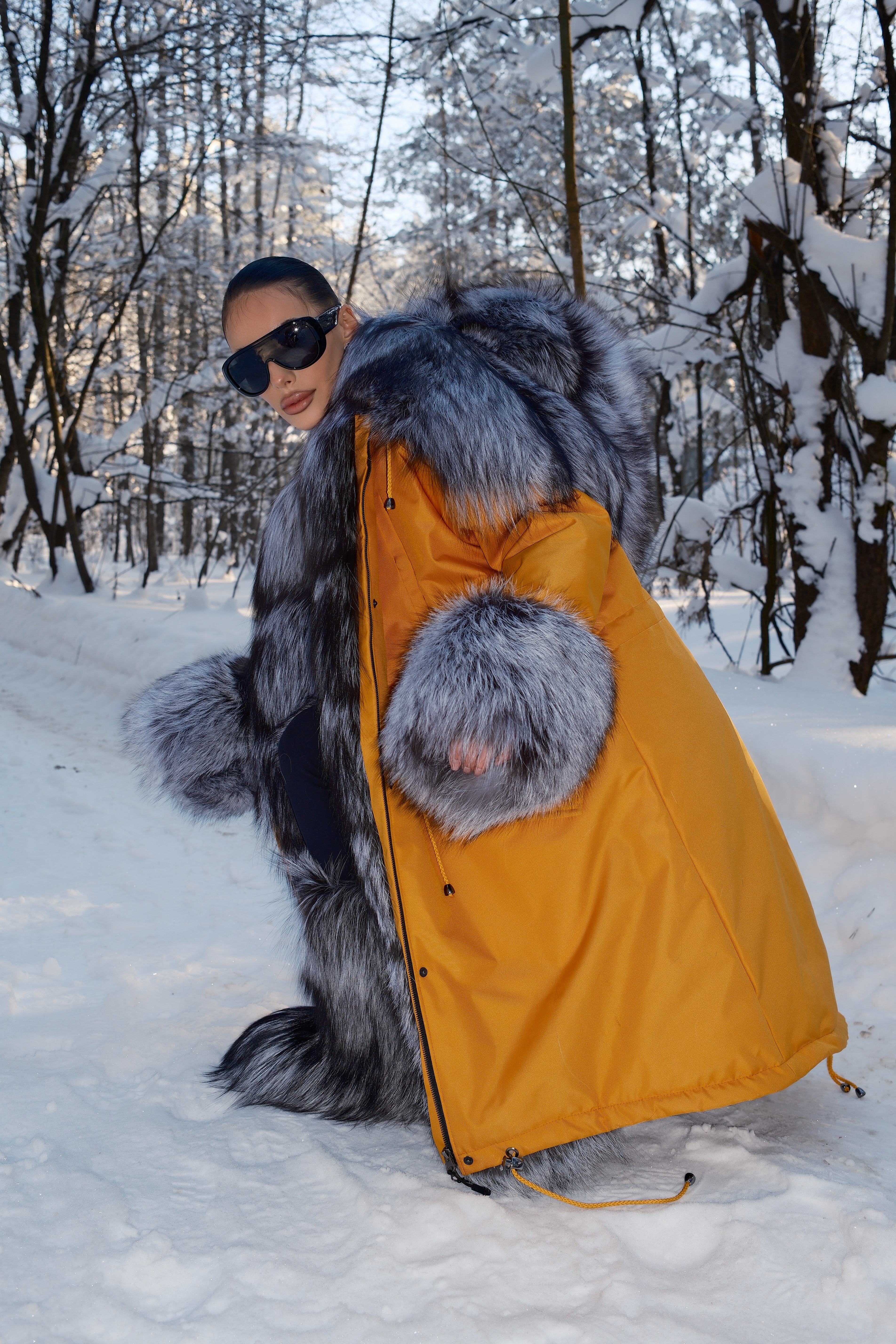 Parka with natural silver fox fur