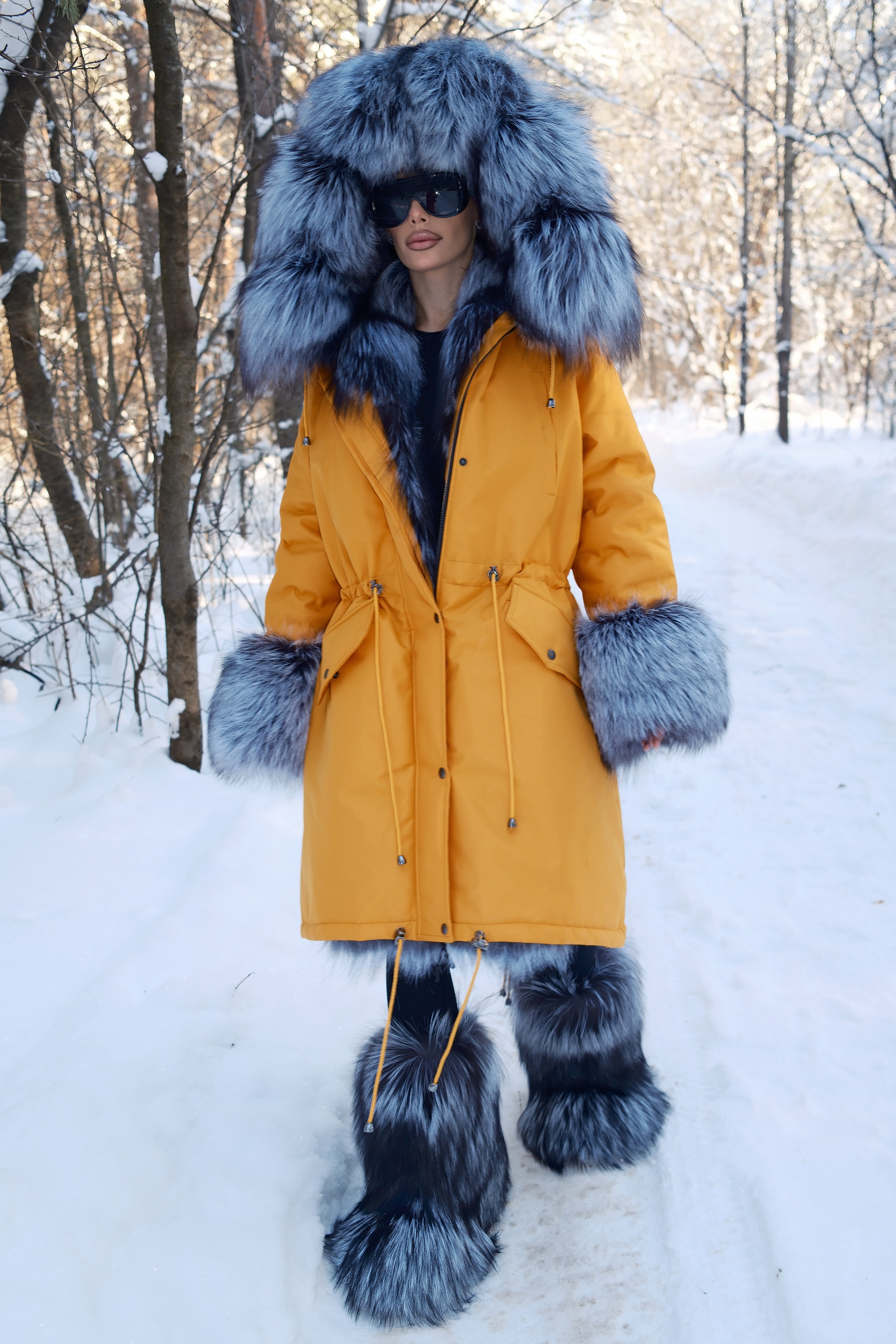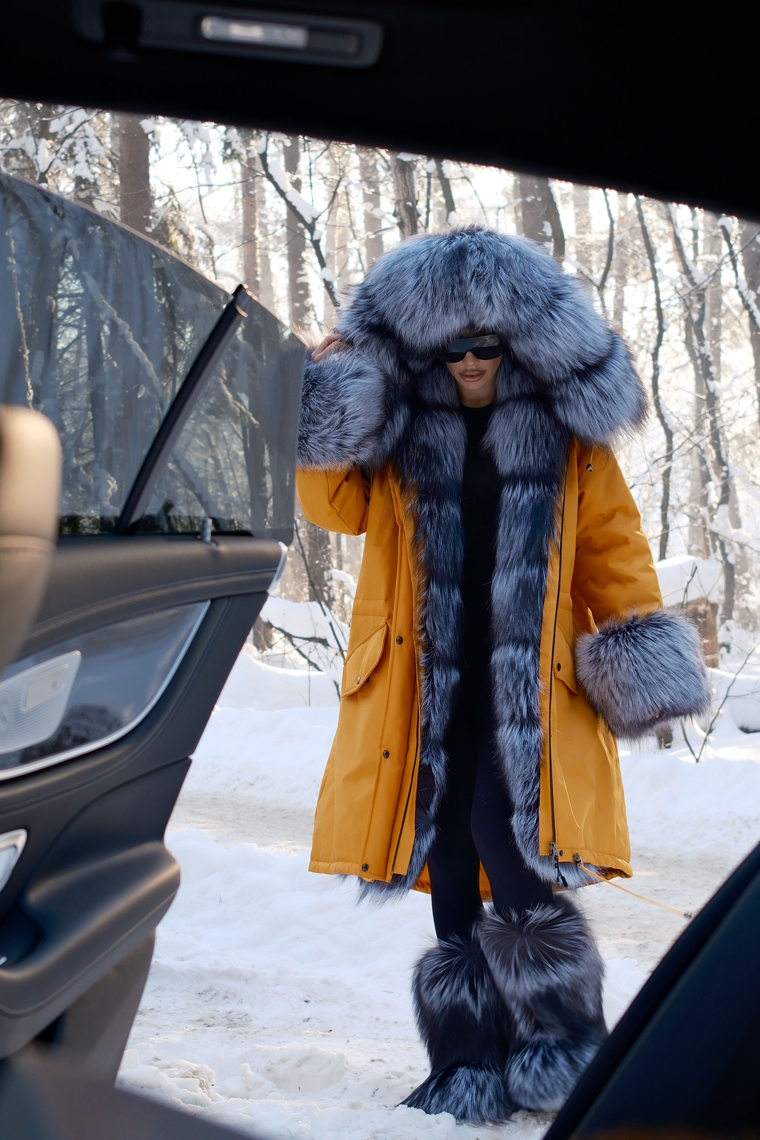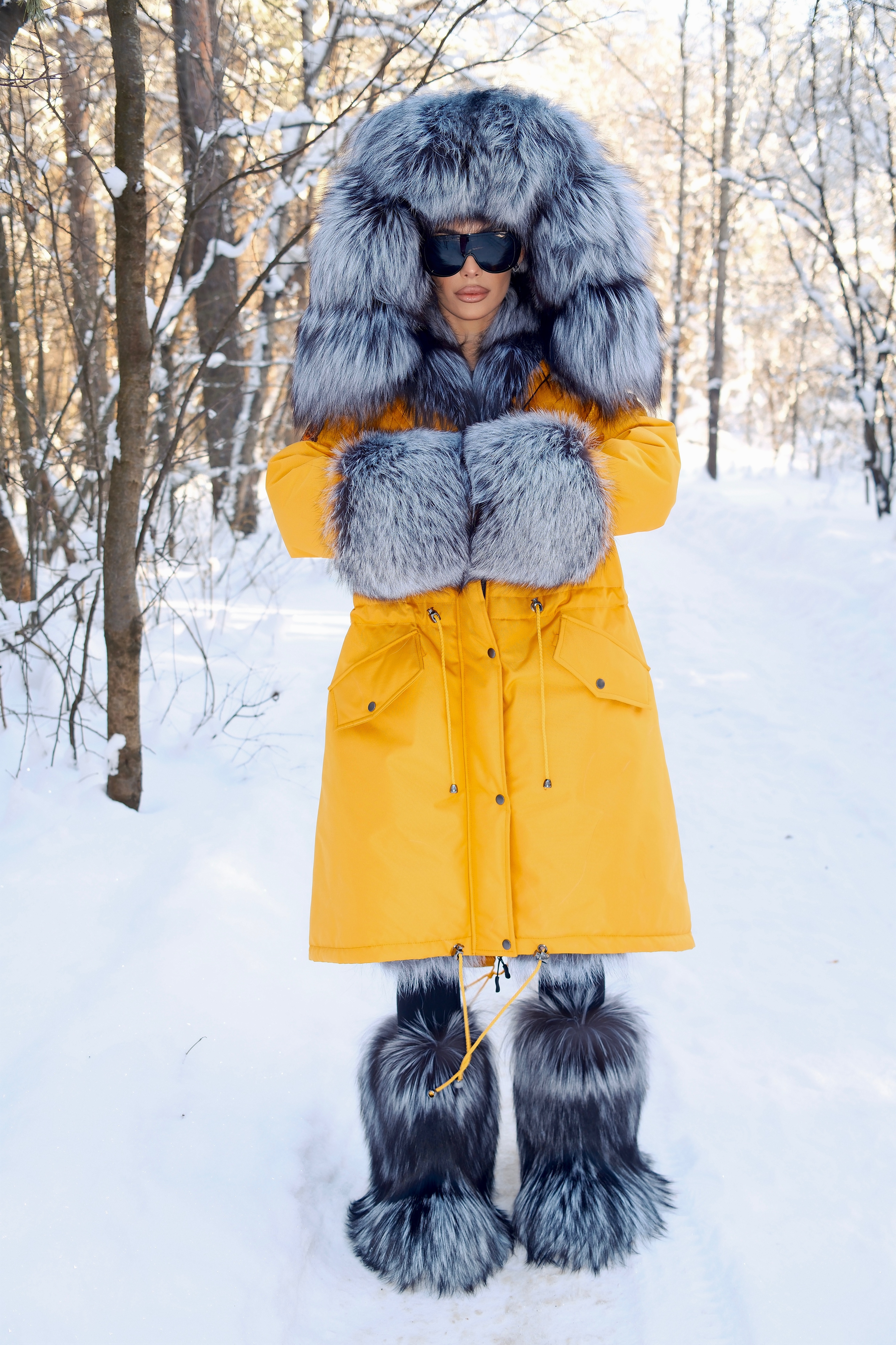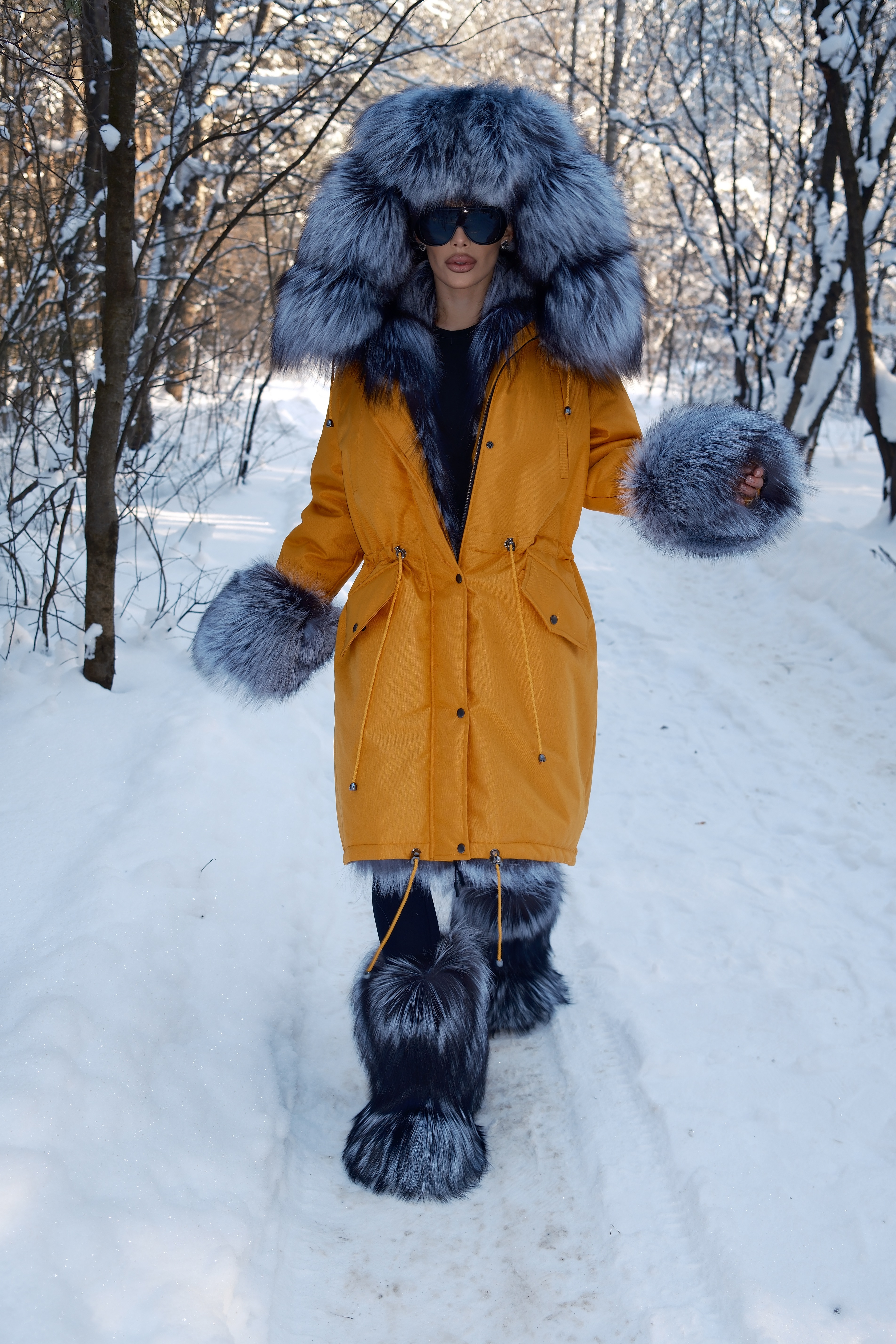 Parka with natural silver fox fur