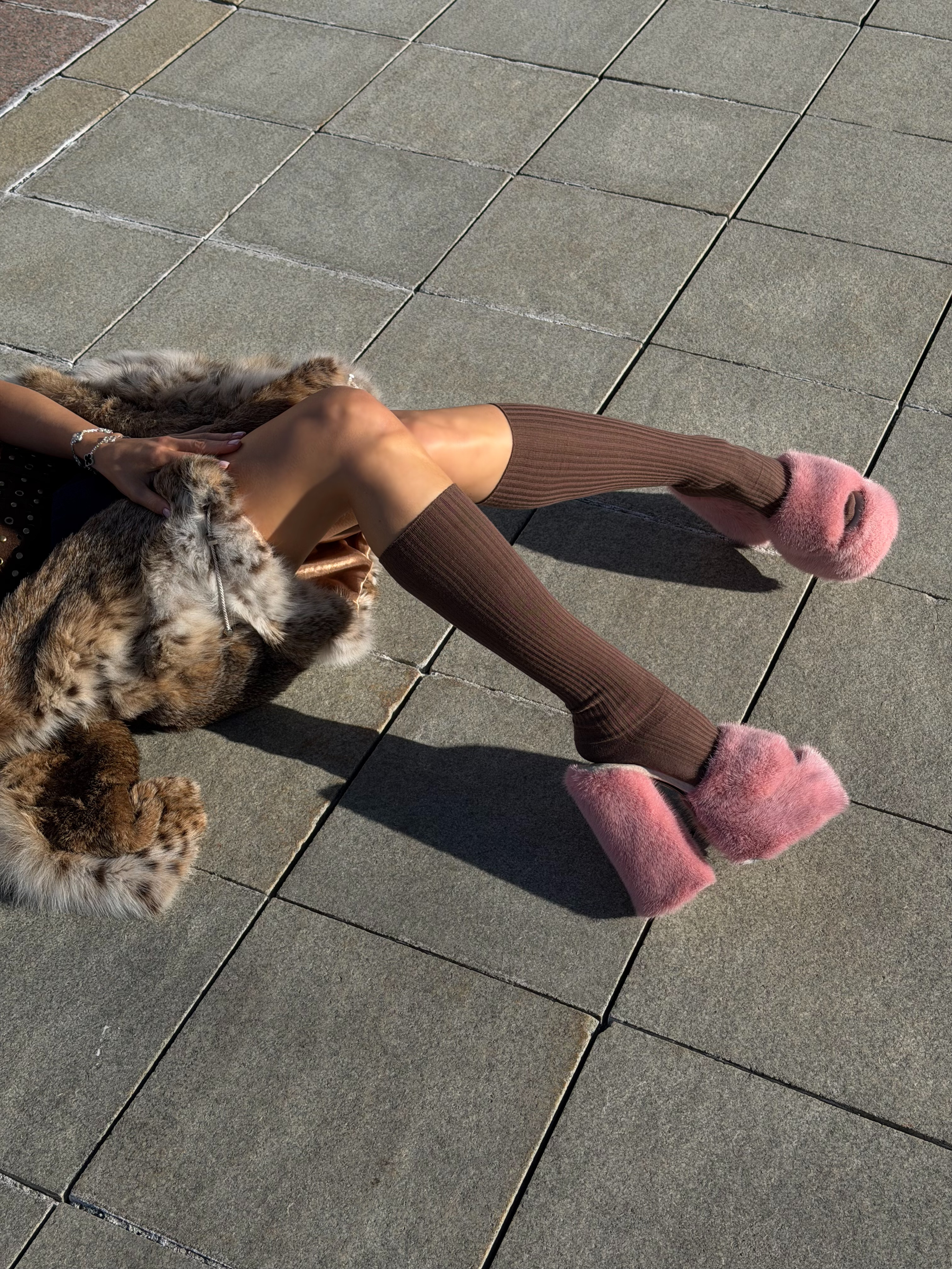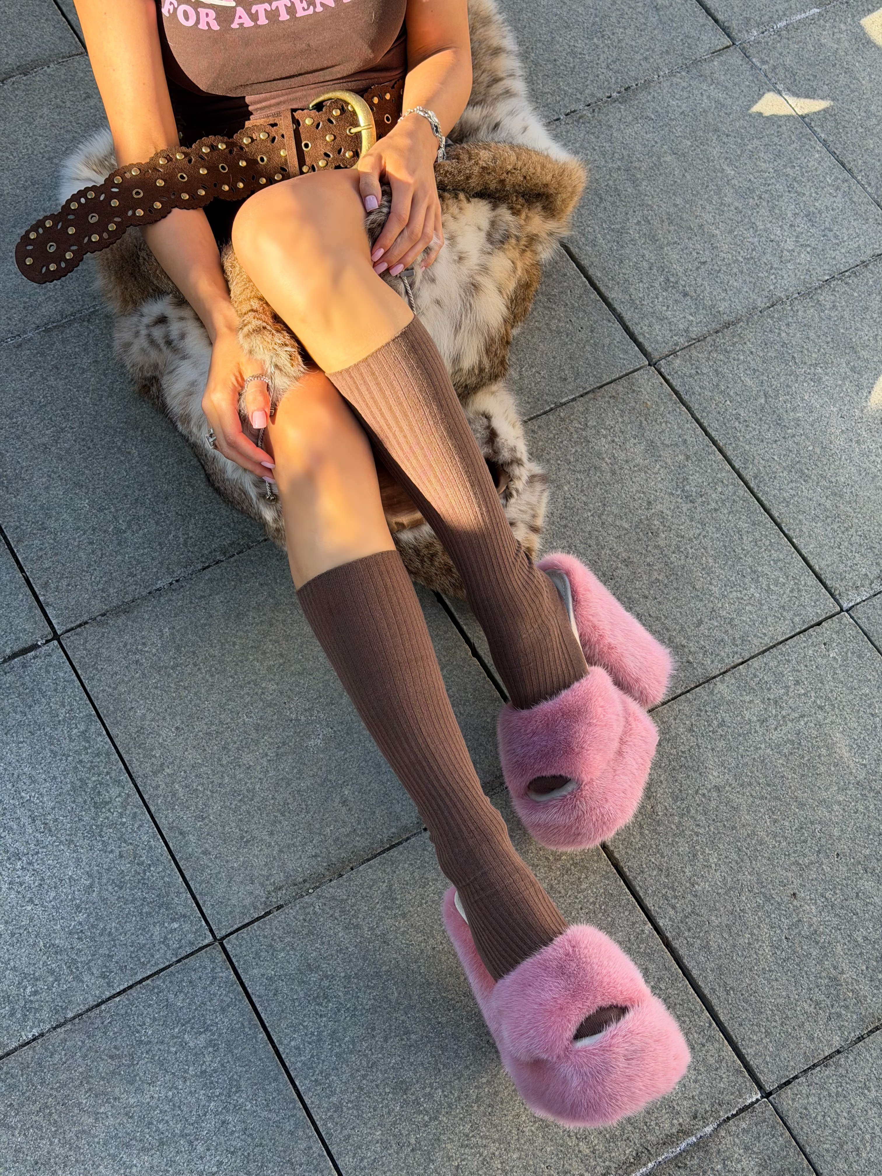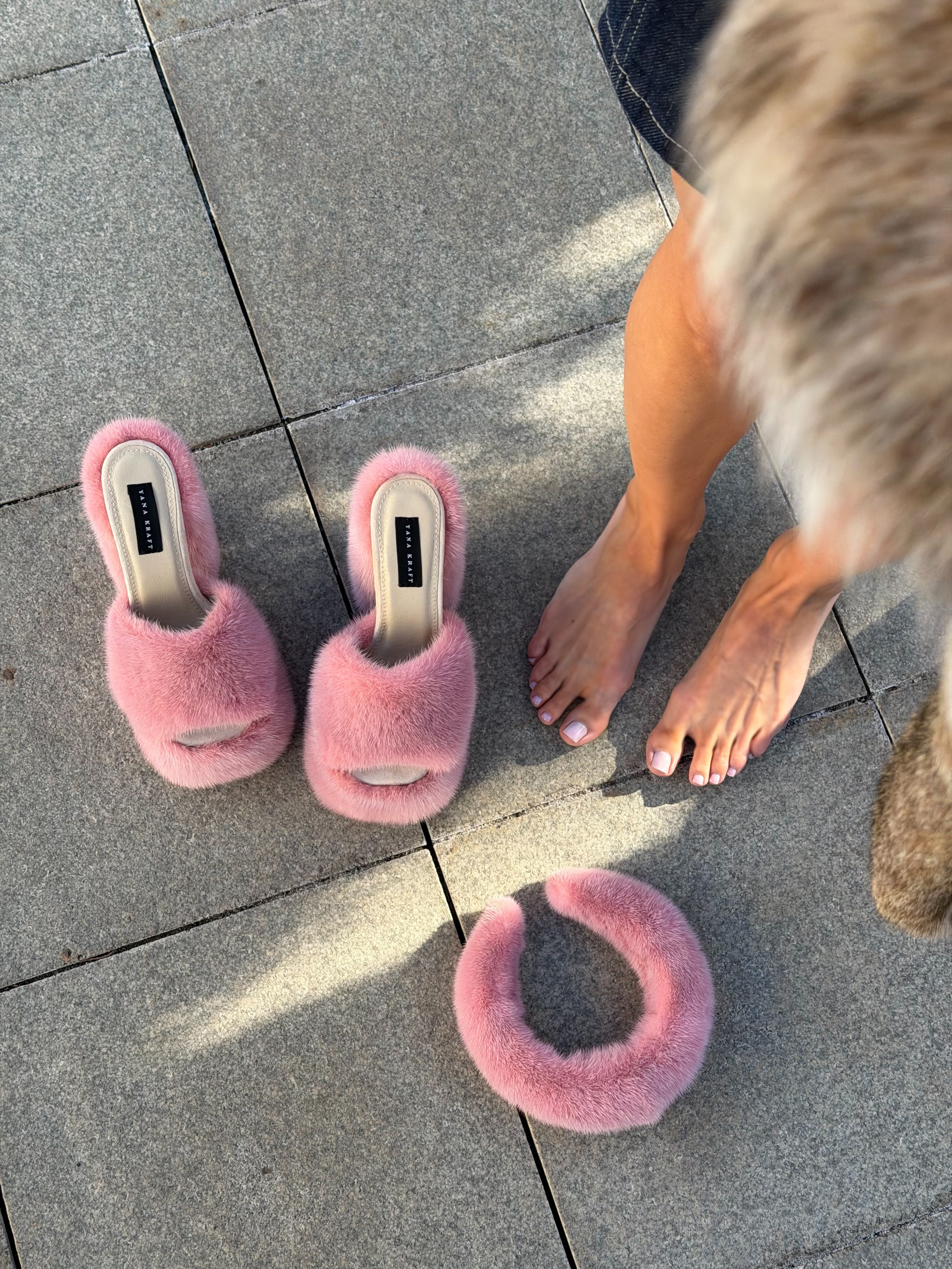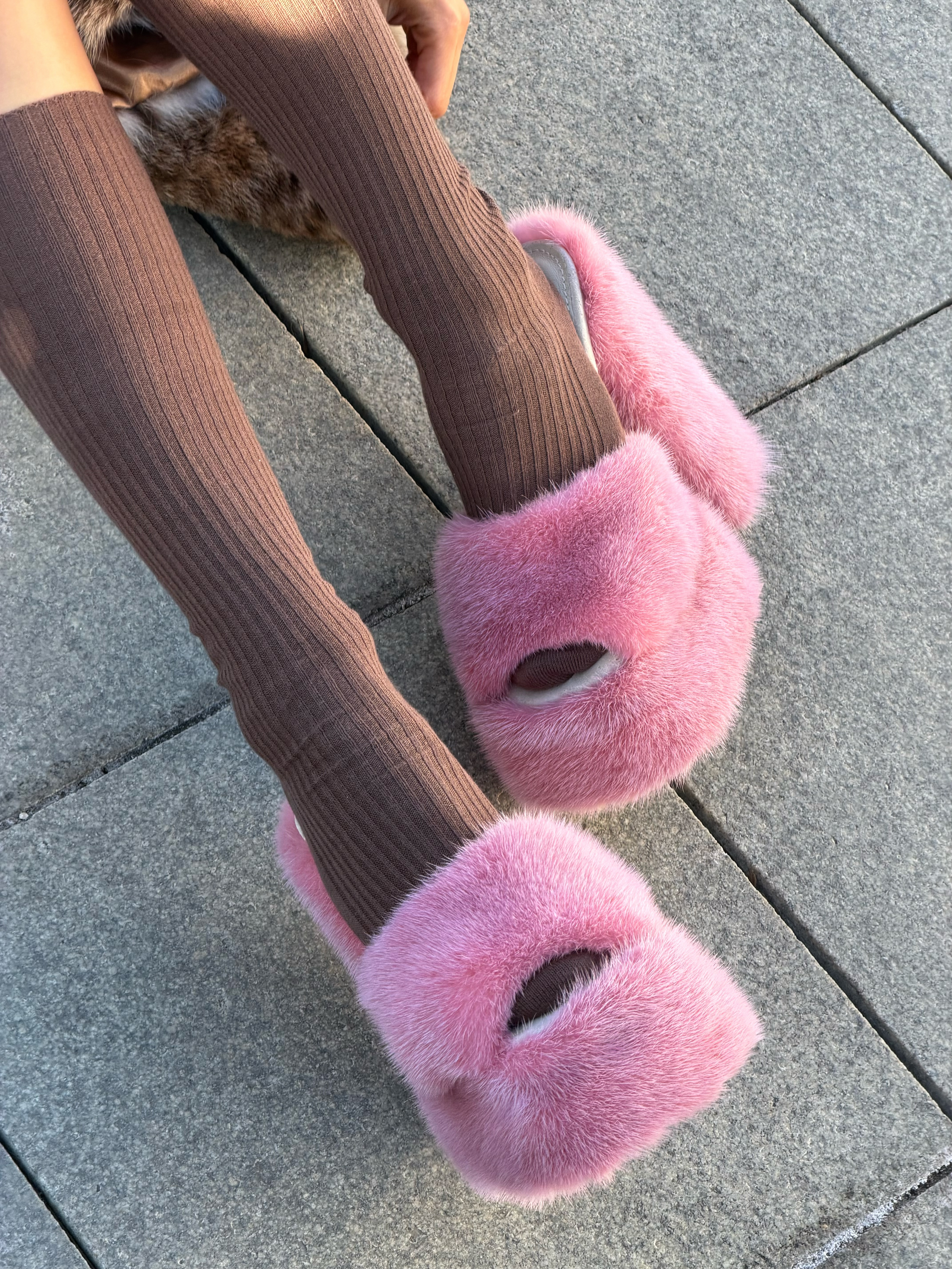 Pink mink fur shoes