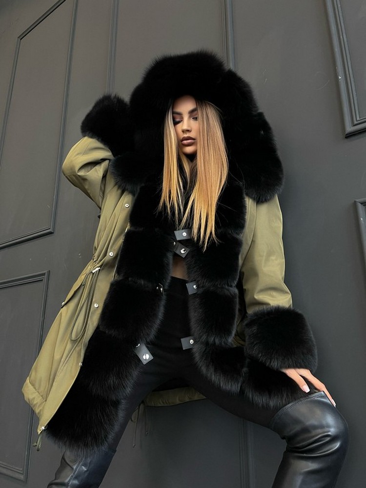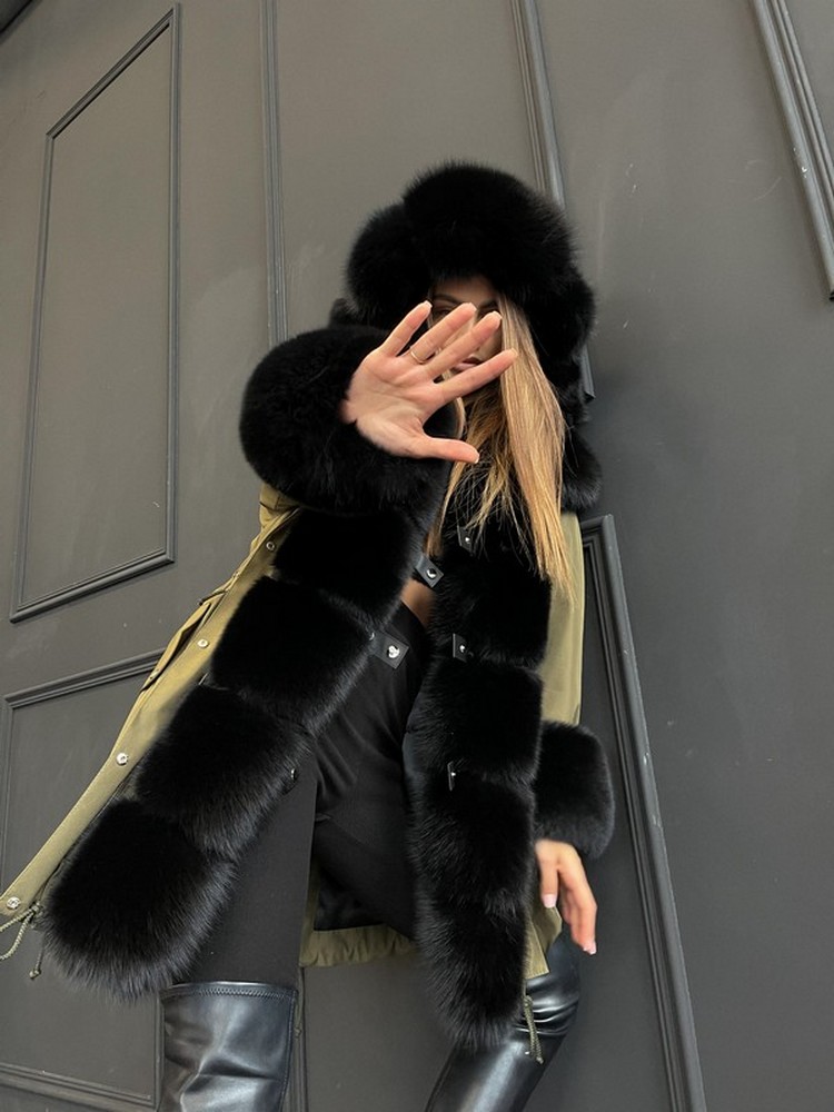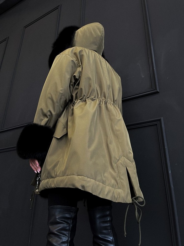 - -Product length can be any-Water-repellent coated raincoat fabric.-Temperature range -20°-Holofiber insulation 200 gr., -40 sheepskin insulation.-High knitted glove cuffs.Inside there are hidden fasteners (ribbon with buttons) so that the parka can be worn with the fur facing outFur and insulation are detachable with a hidden zipper. The fabric is washable