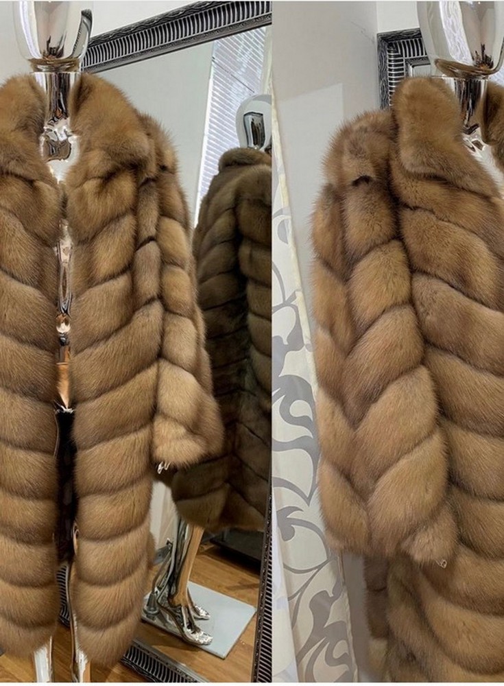 Stuffed with thick fur! Transverse layout of fur. Horizontal pockets with magnets. It is possible to make it with sable fur (last photos). Price on request! Natural color without tinting. Lining made of Italian polyviscose or natural silk. And possible of any length. Italian fittings.