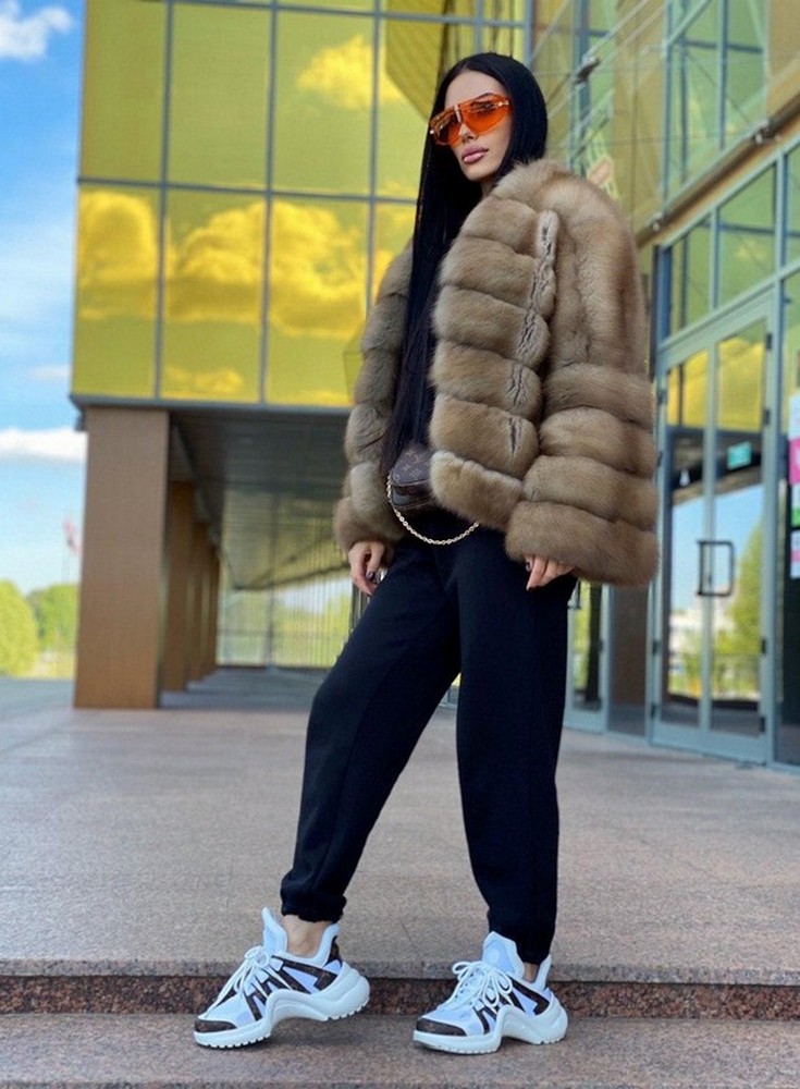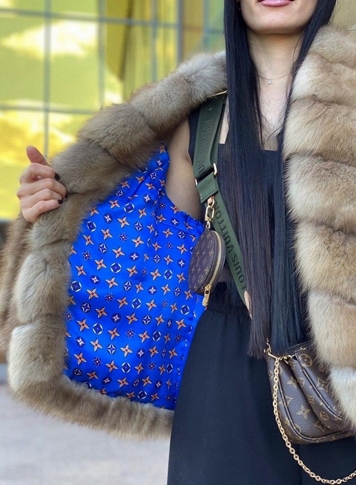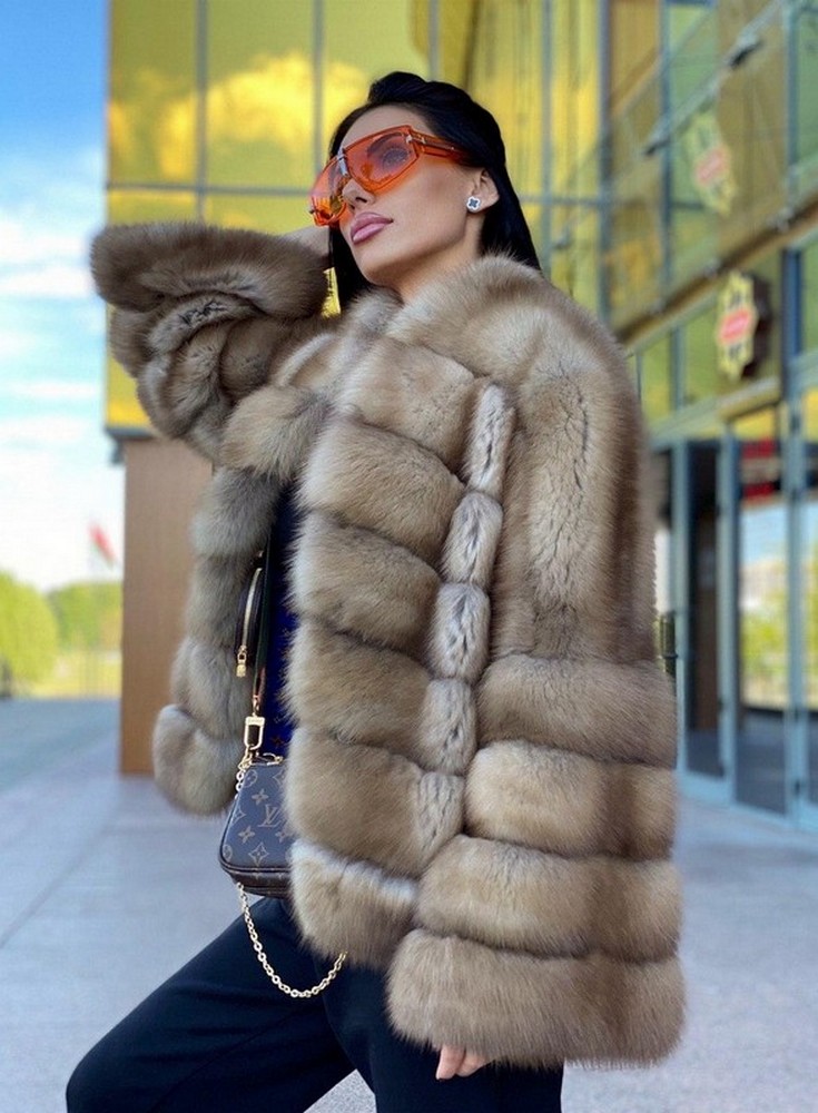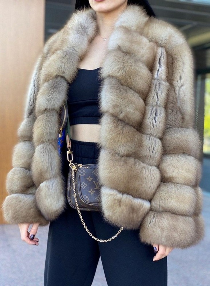 Pine marten fur coat in a natural shade.