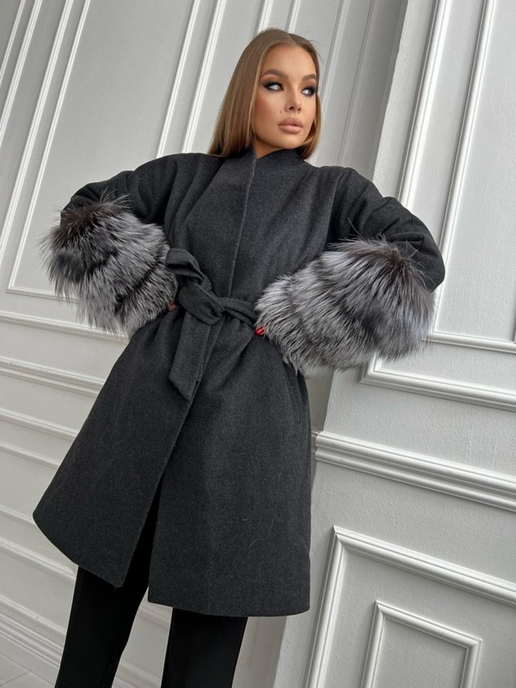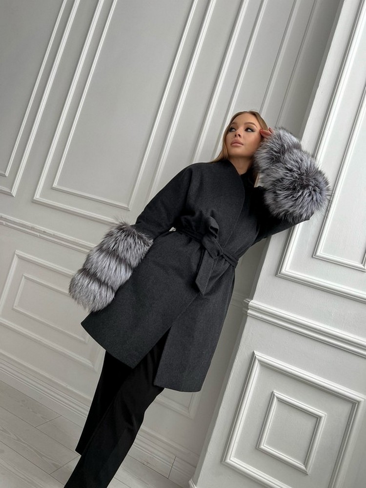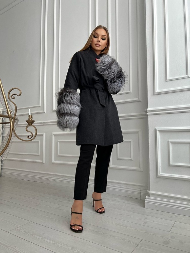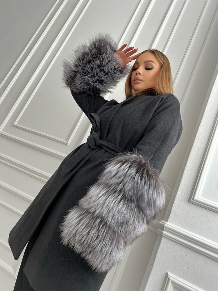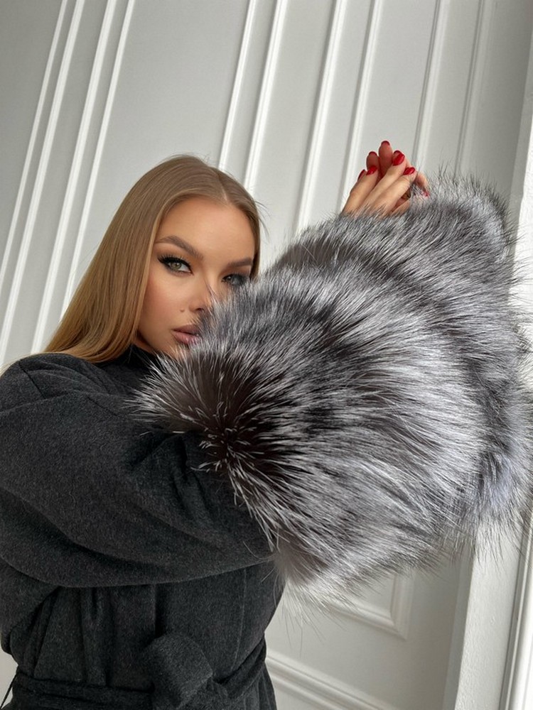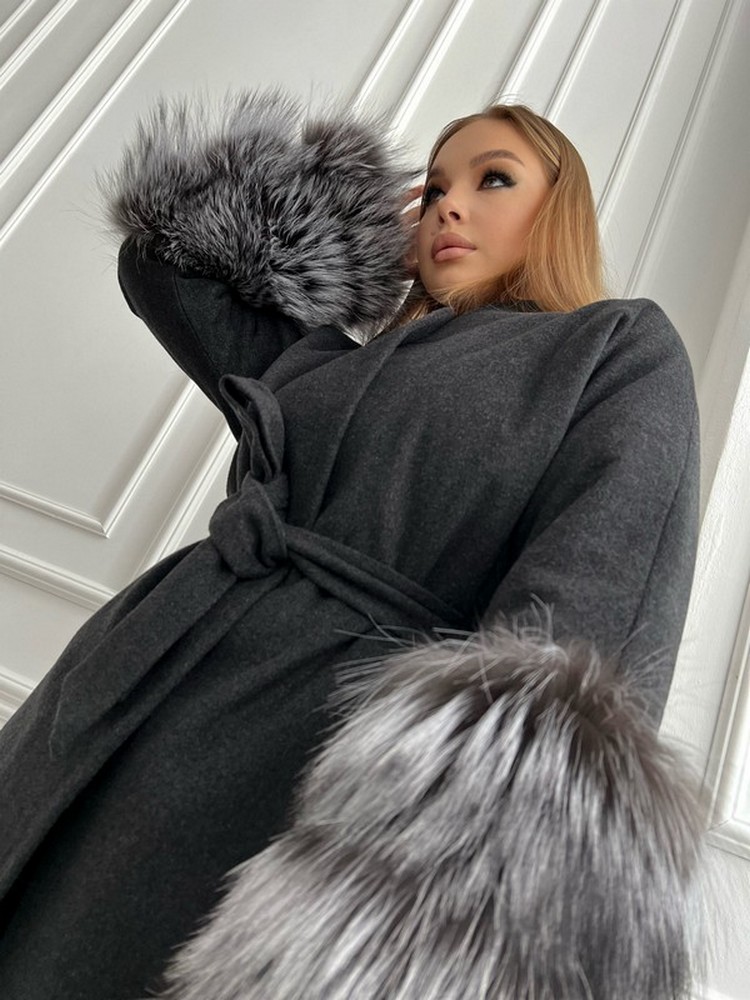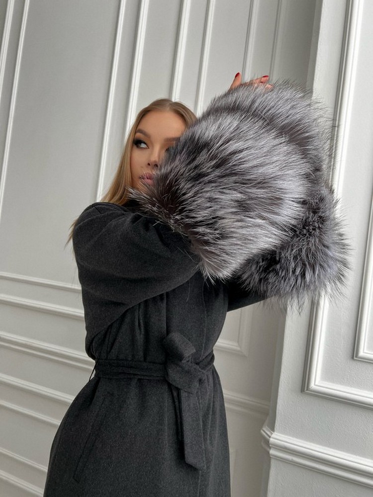 Coat with silver fox fur