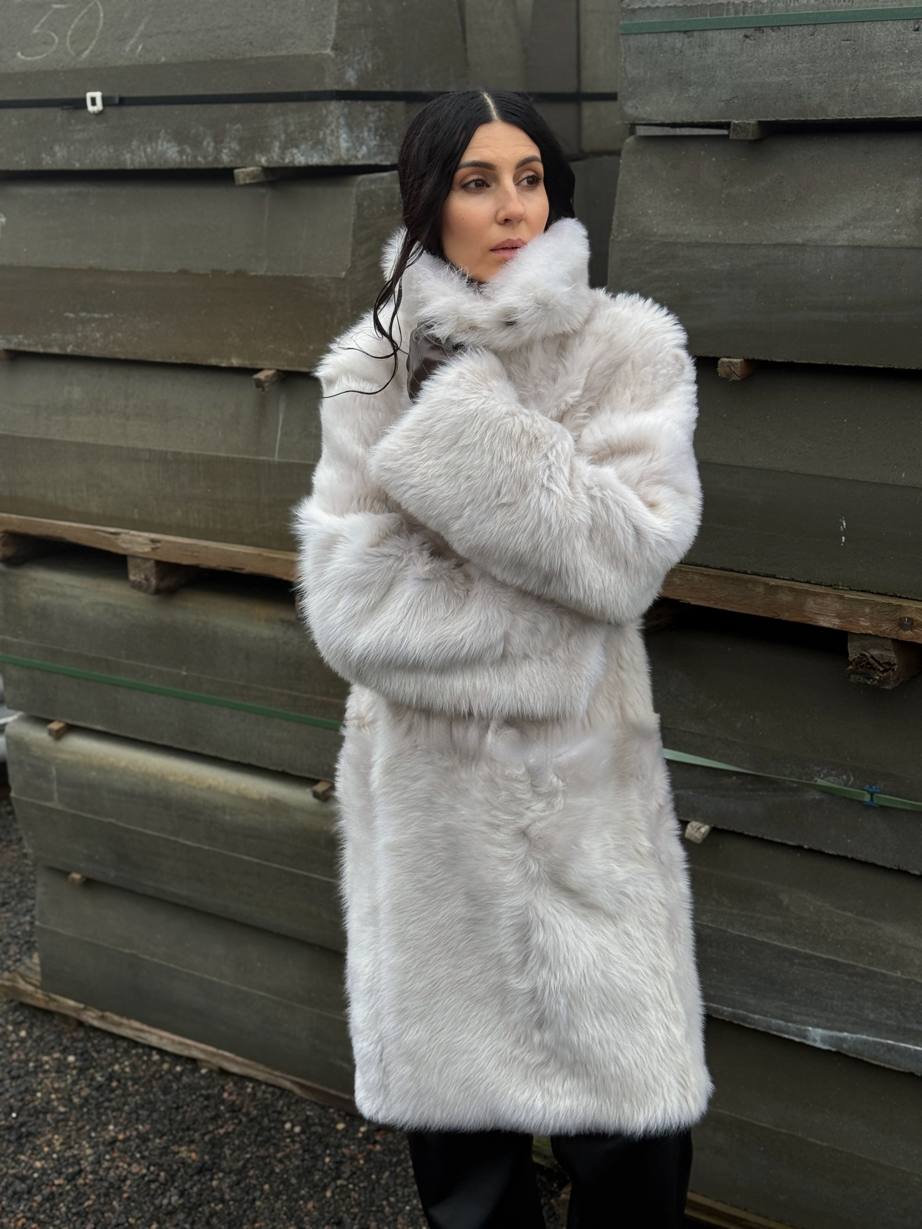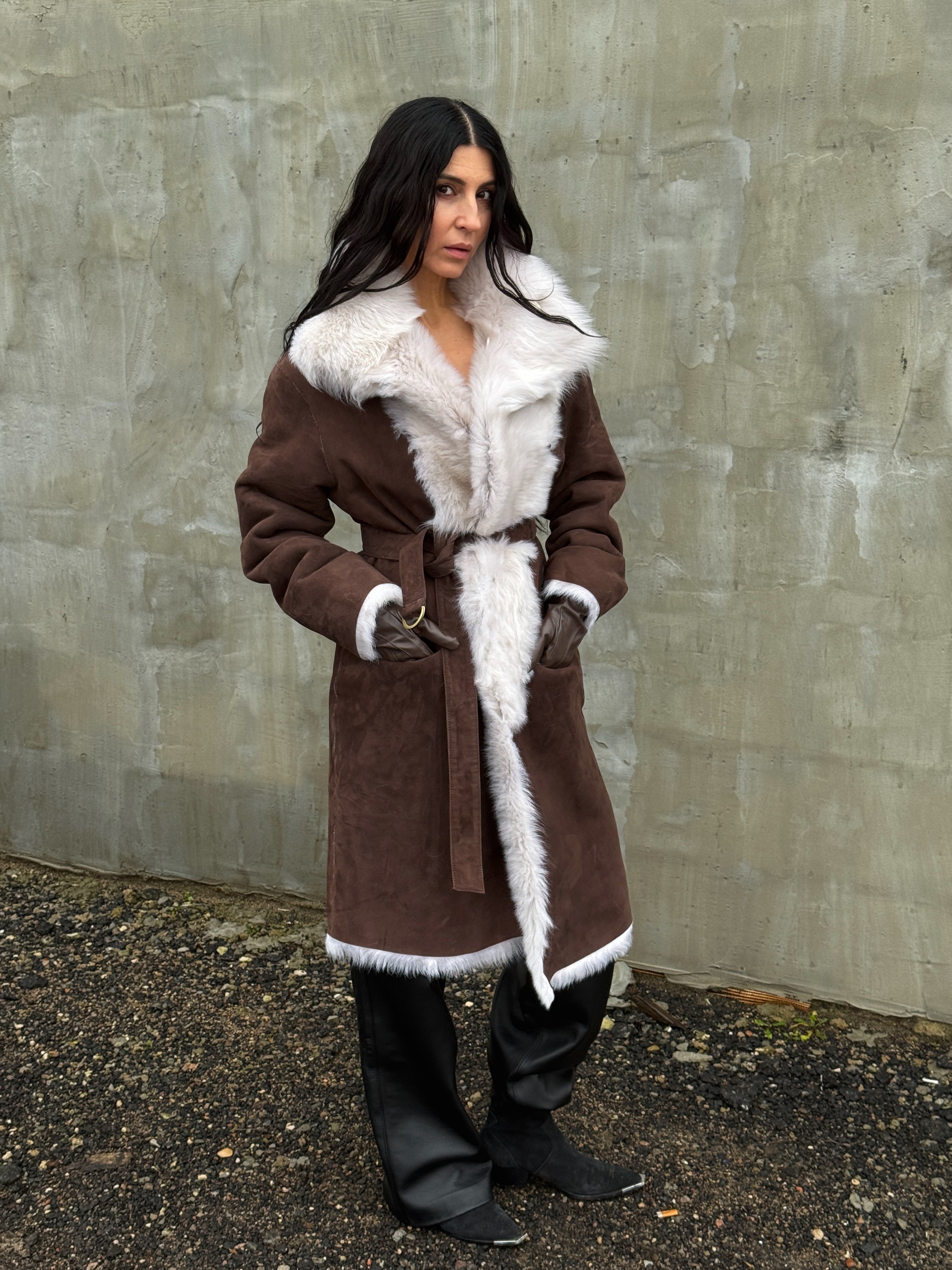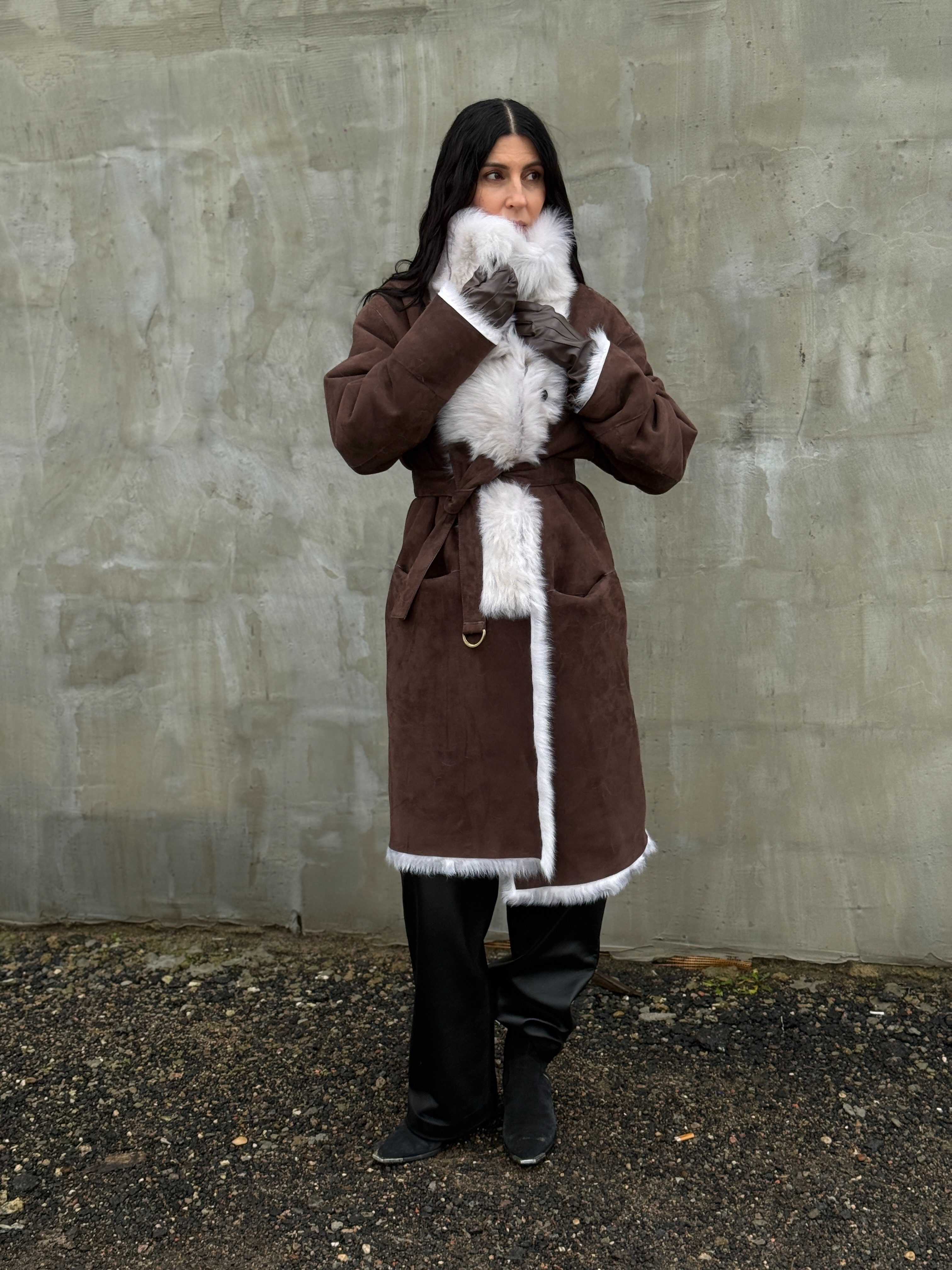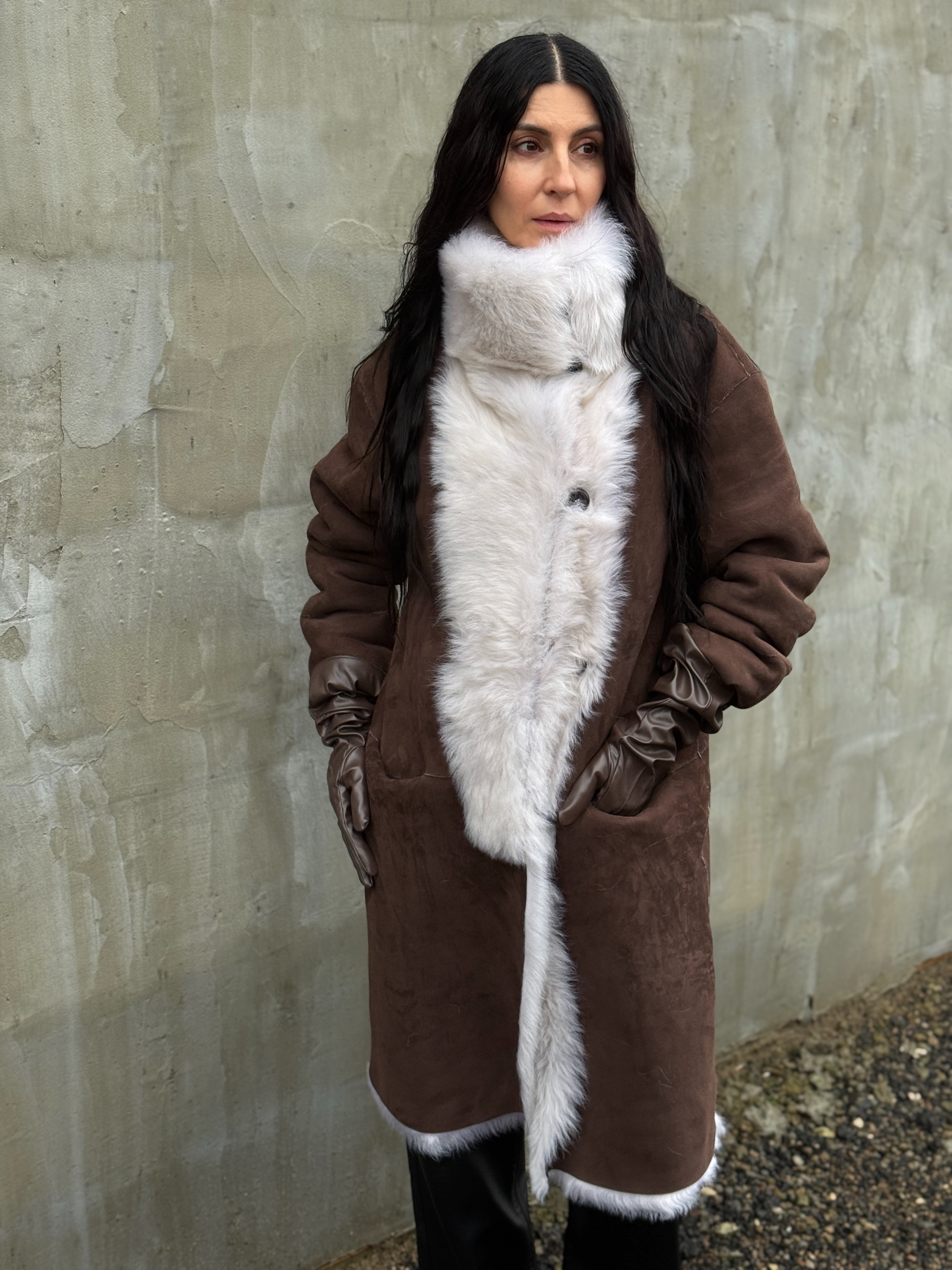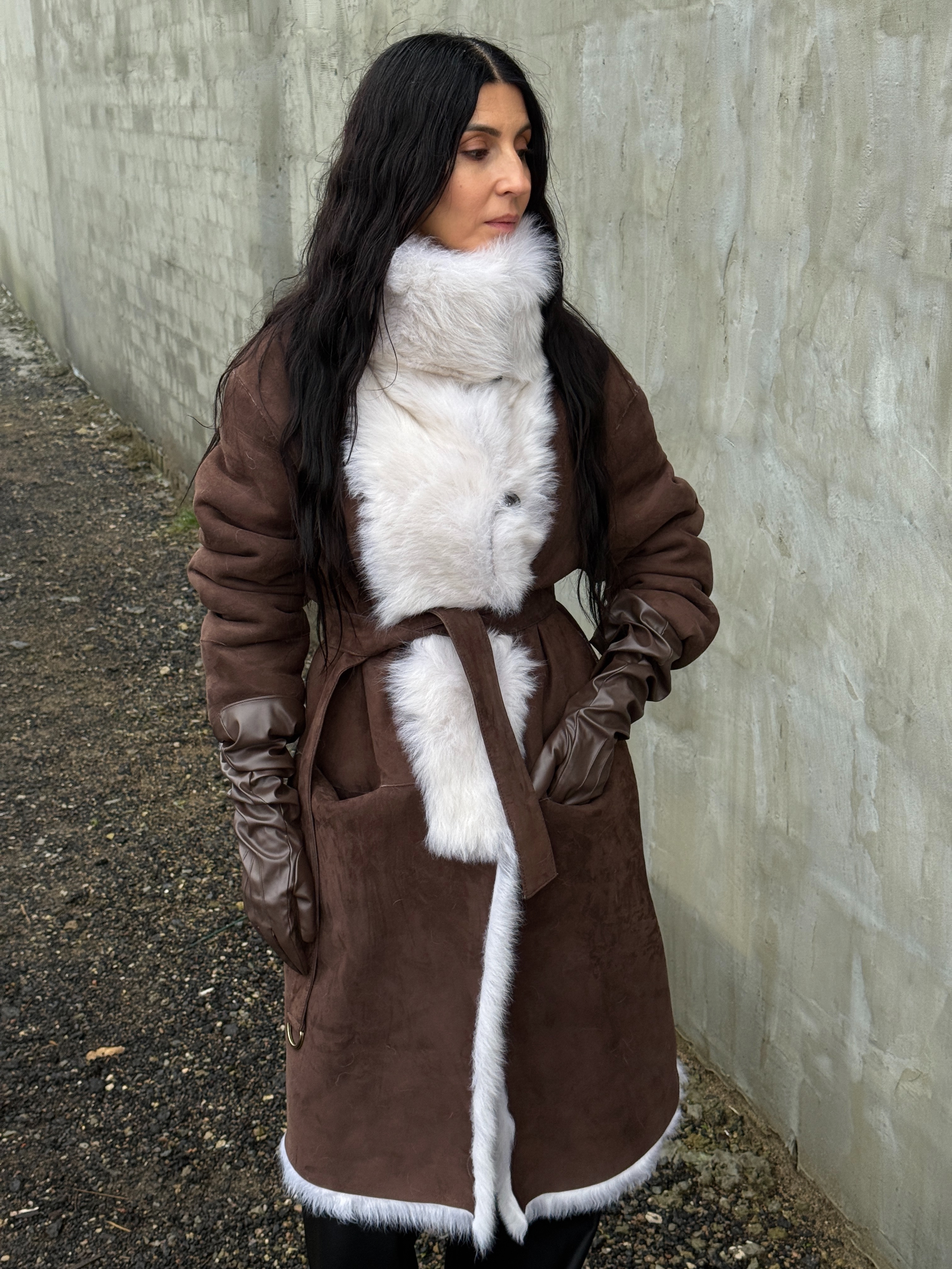 Sheepskin coat length 105 cm