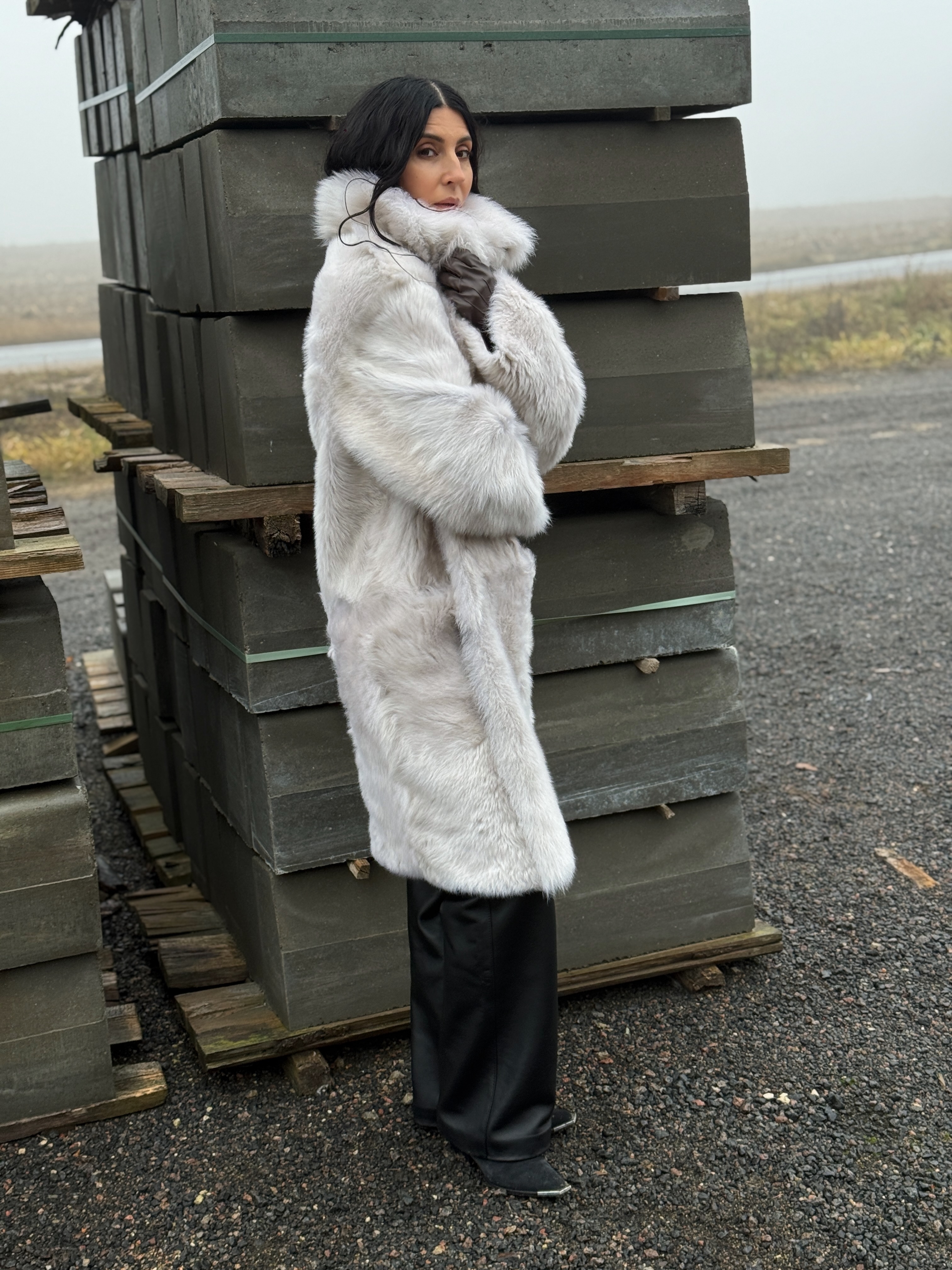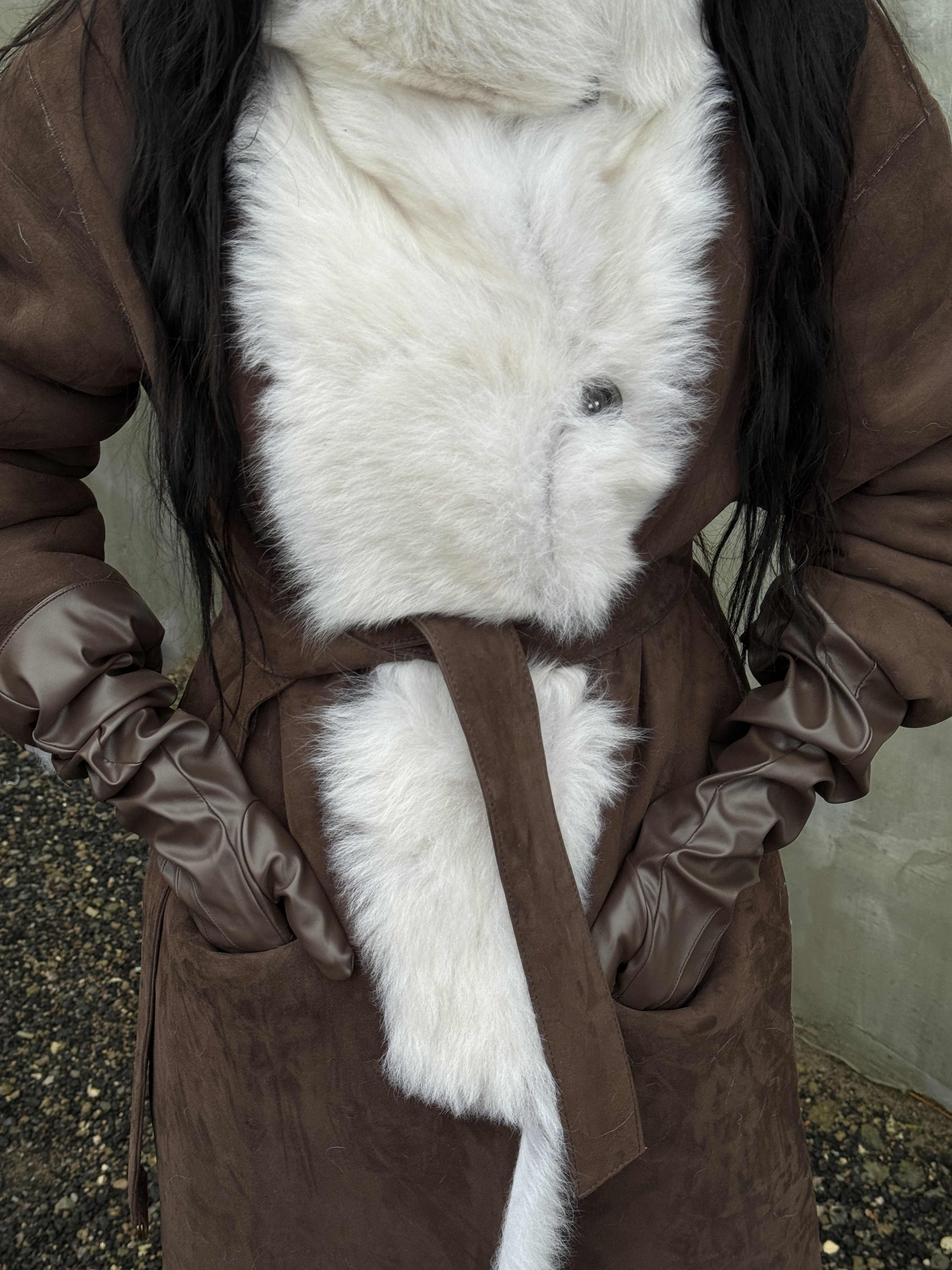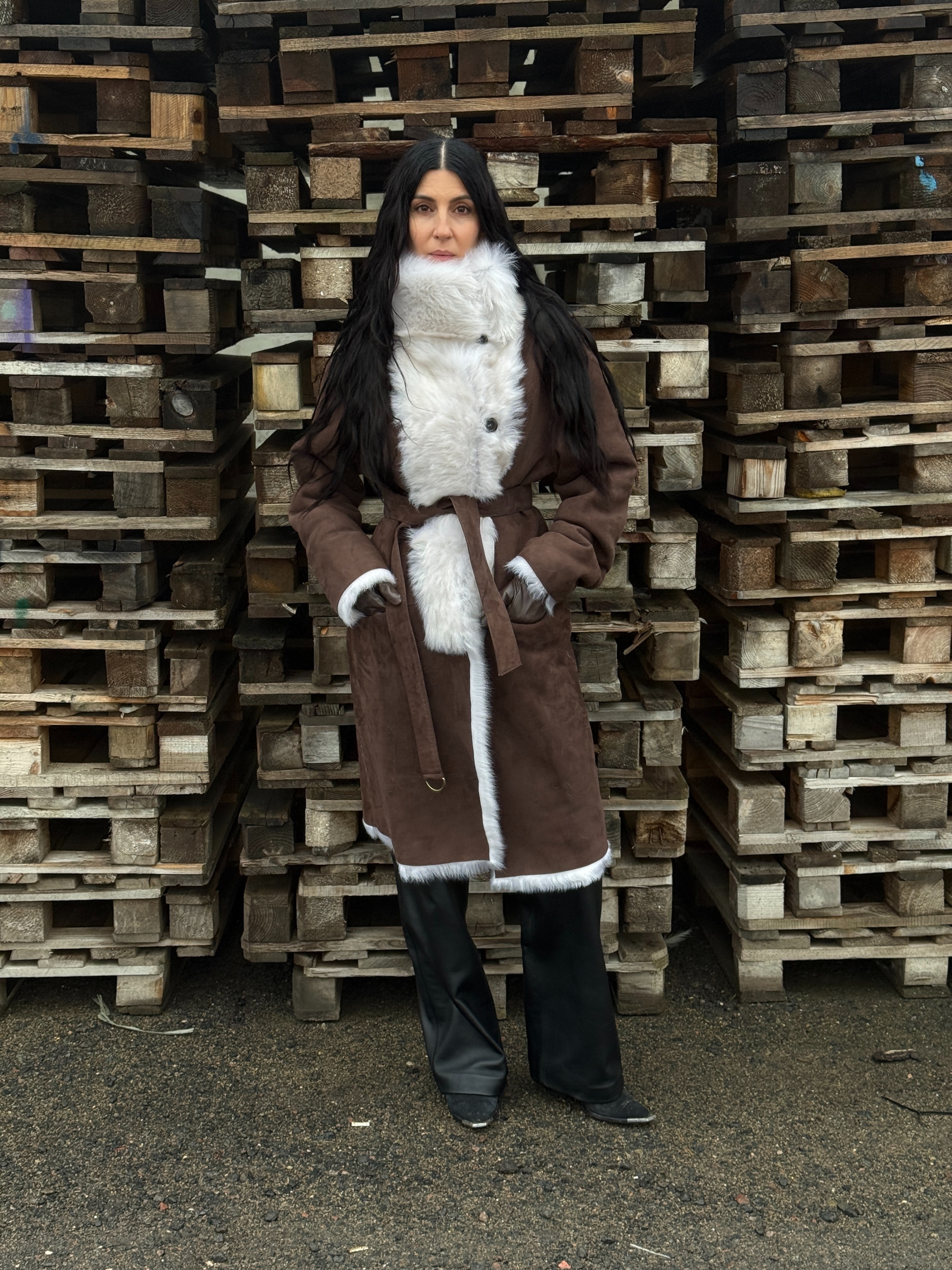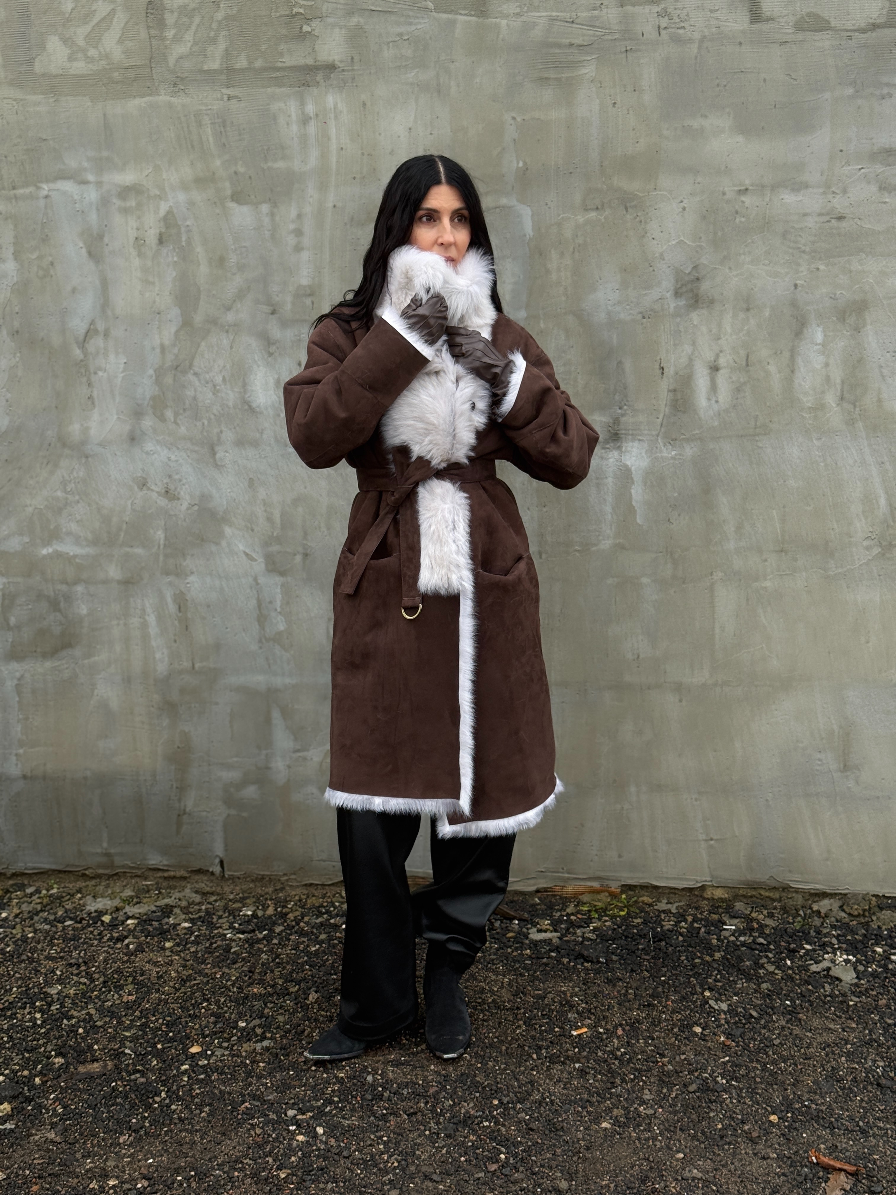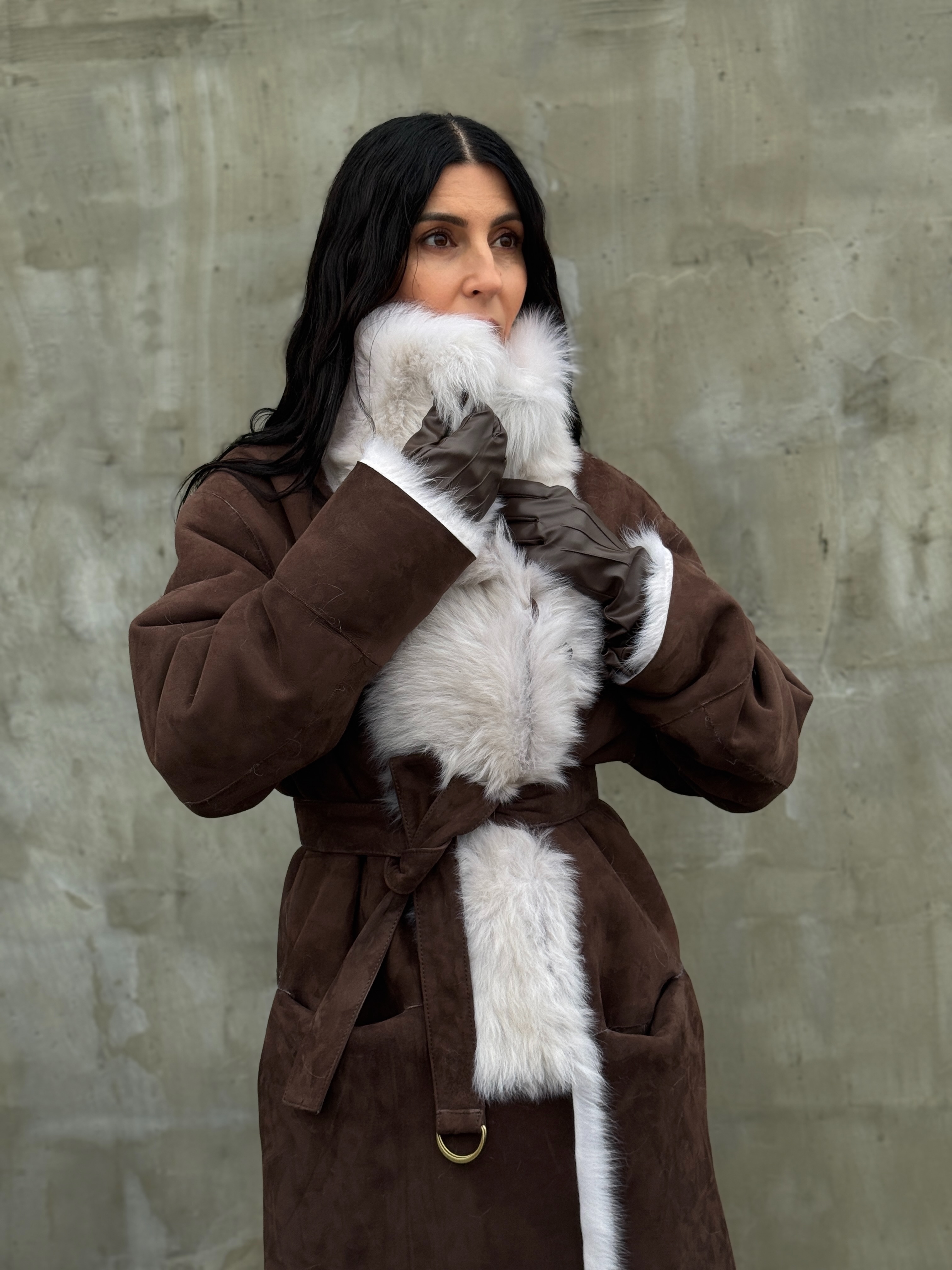 Sheepskin coat length 105 cm