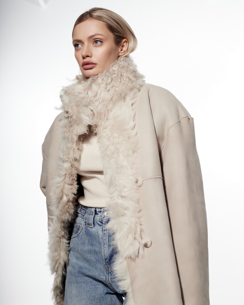 Sheepskin coat length 63 cm
