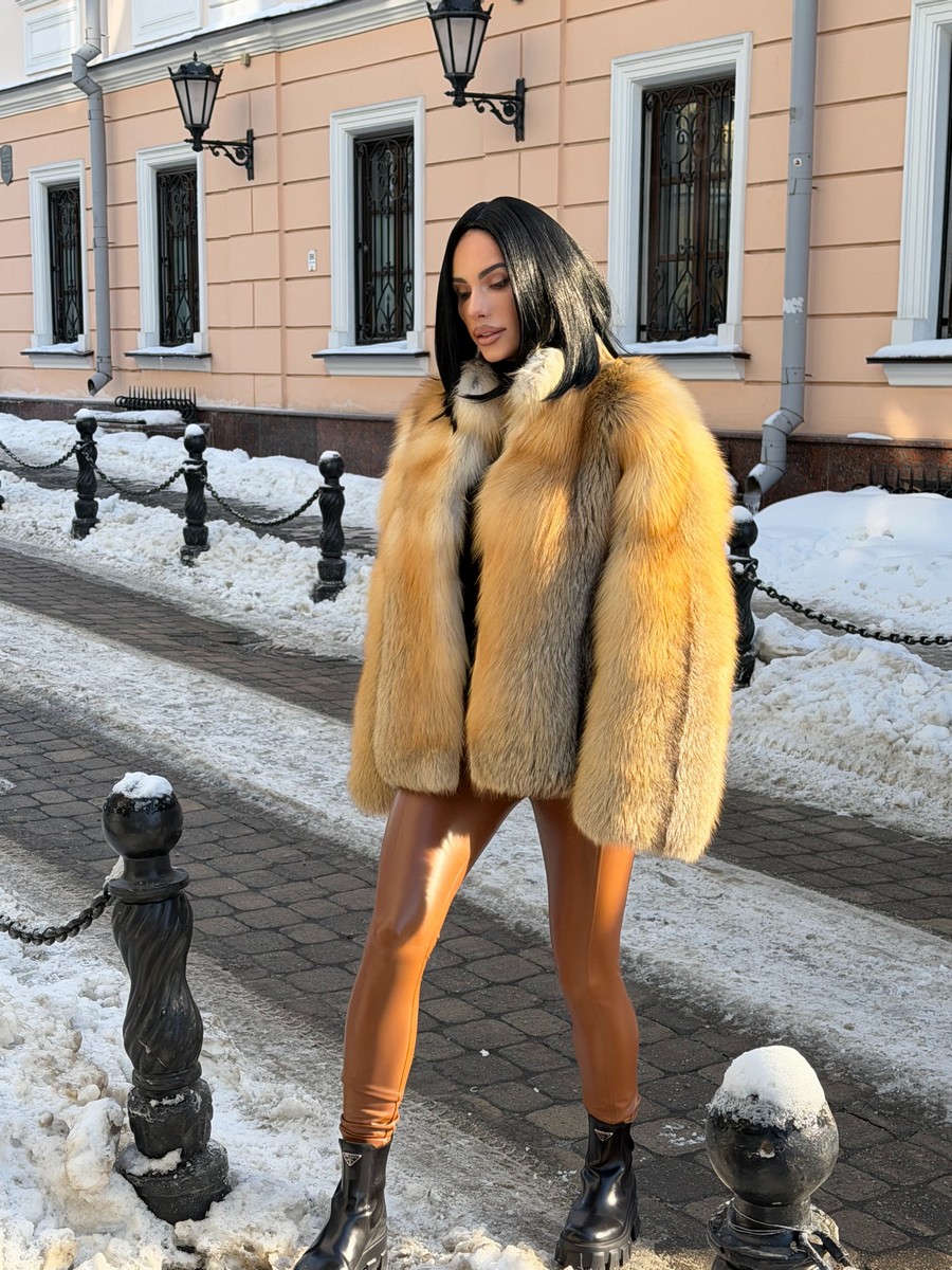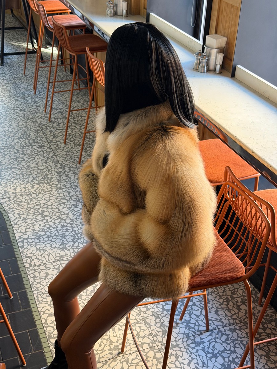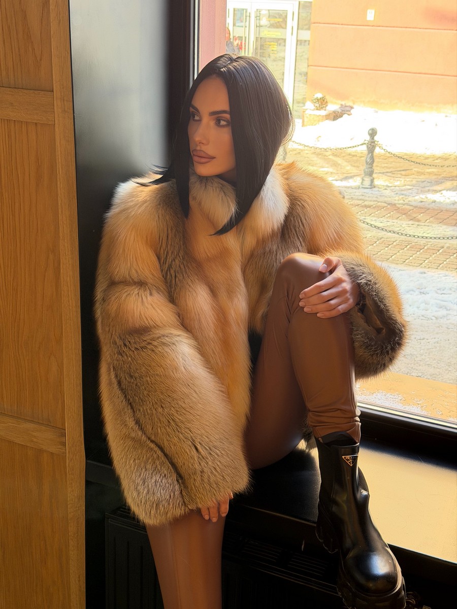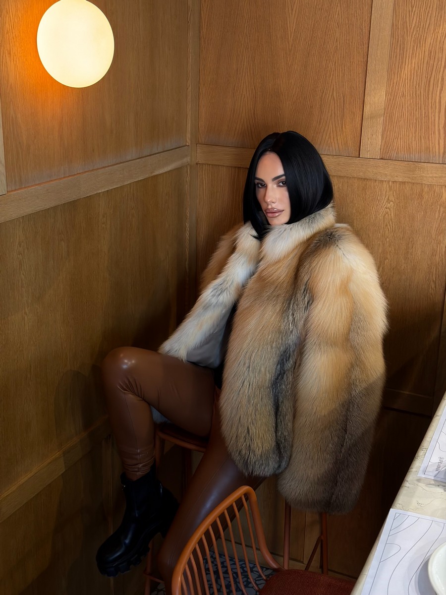 The fur coat is very warm and stylish.