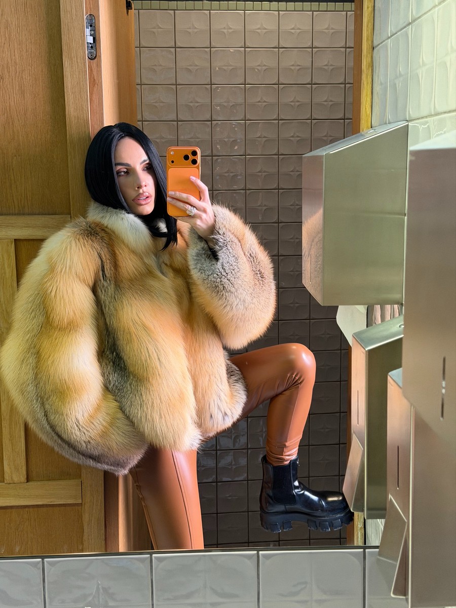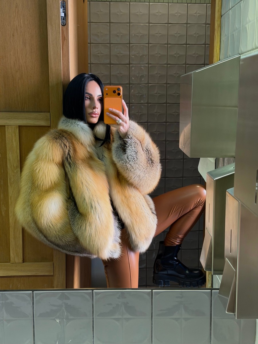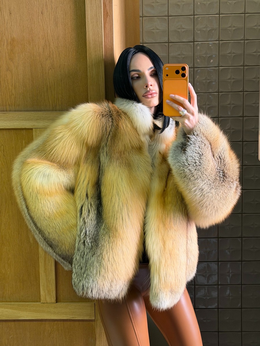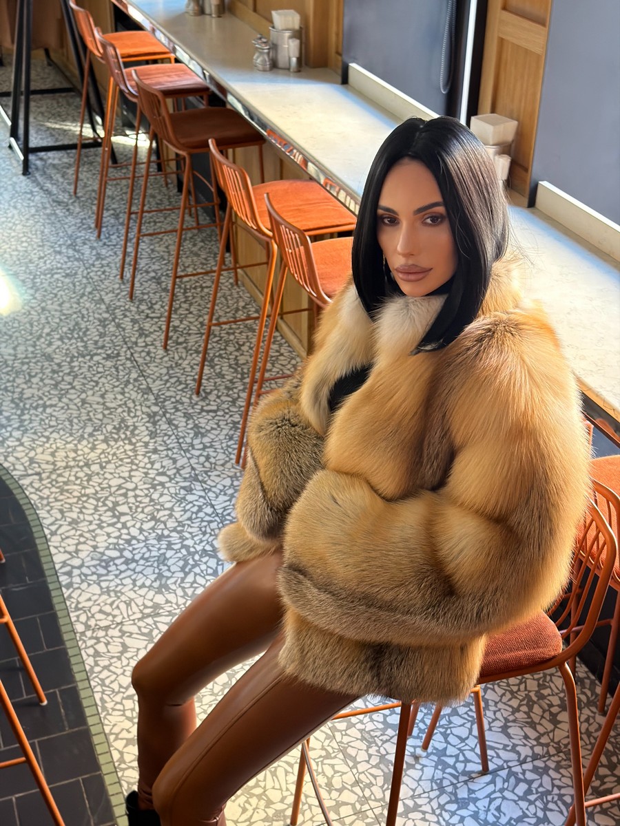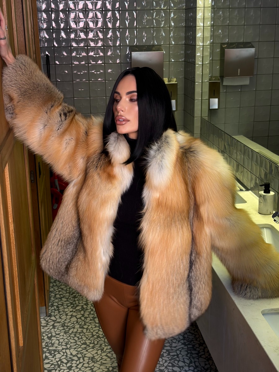 The fur coat is very warm and stylish.