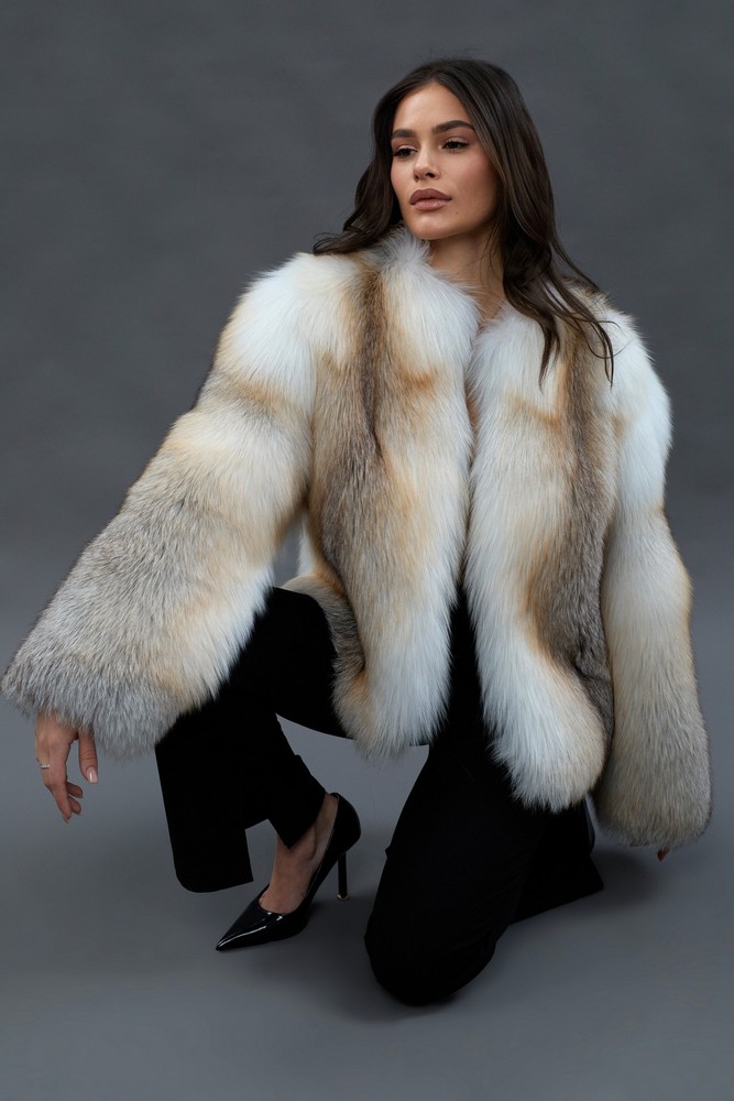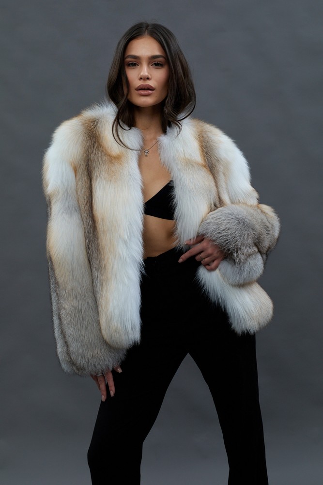 The fur coat is very warm and stylish.
