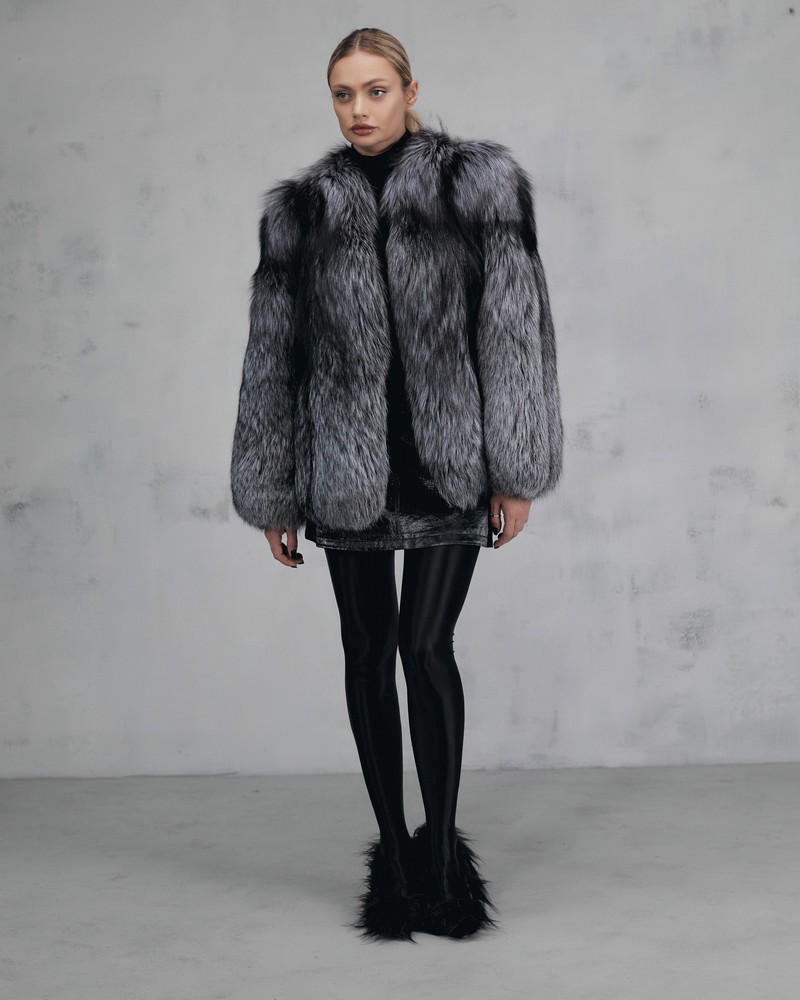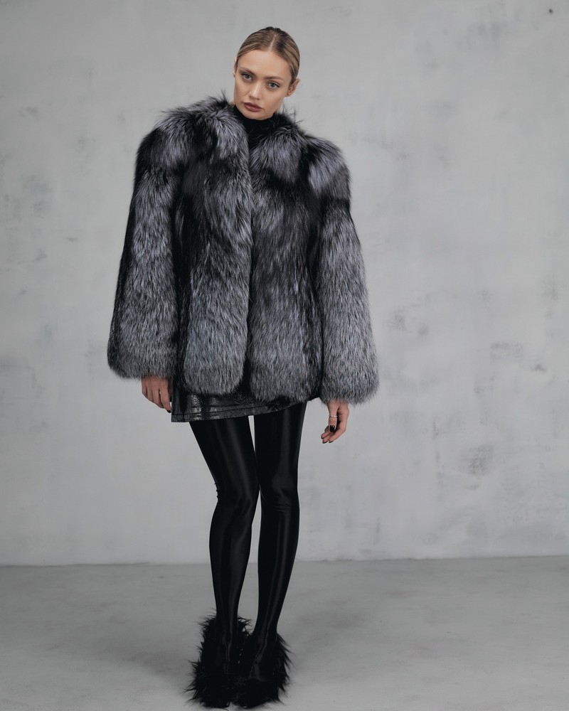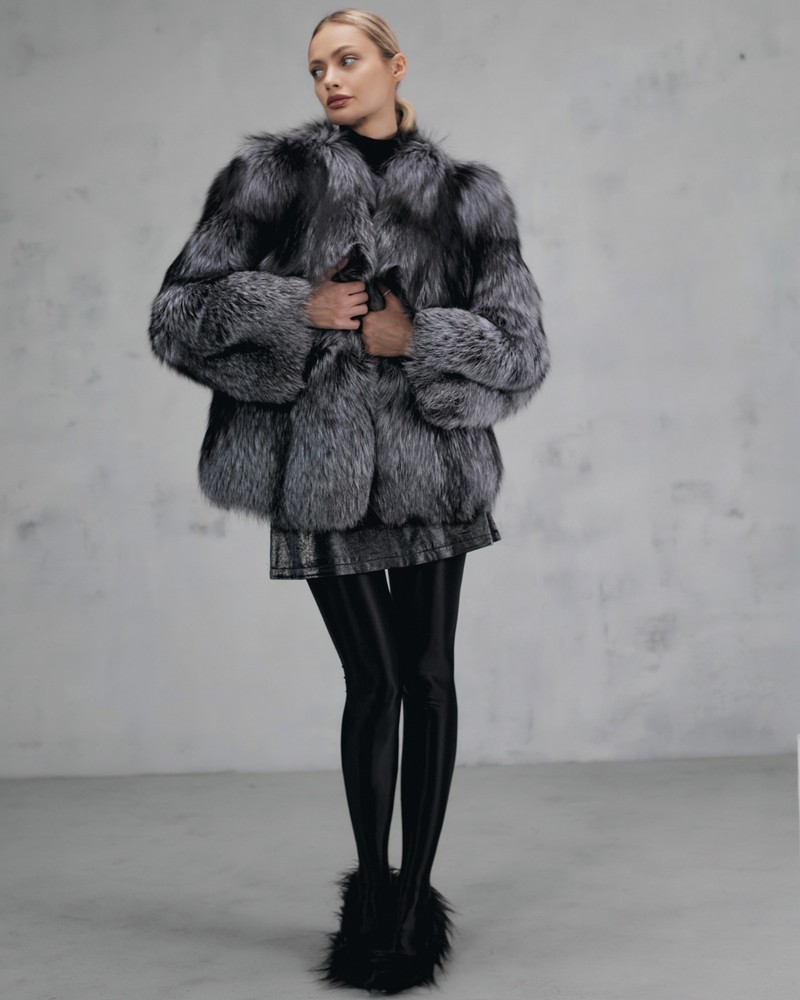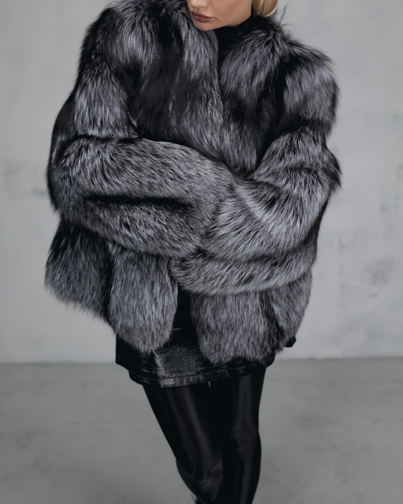 The fur coat is very warm and stylish.