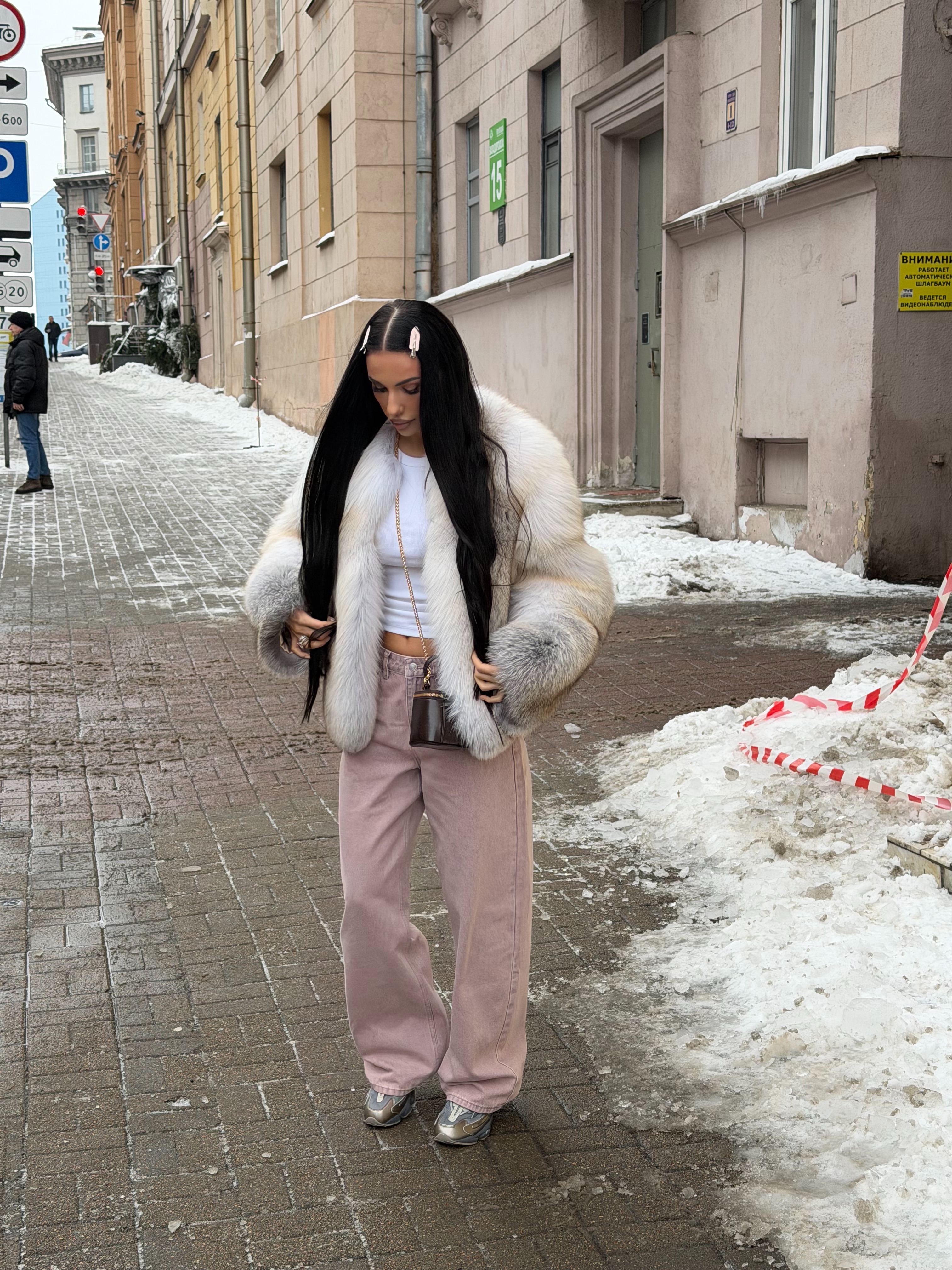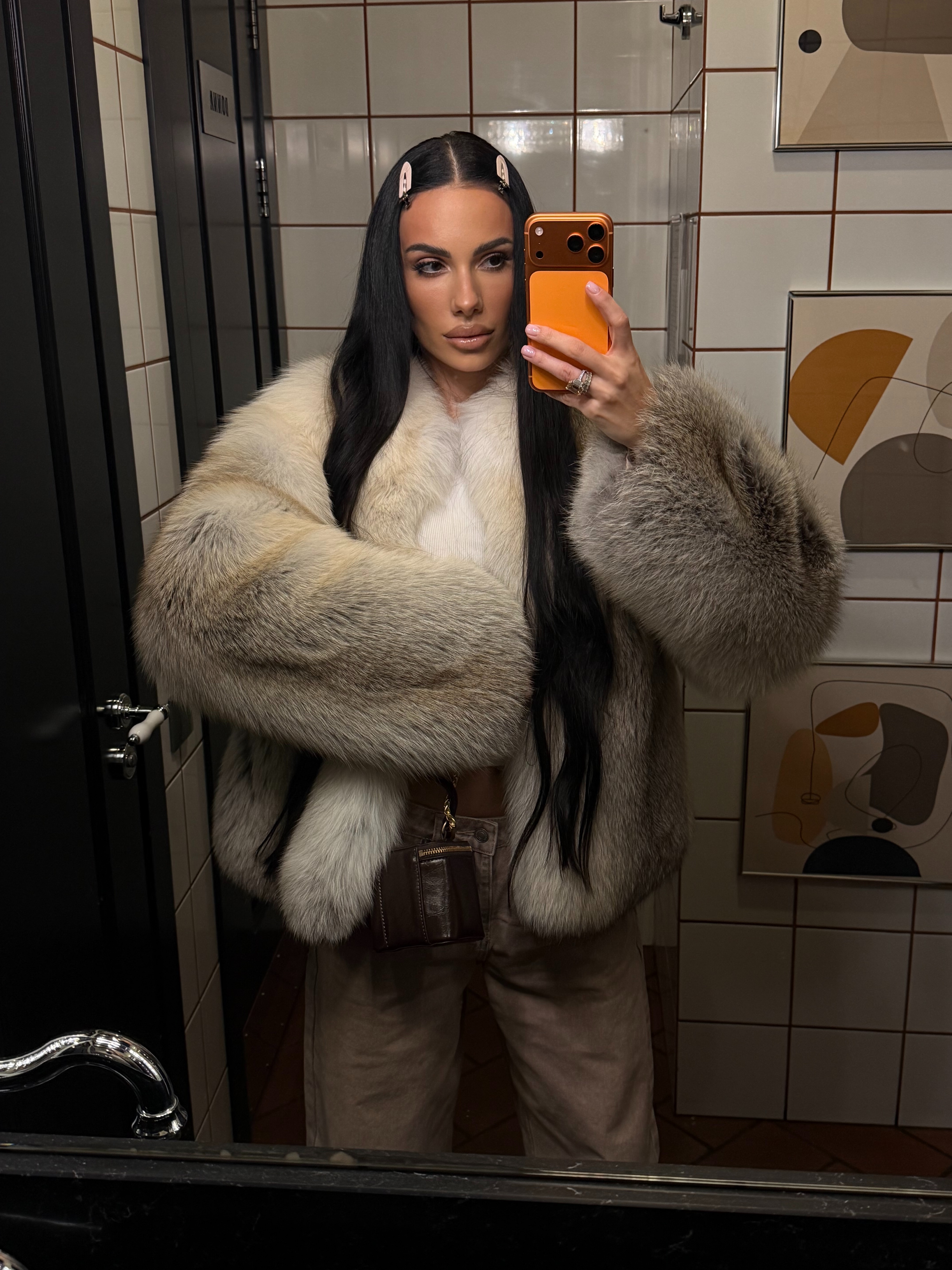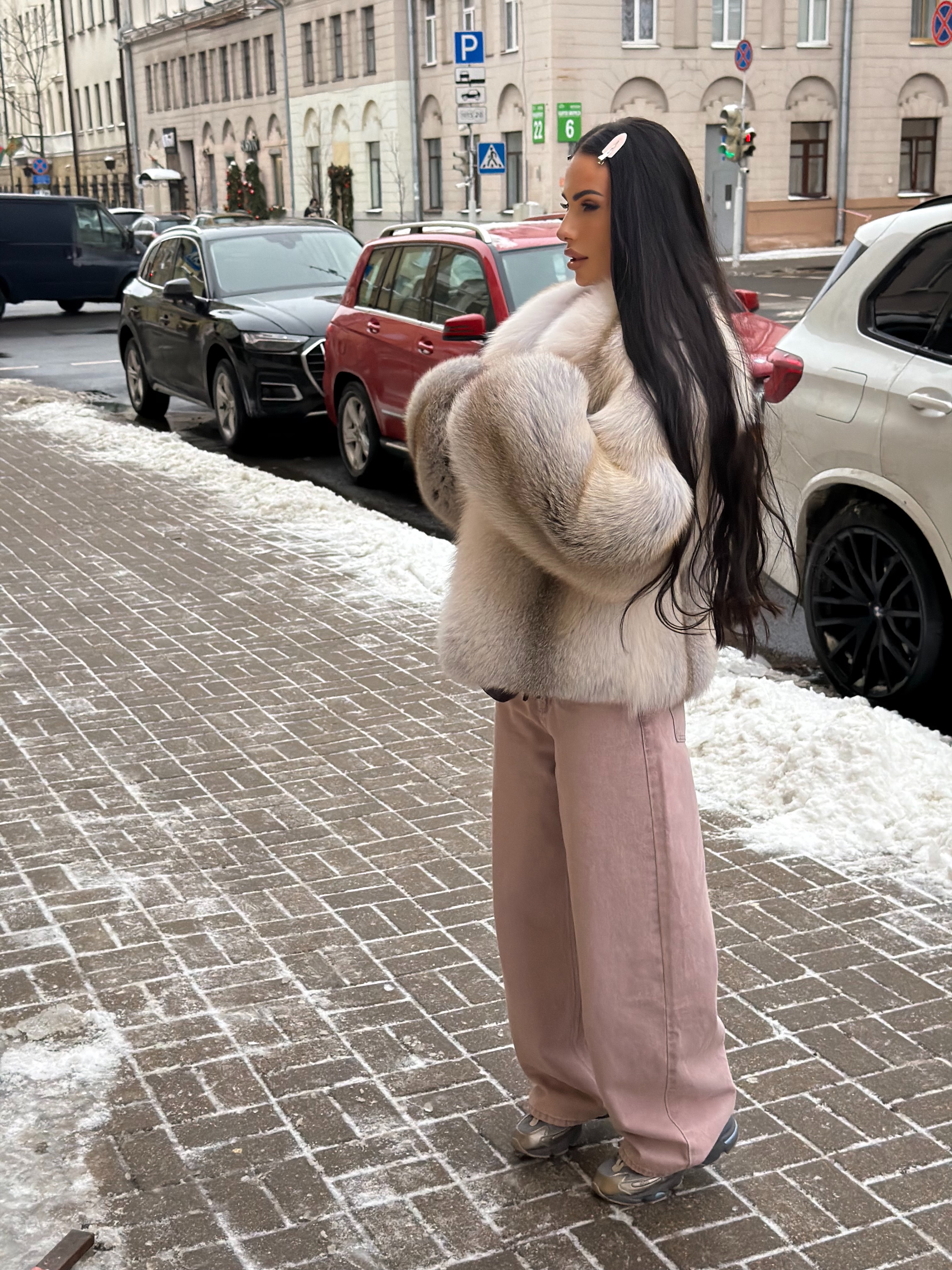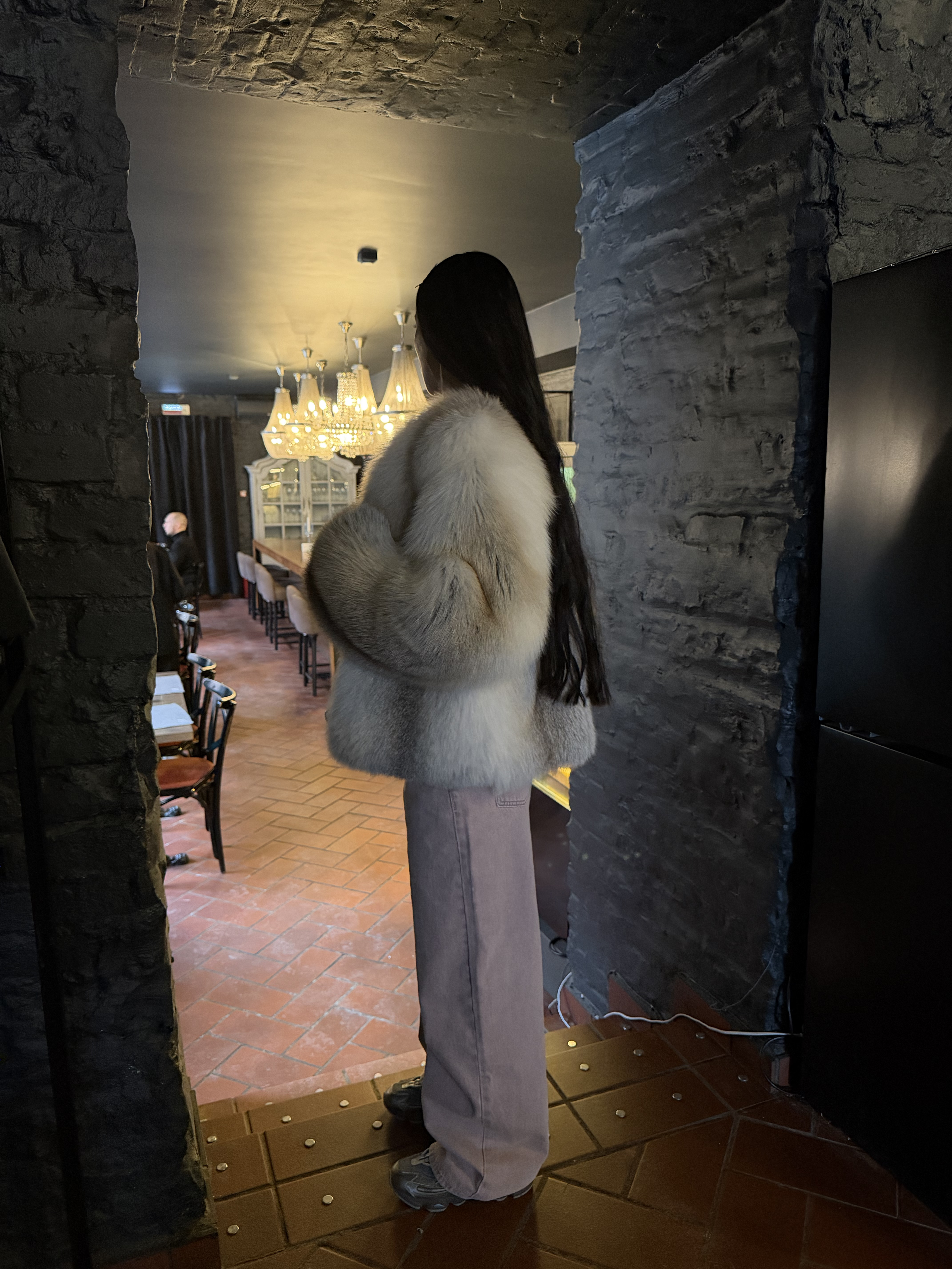The fur coat is very warm and stylish.
