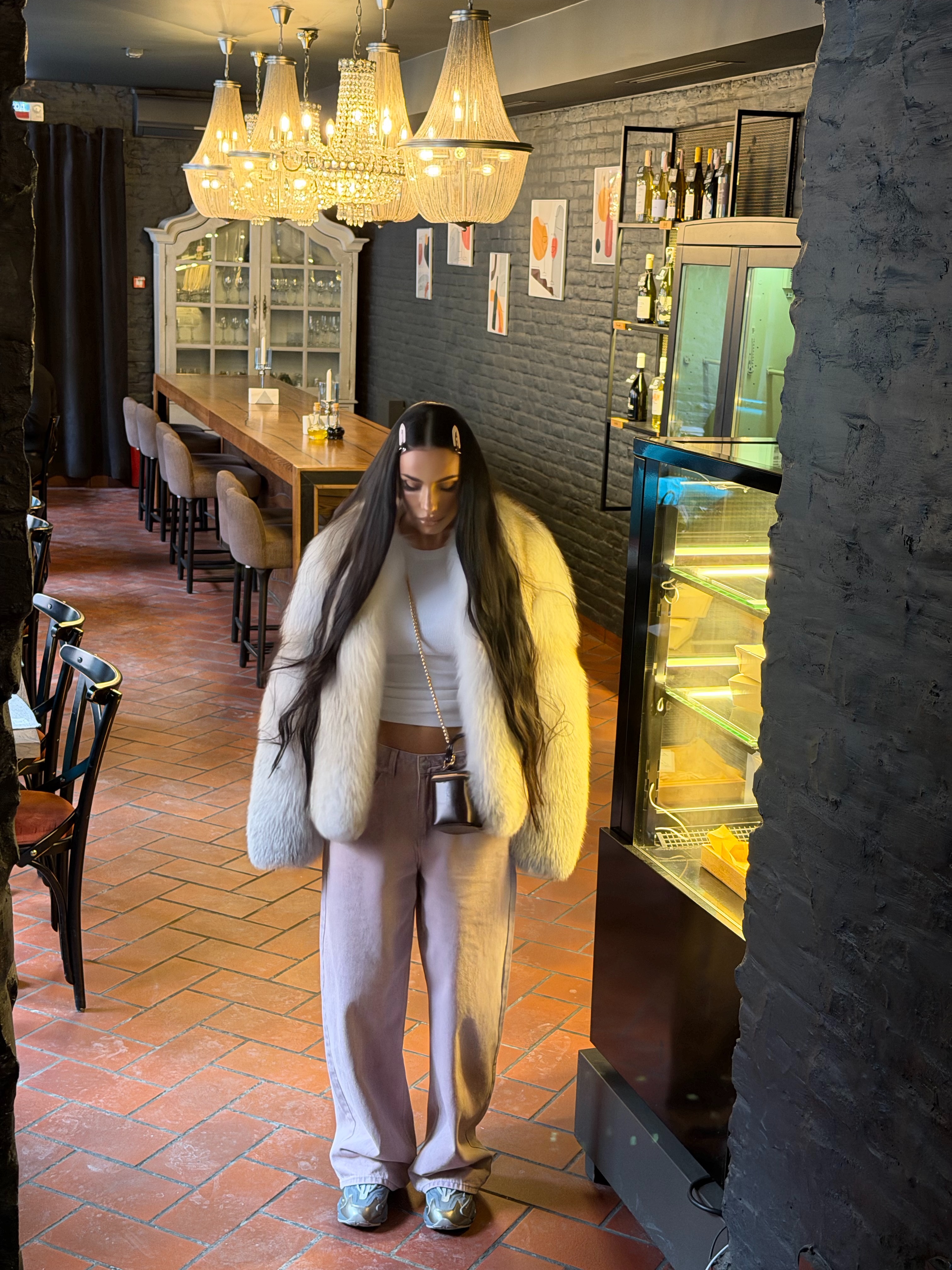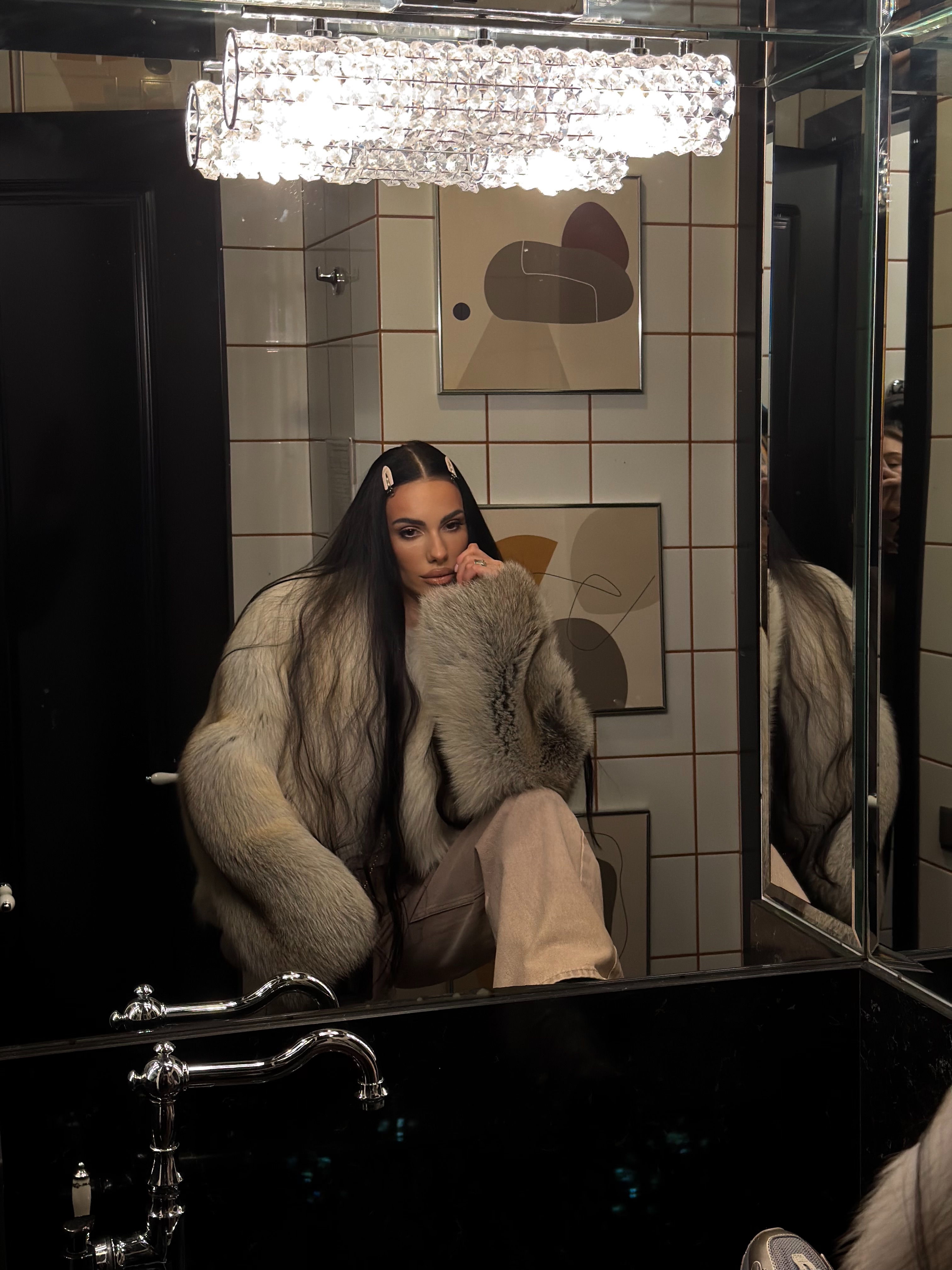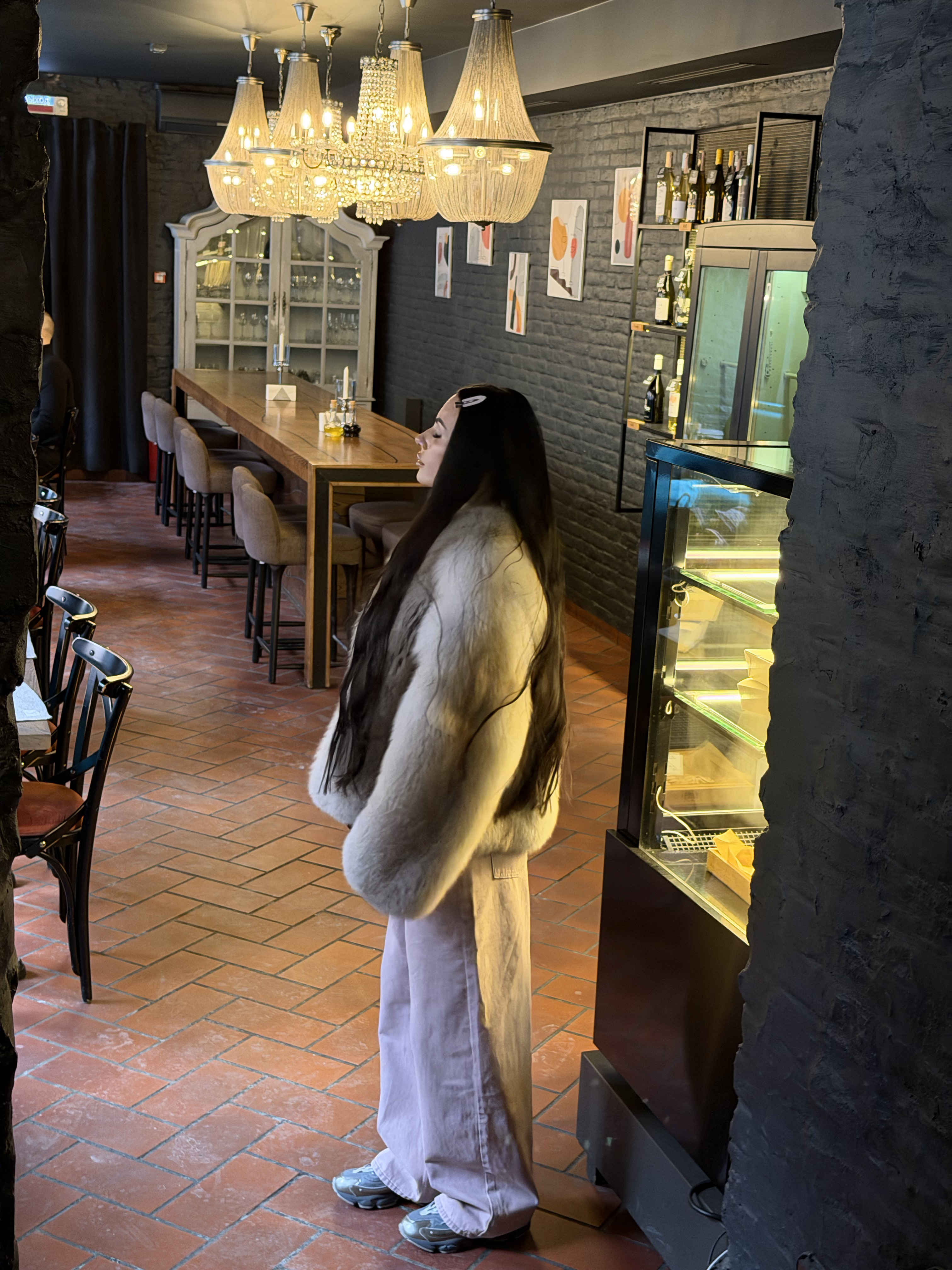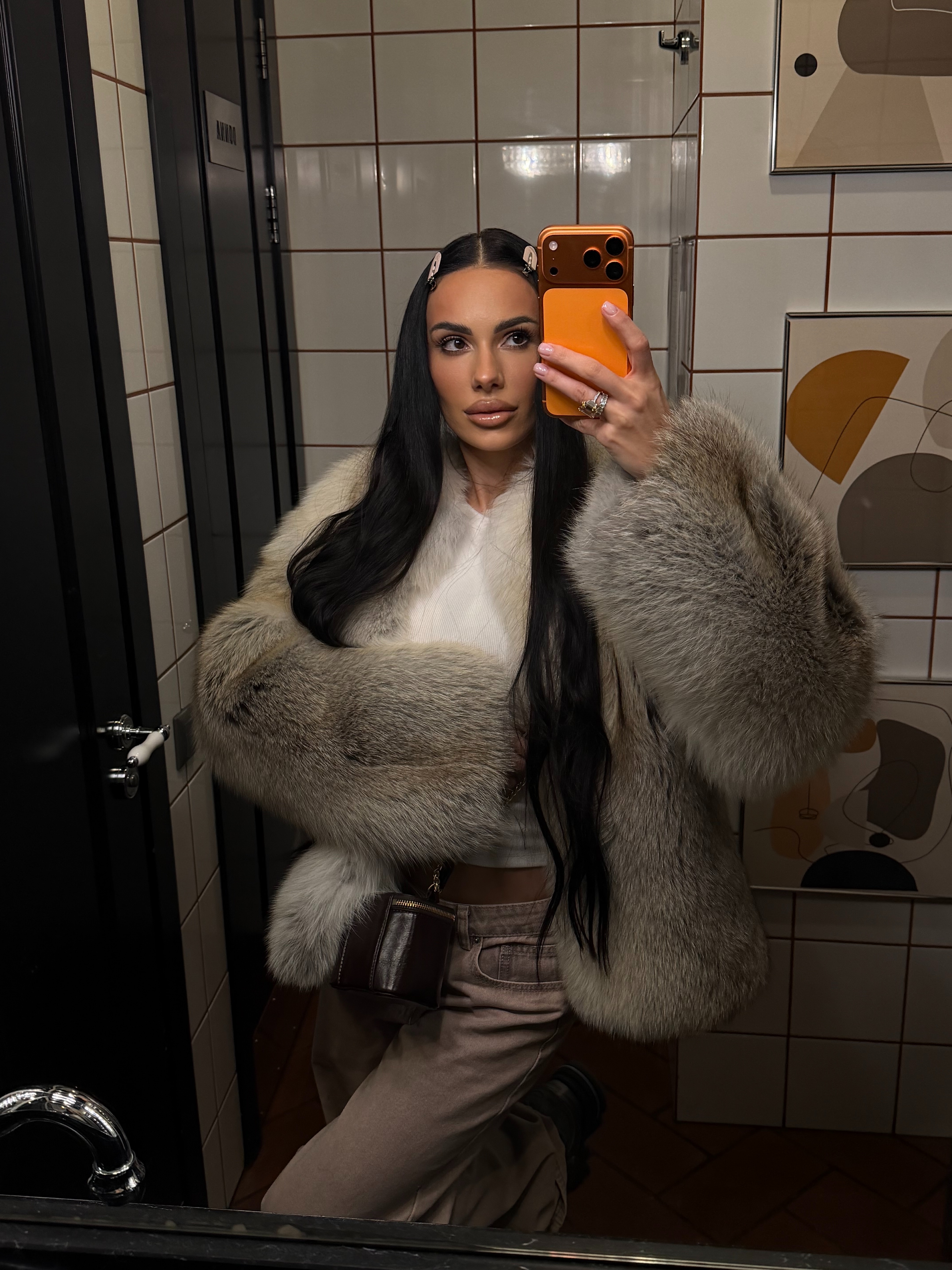 The fur coat is very warm and stylish.