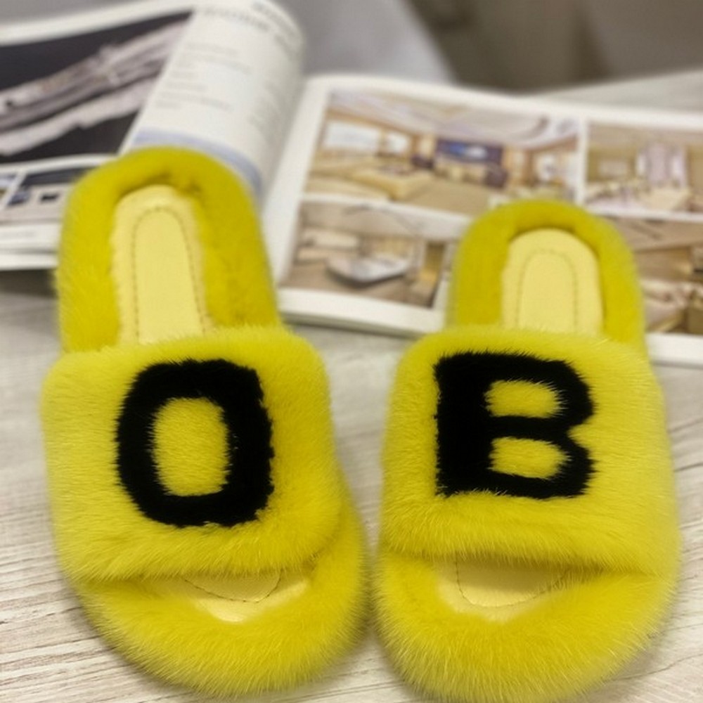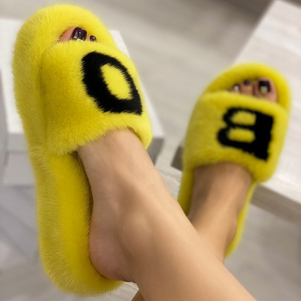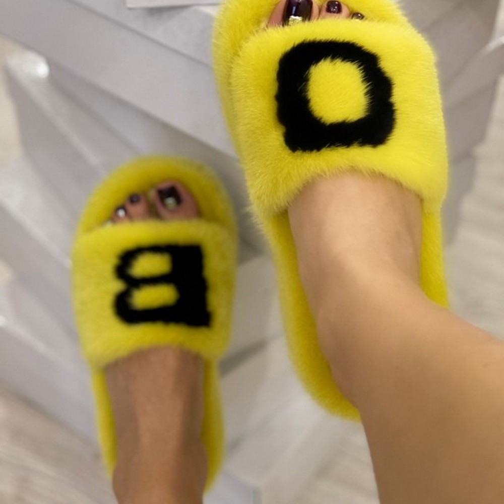 Yellow mink slippers with initials