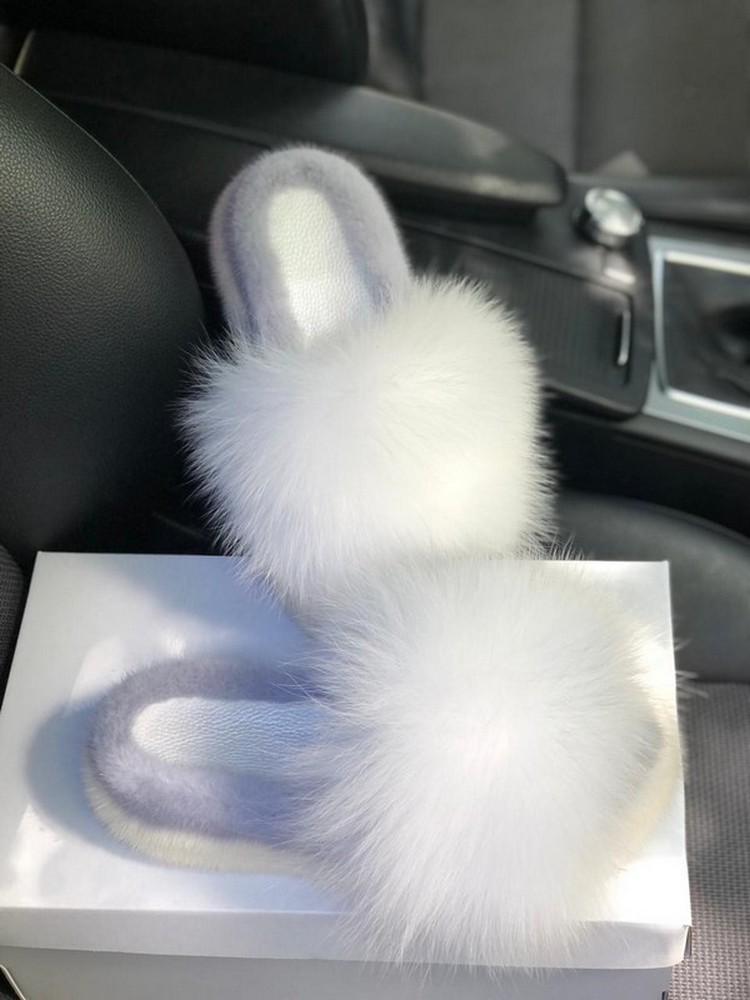 Mink slippers with arctic fox fur CLOUD
