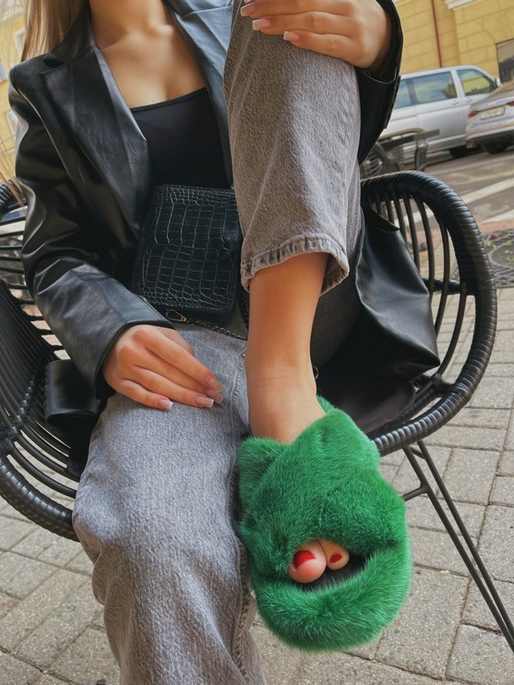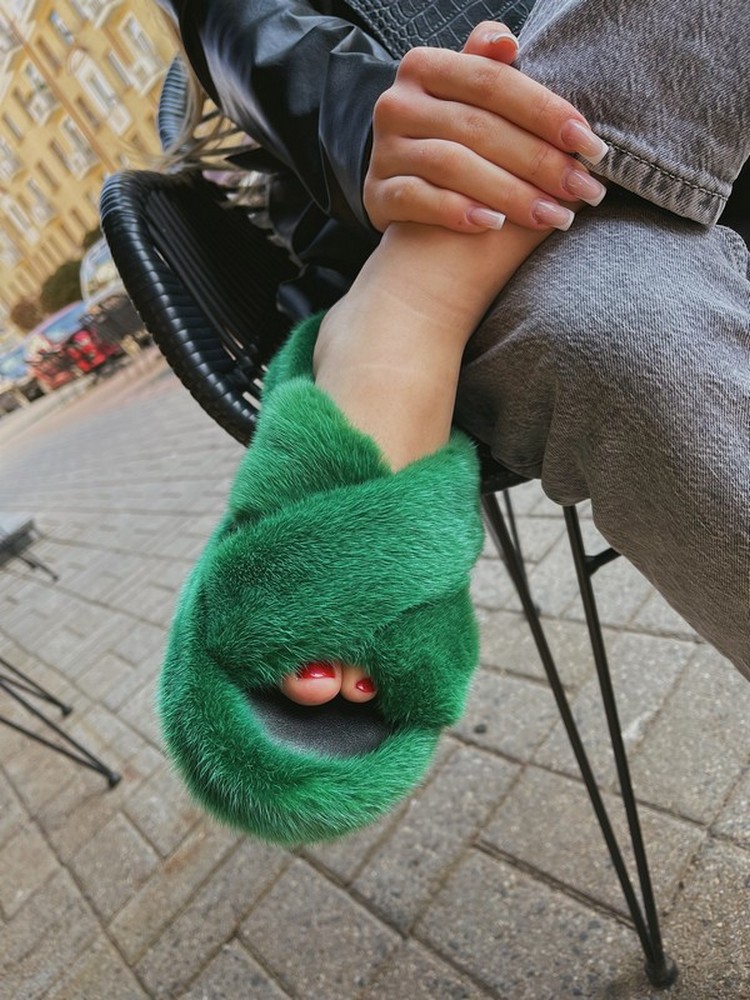 Mink fur flip flops