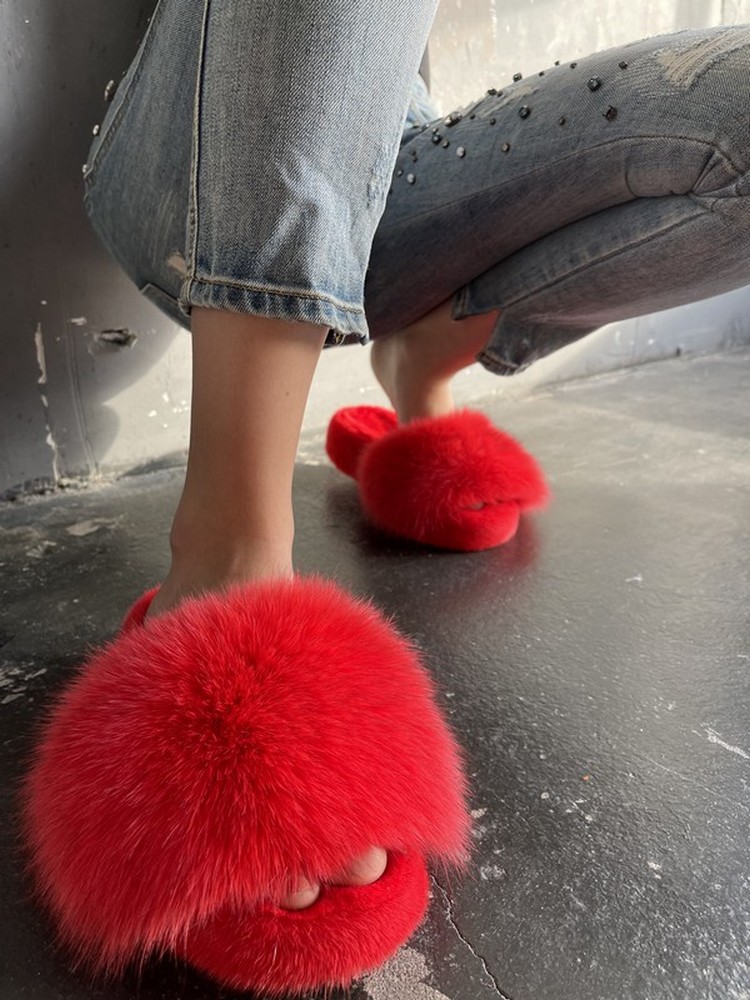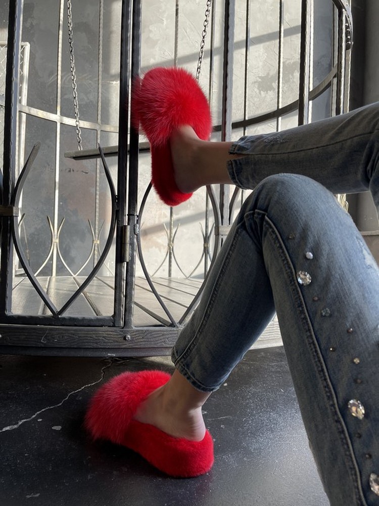 Mink slippers with arctic fox fur RUBBY