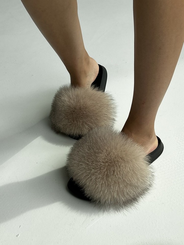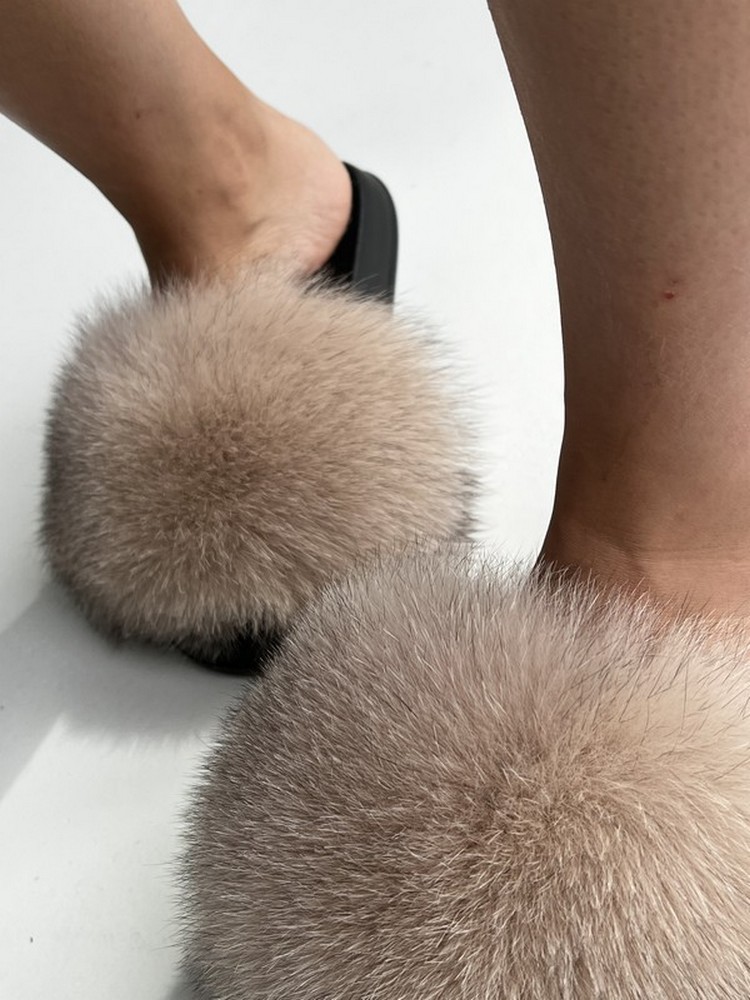 Flip flops with arctic fox fur
