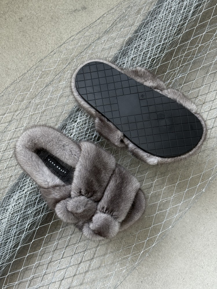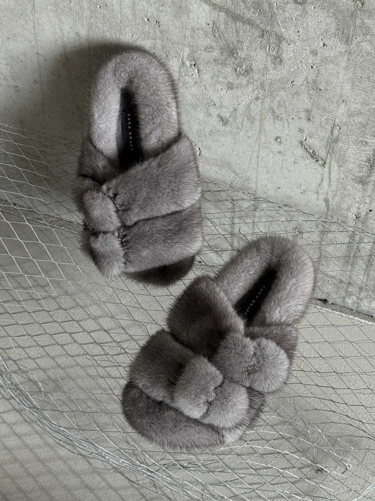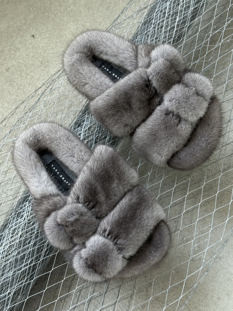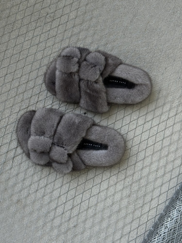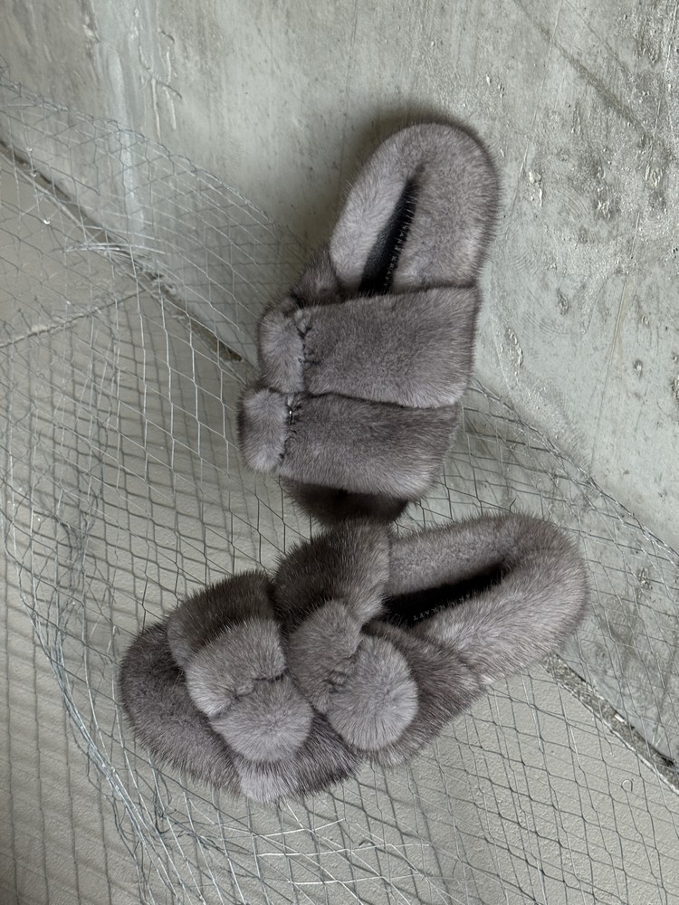 Mink fur slippers