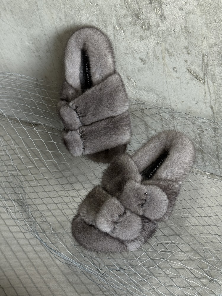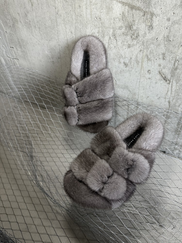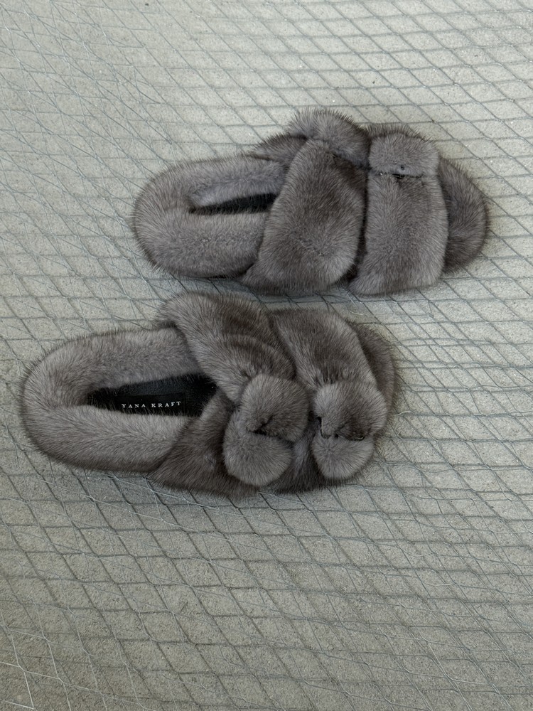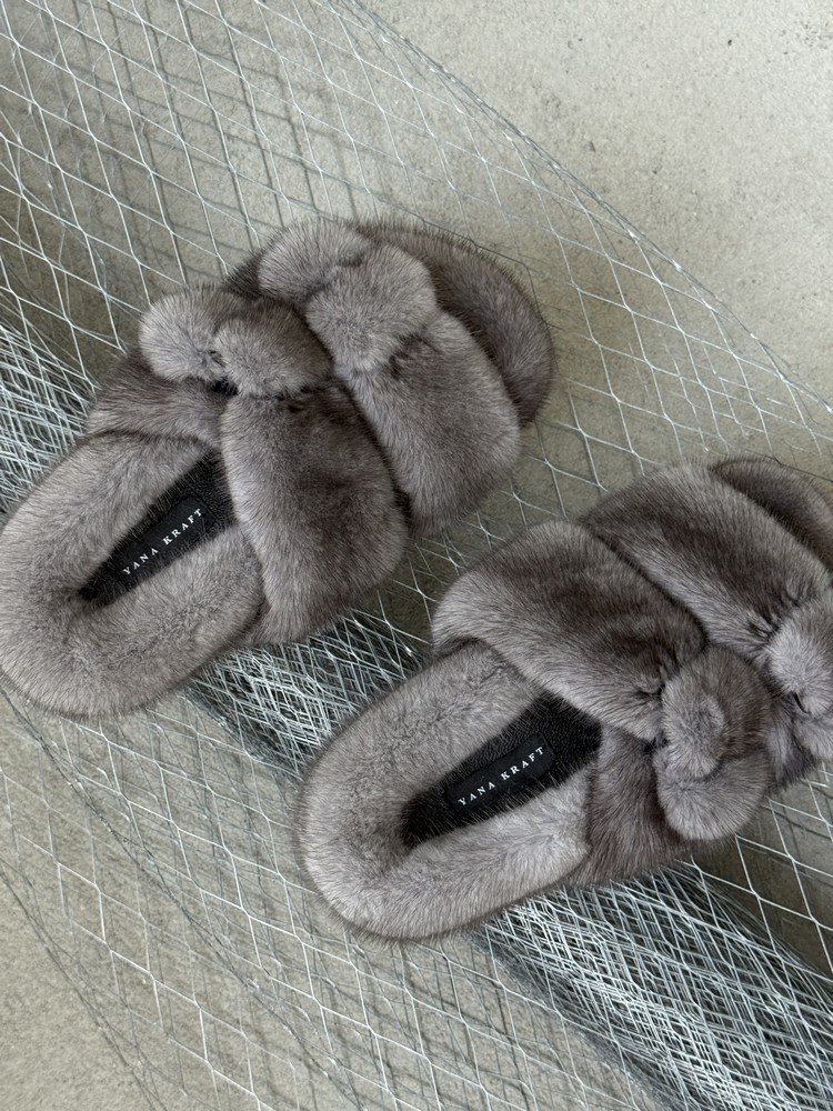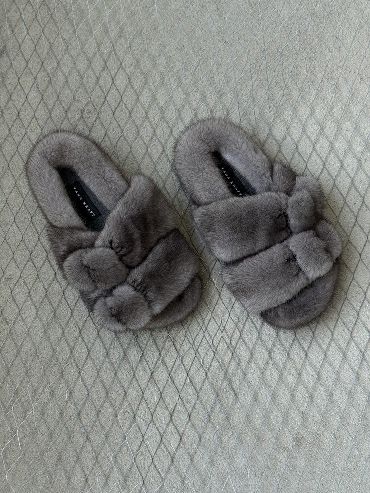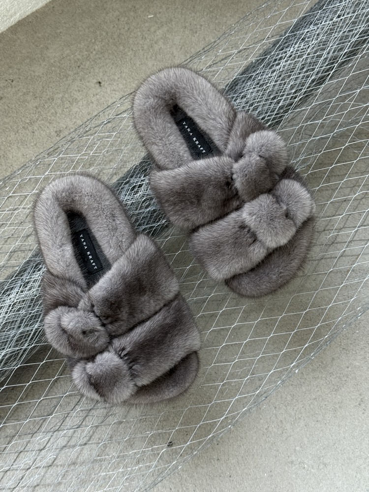 Mink fur slippers