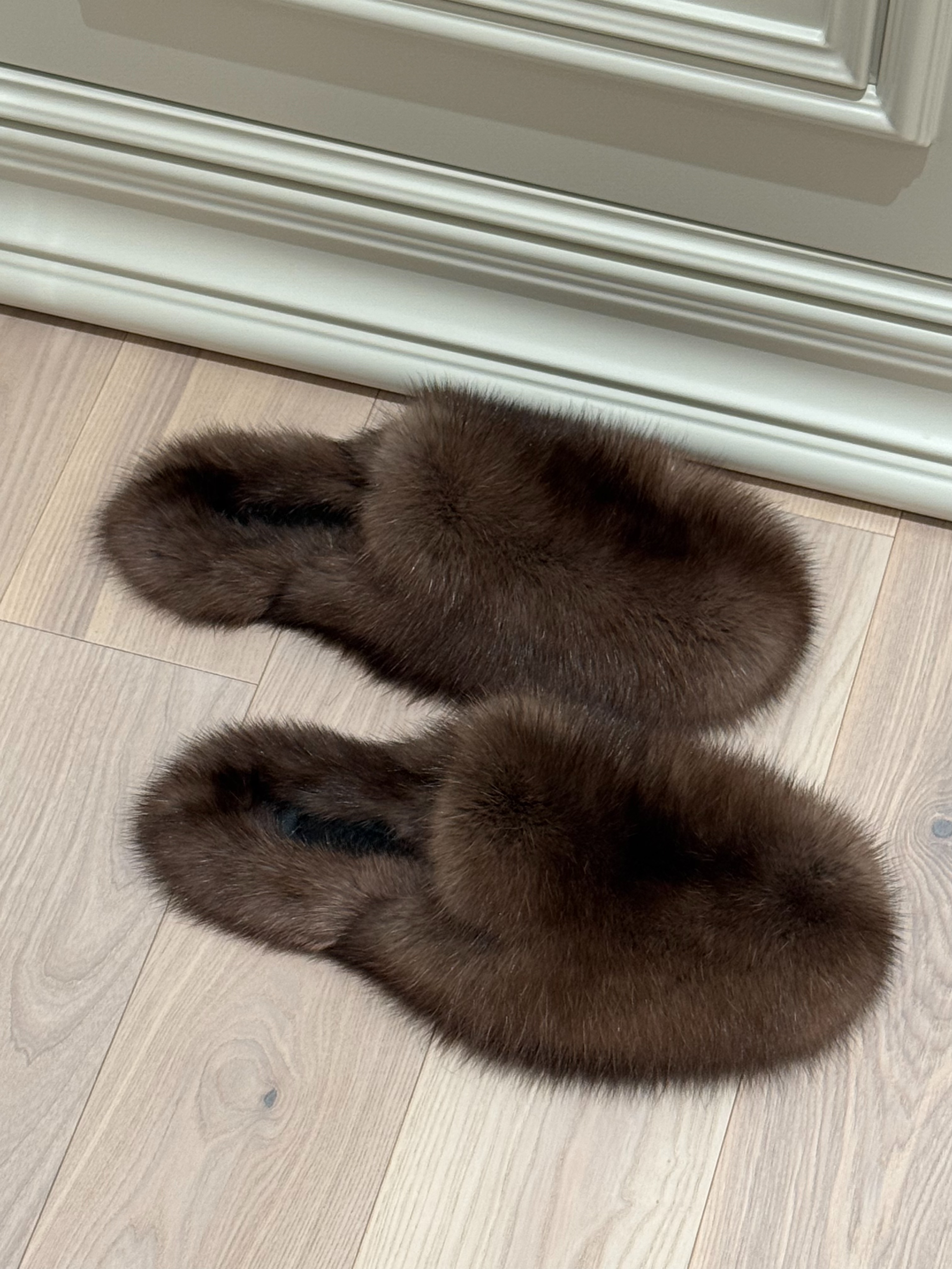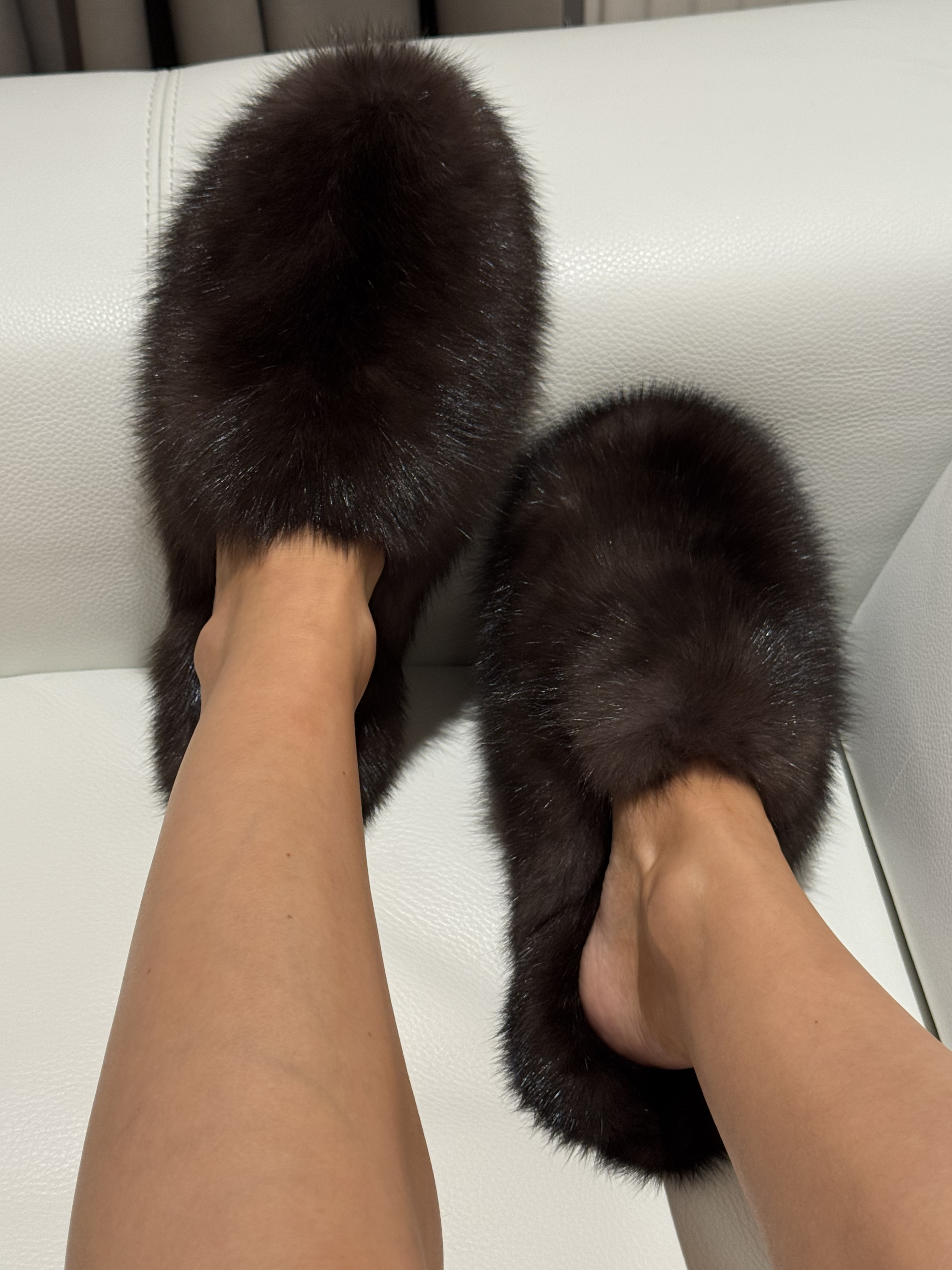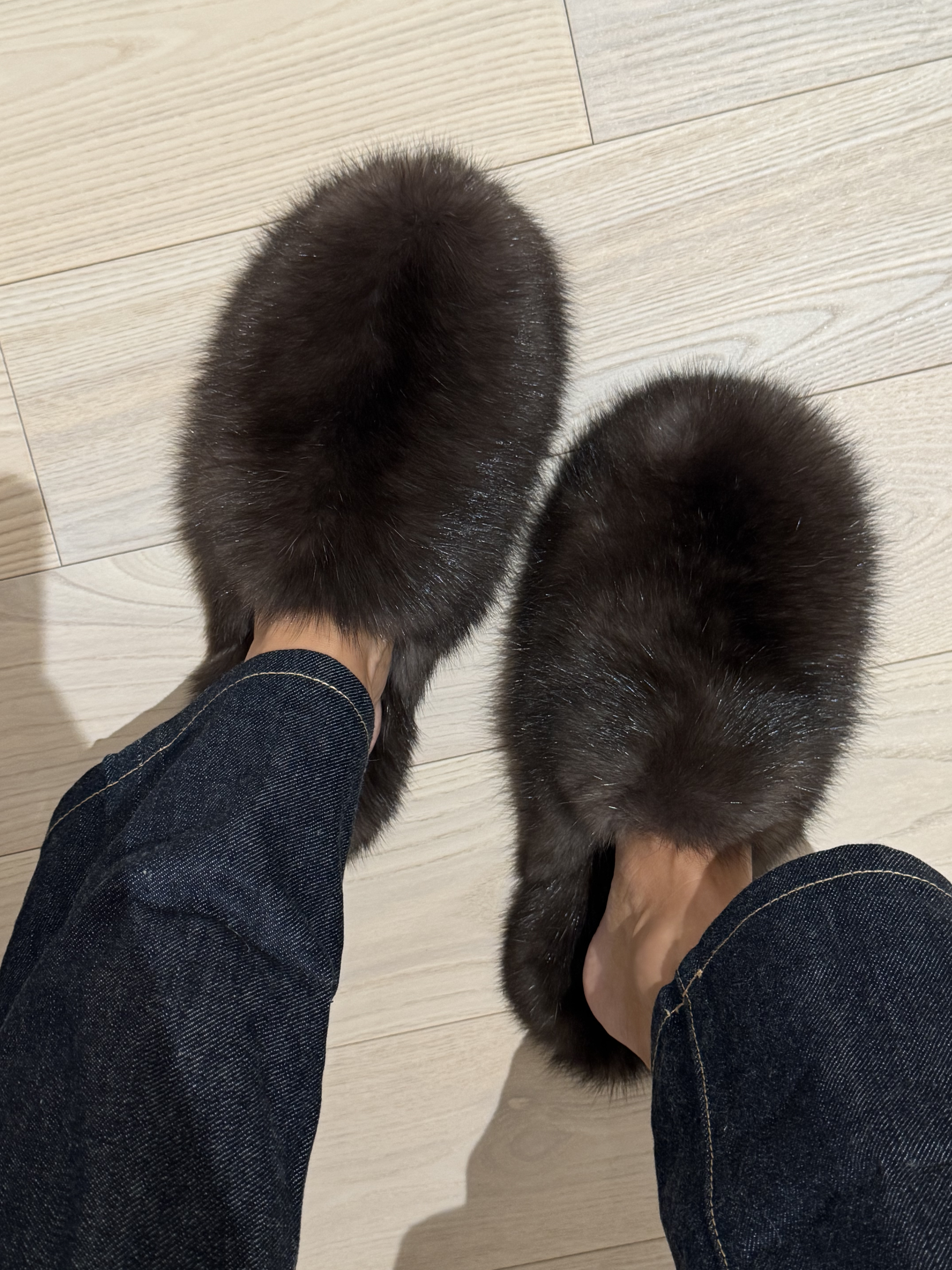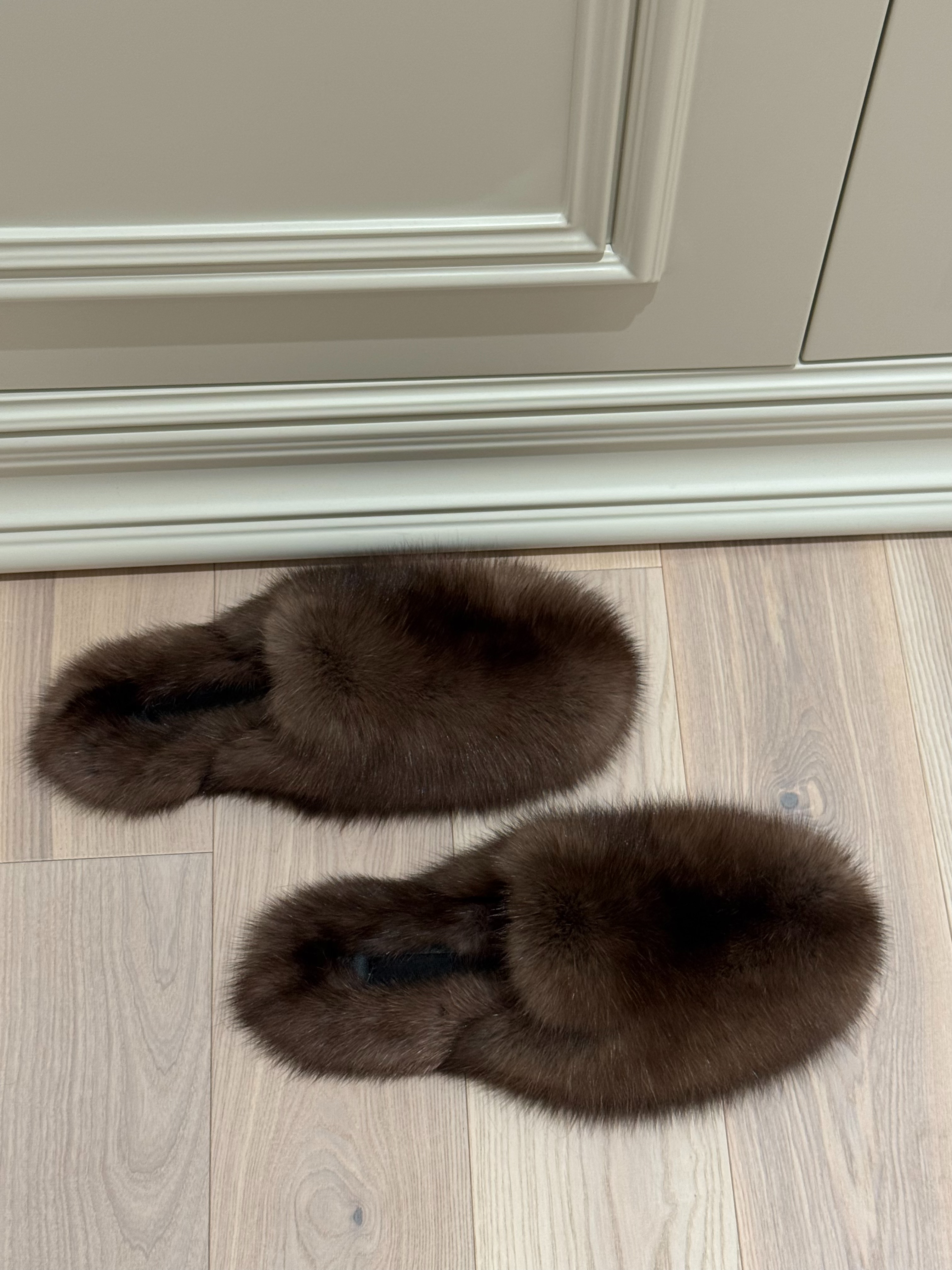 Dark sable fur mules