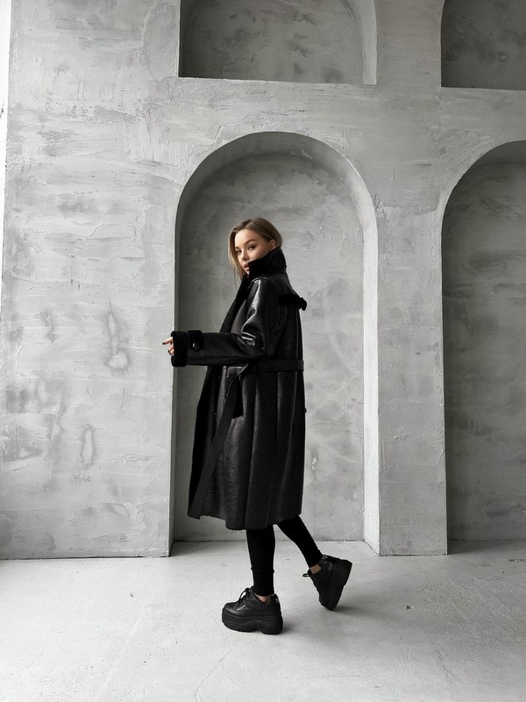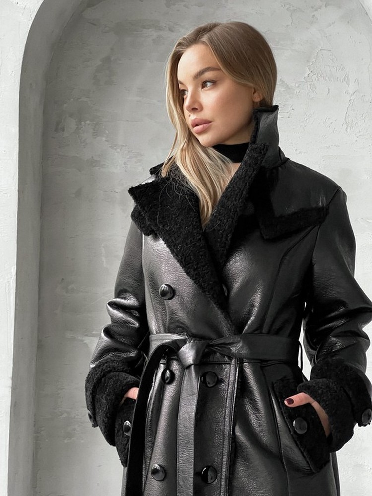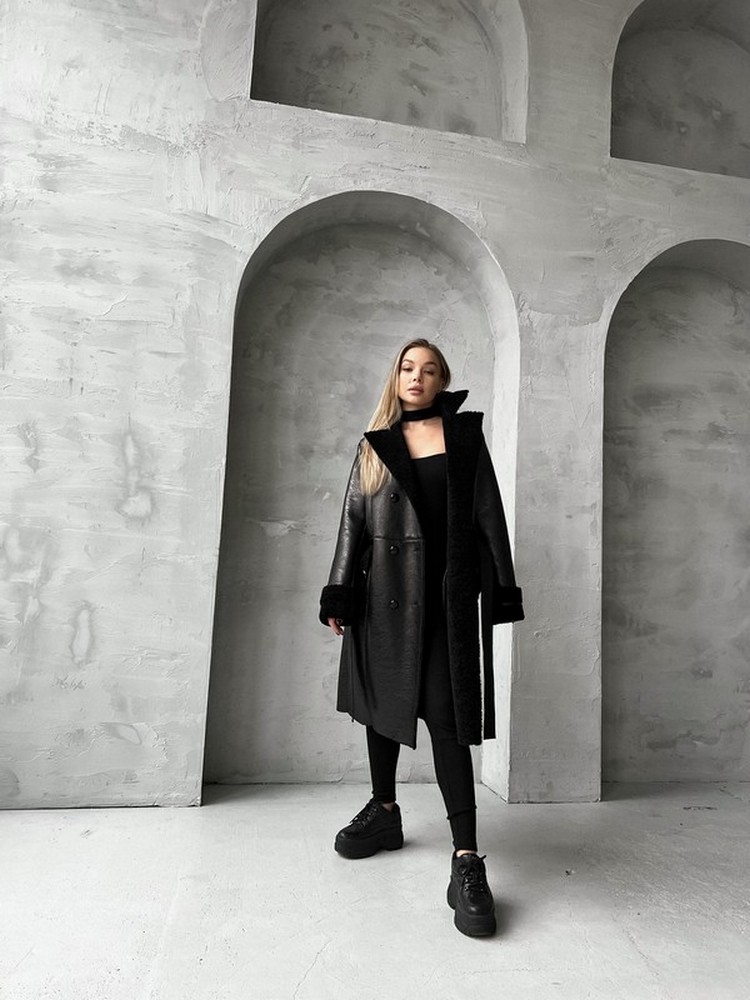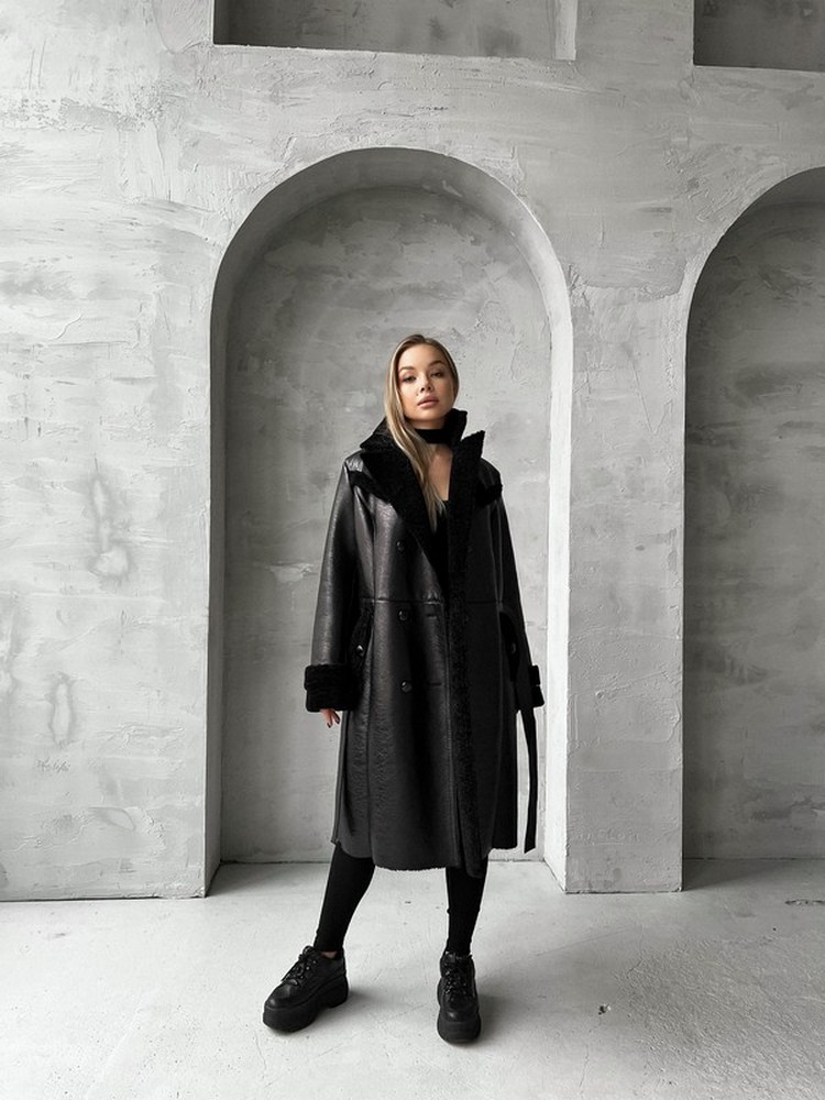 Eco sheepskin coat with natural sheep wool