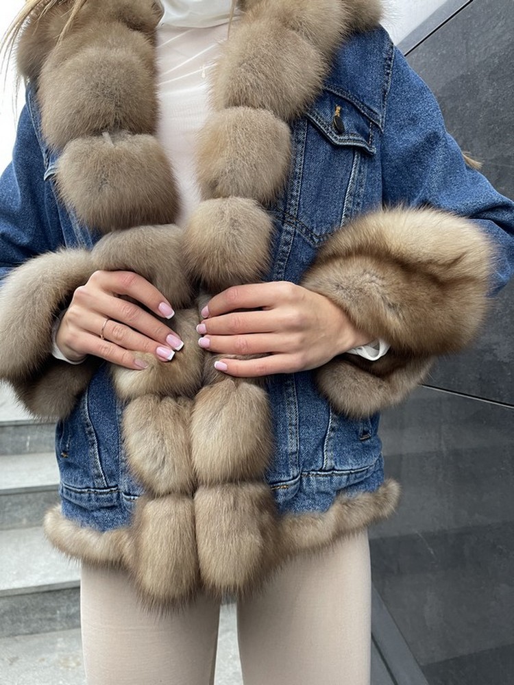 Denim with marten fur trim is perfect for lovers of convenience, practicality and beauty at the same time.