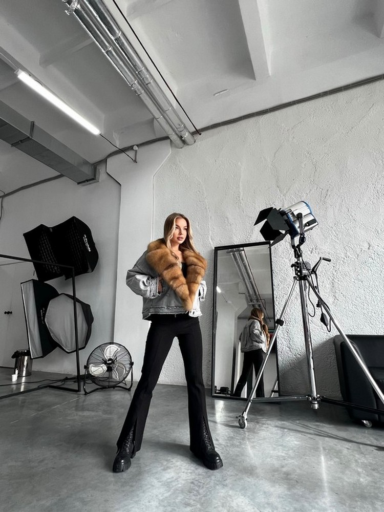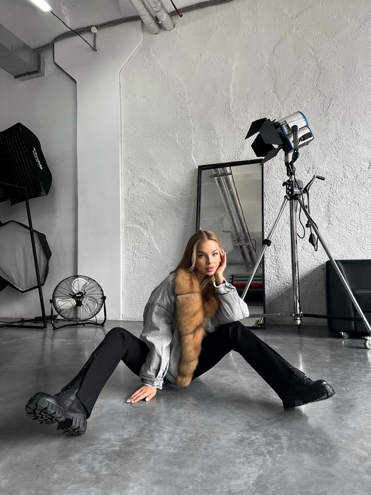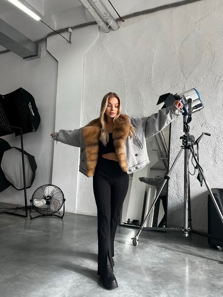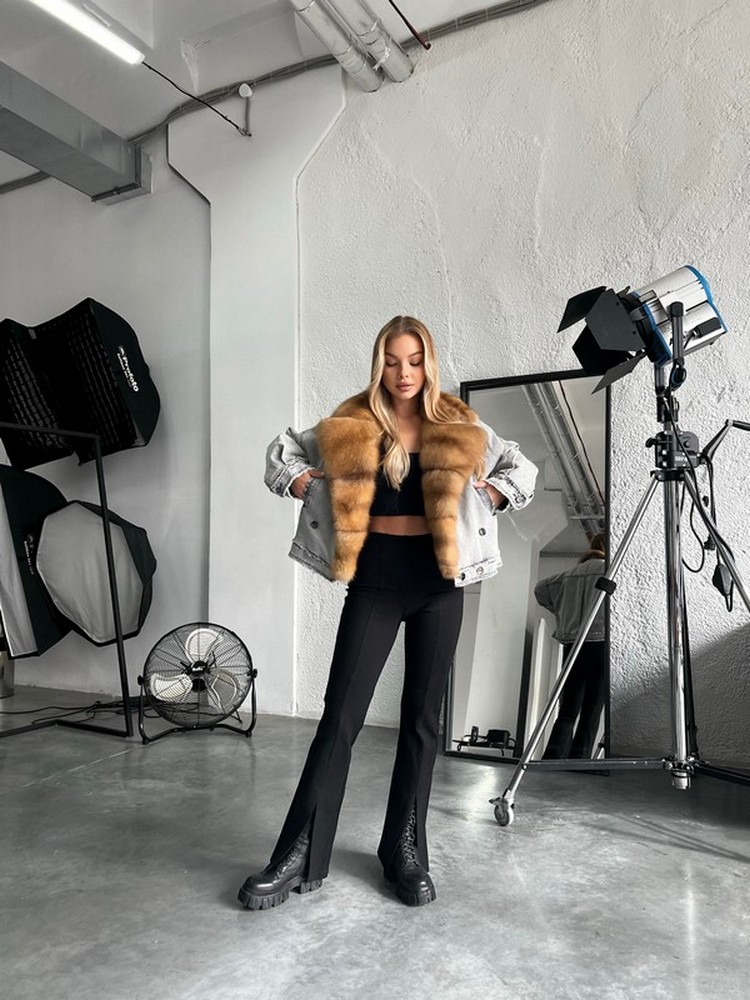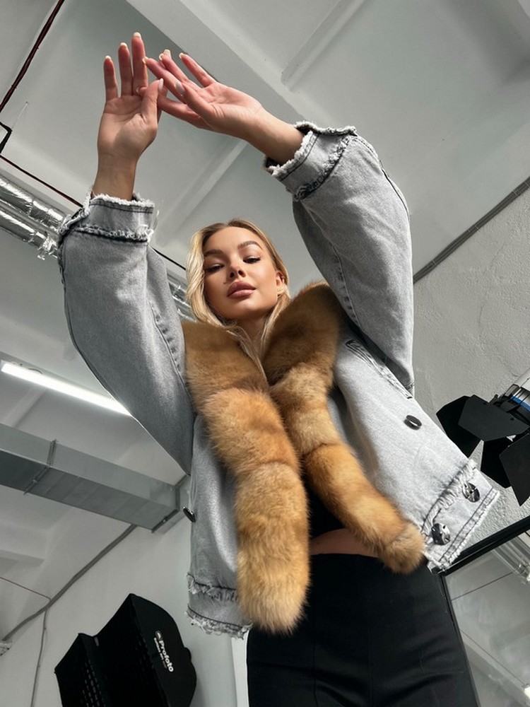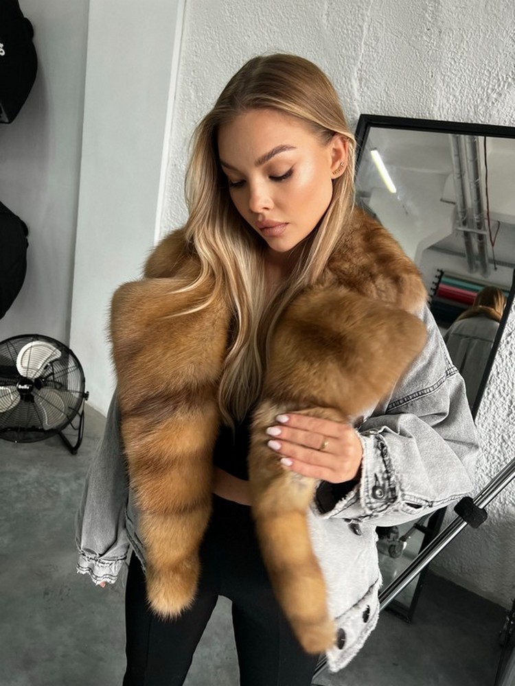 Denim with marten fur trim is perfect for lovers of convenience, practicality and beauty at the same time.