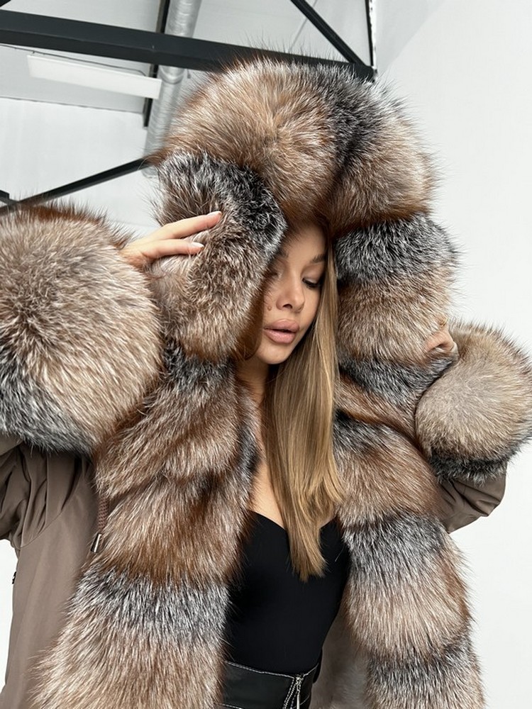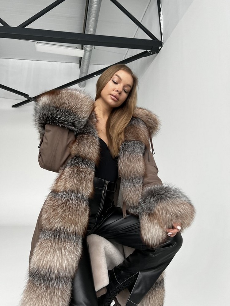 Inside there are hidden fasteners (ribbon with buttons) so that the parka can be worn with the fur facing out