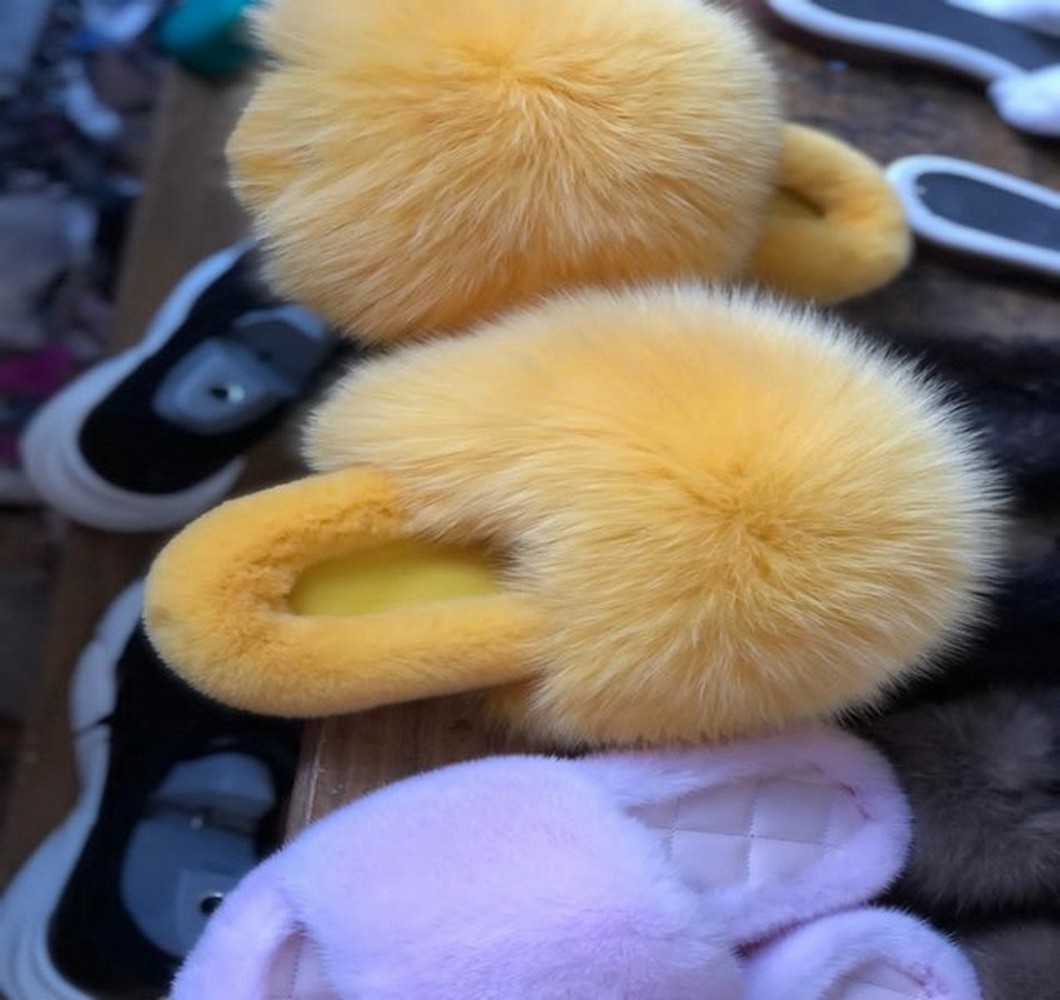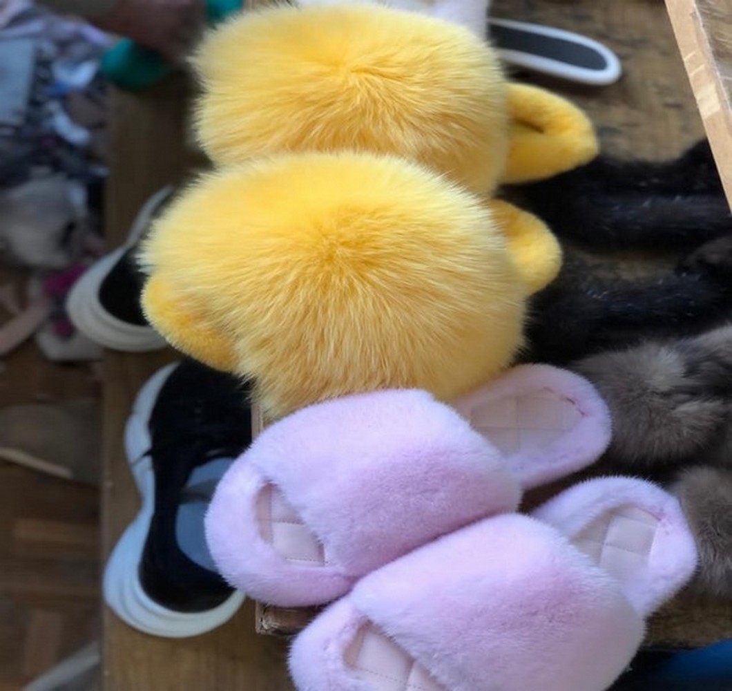 Mink slippers with arctic fox fur OHRA