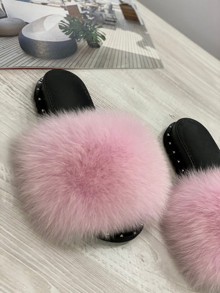 Slippers with arctic fox fur ROSY