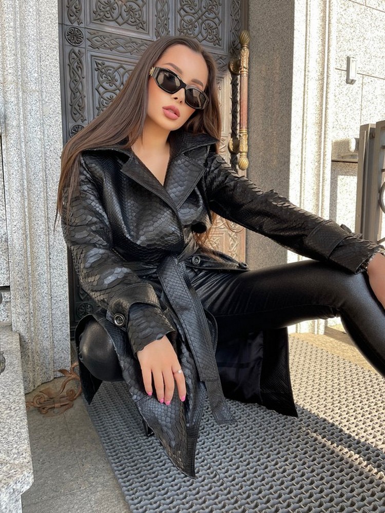 Python leather trench coat