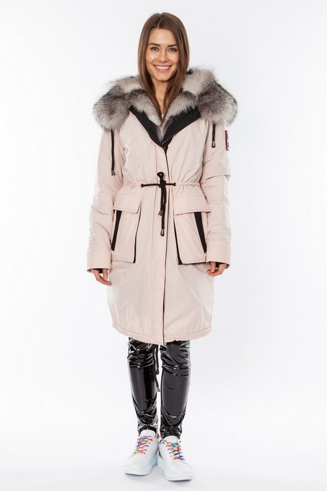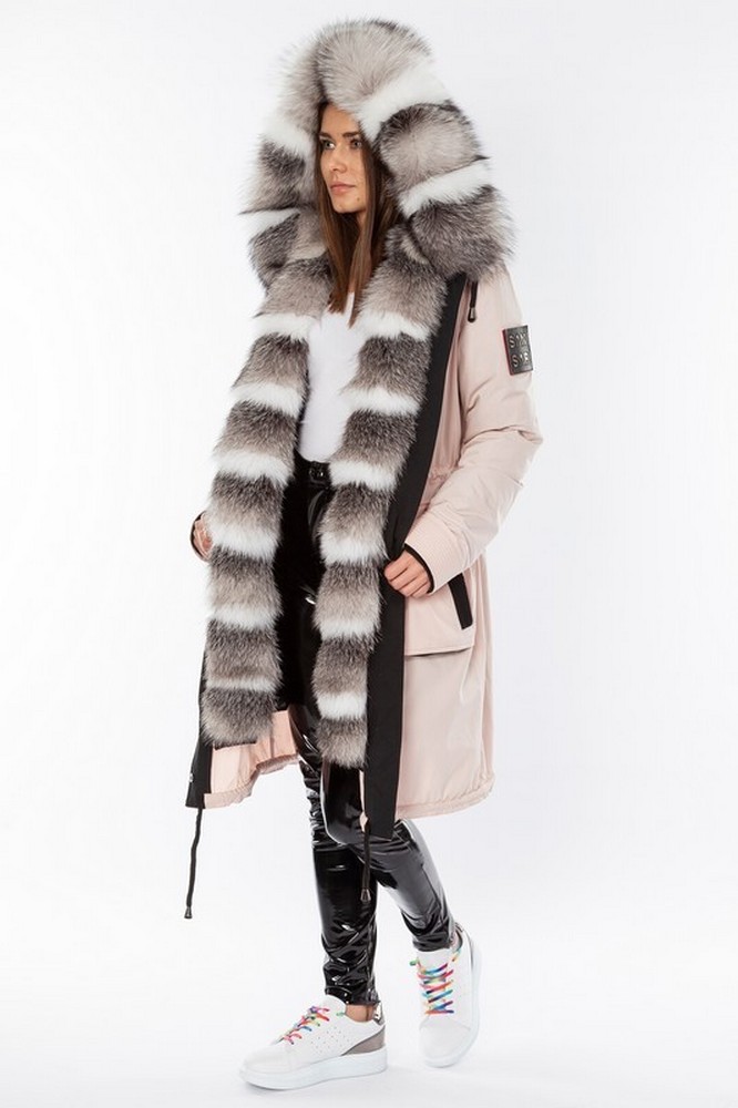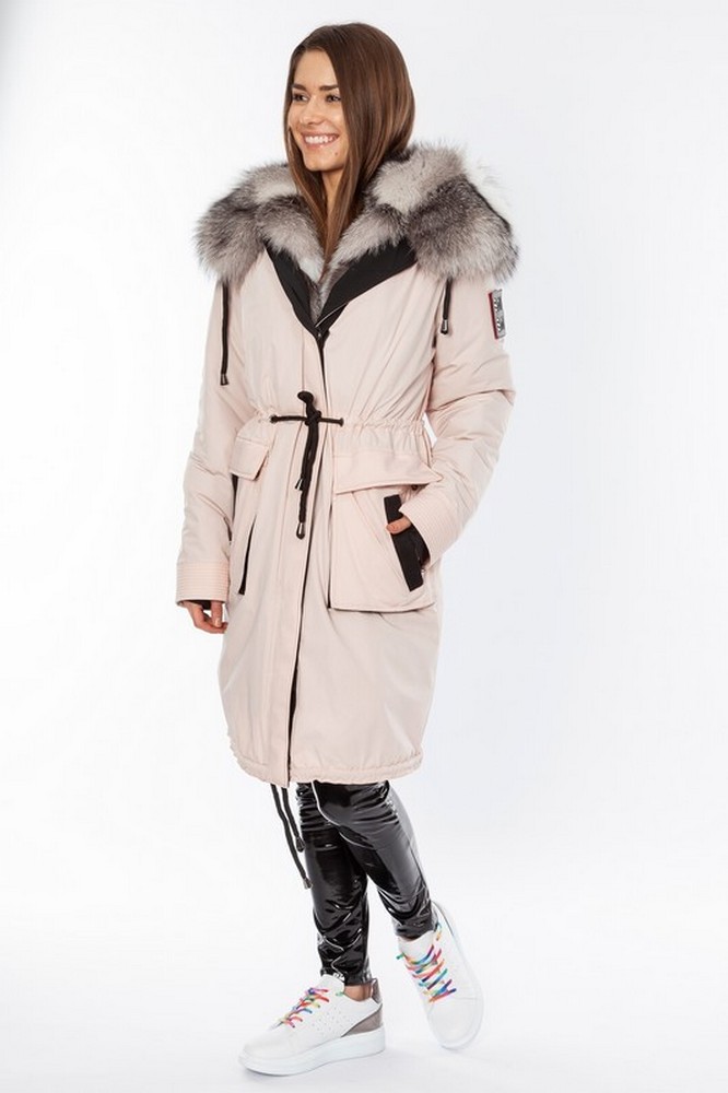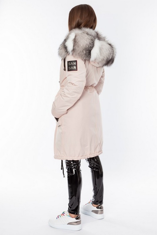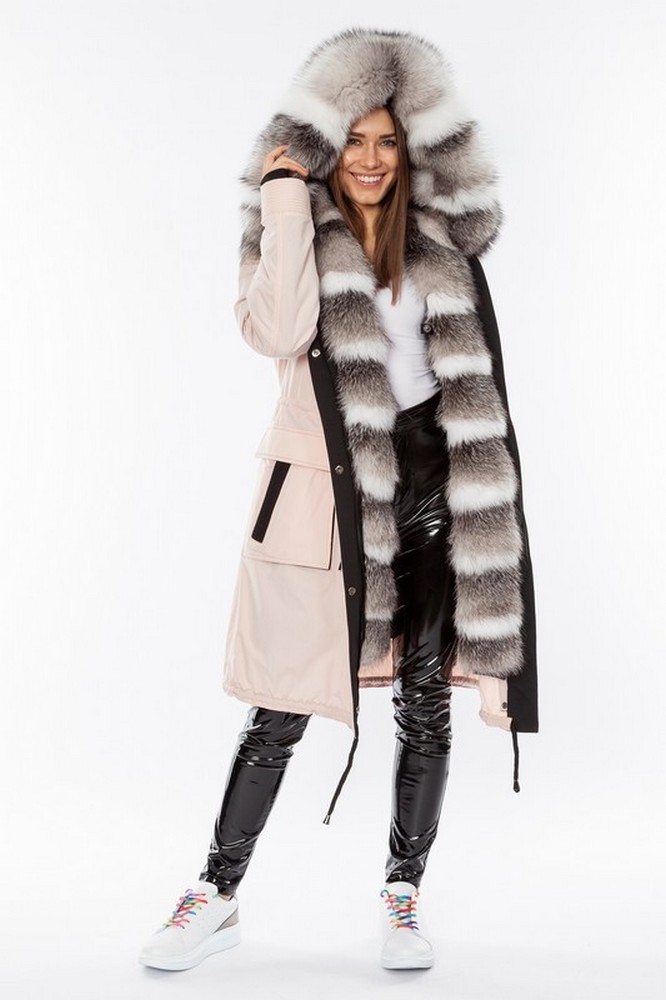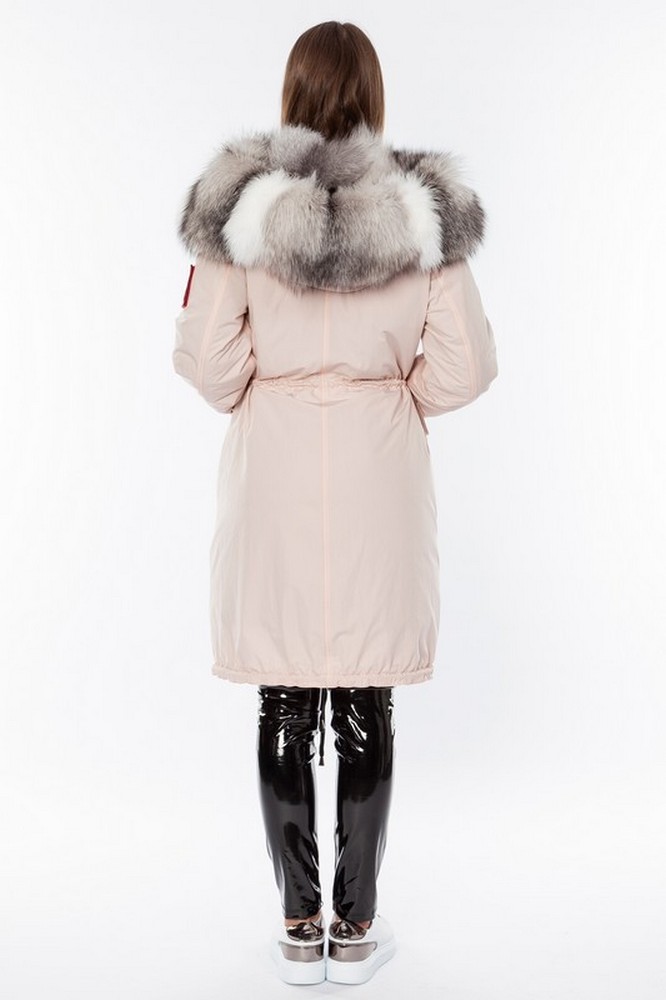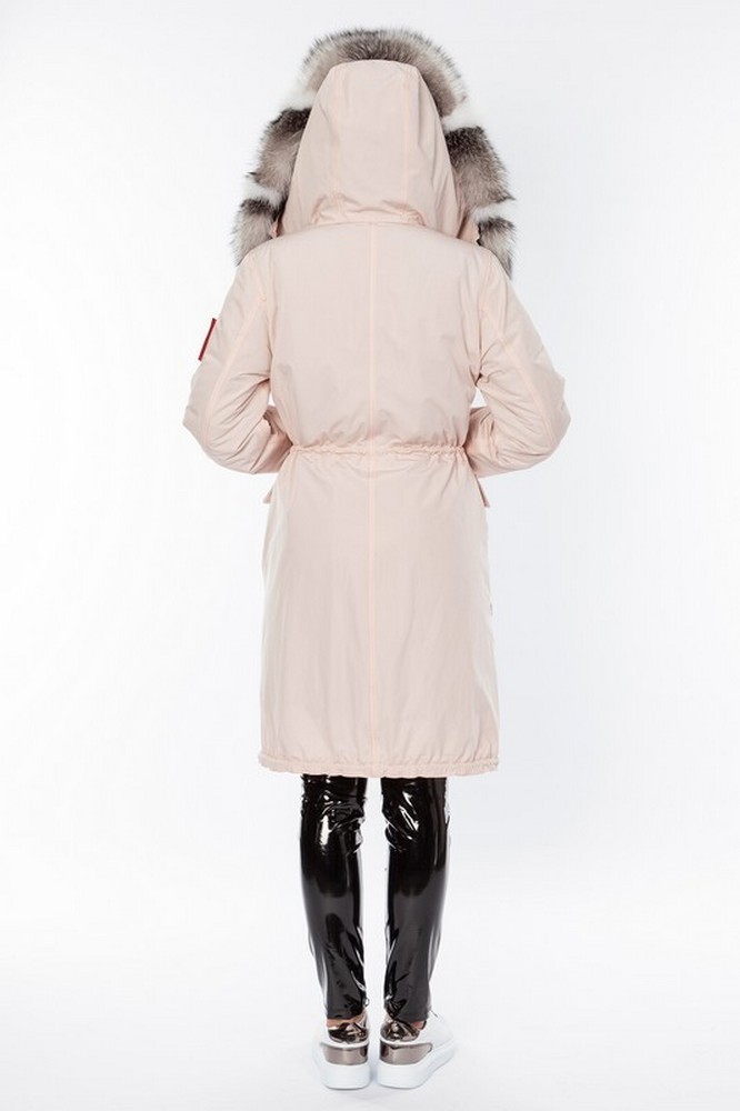 The fur hood and insulation are detachable on a secret lightning.