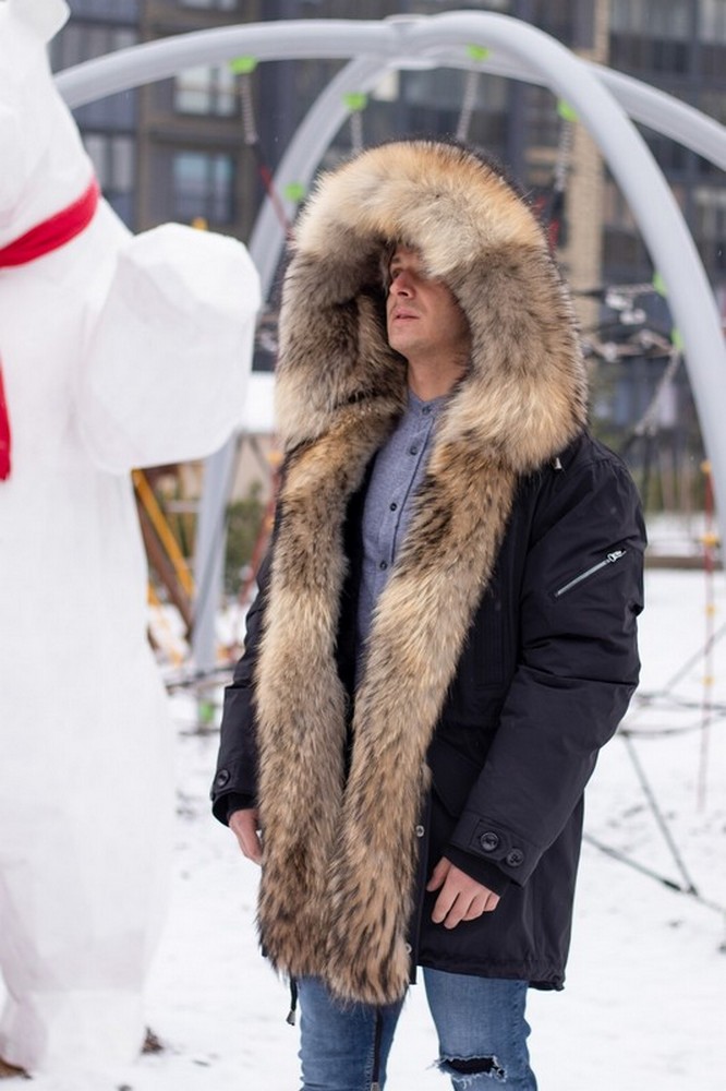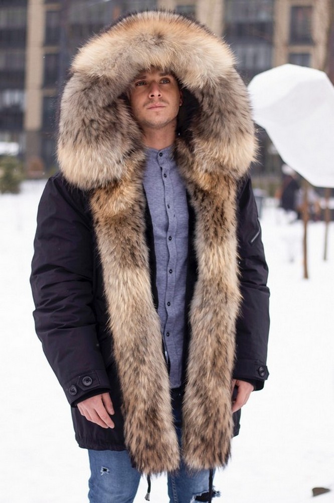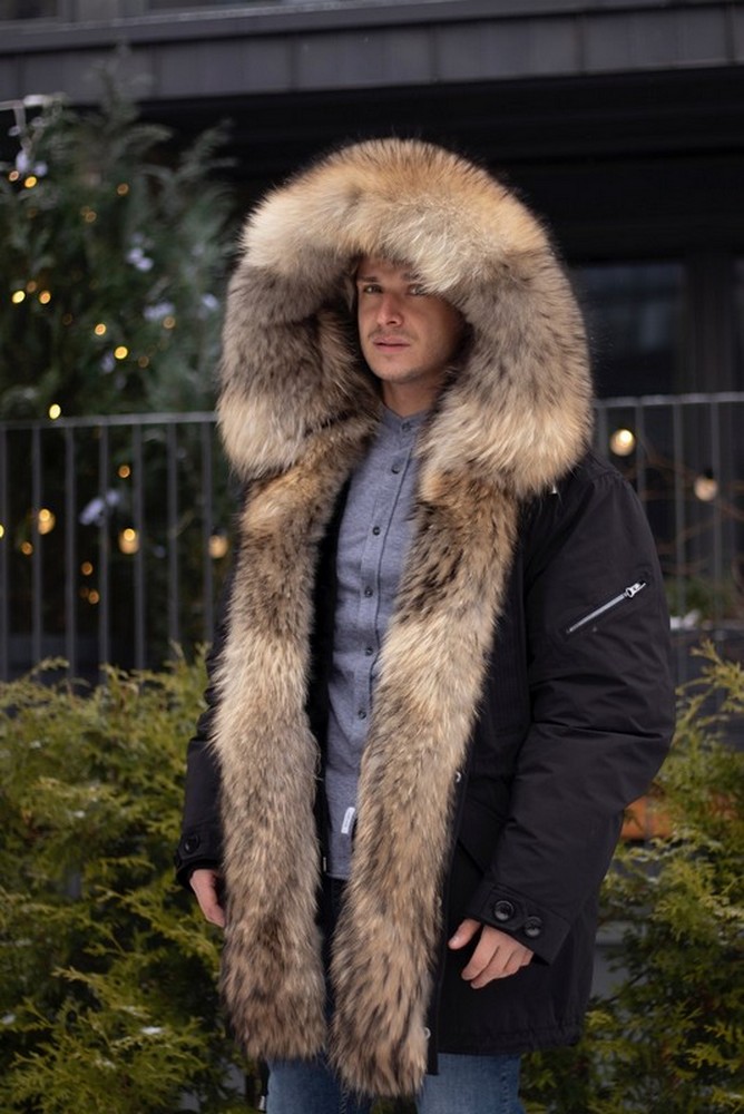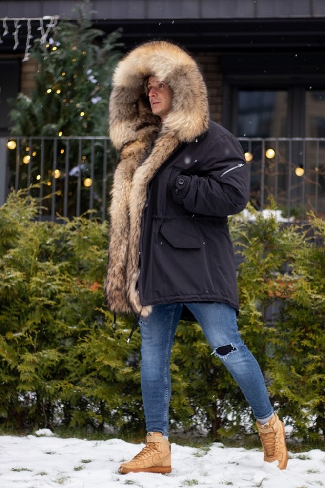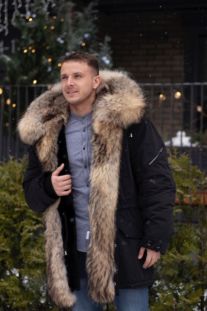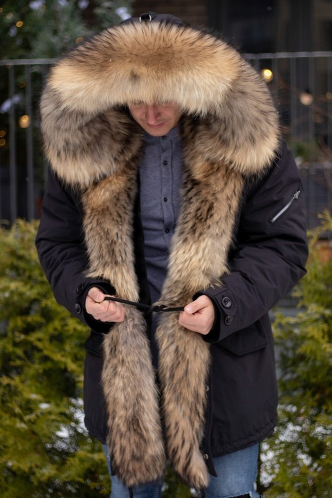 Men's parka with raccoon fur